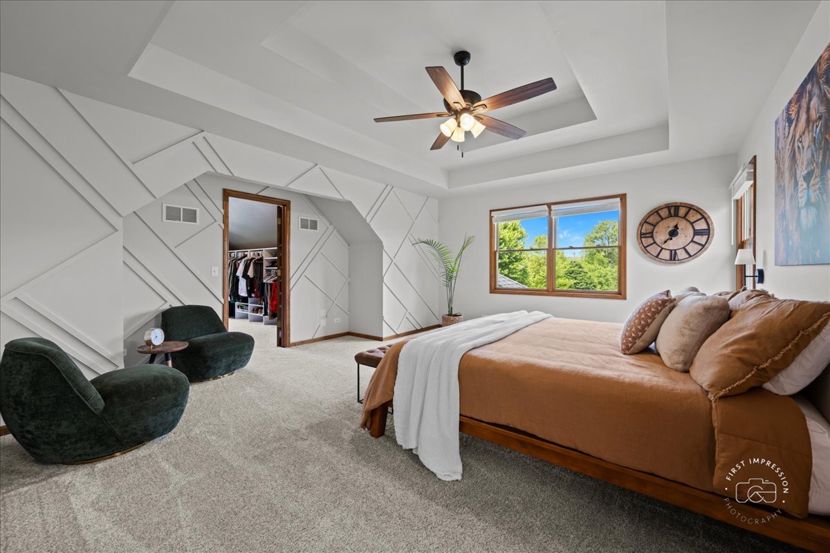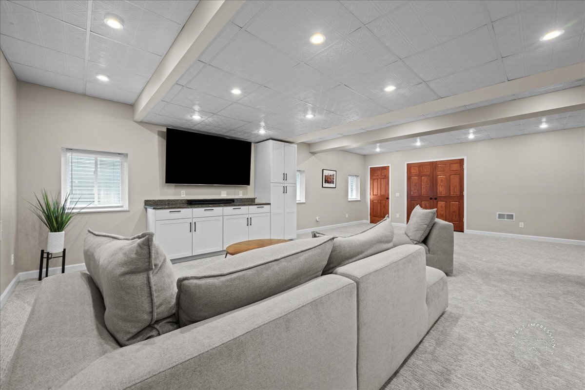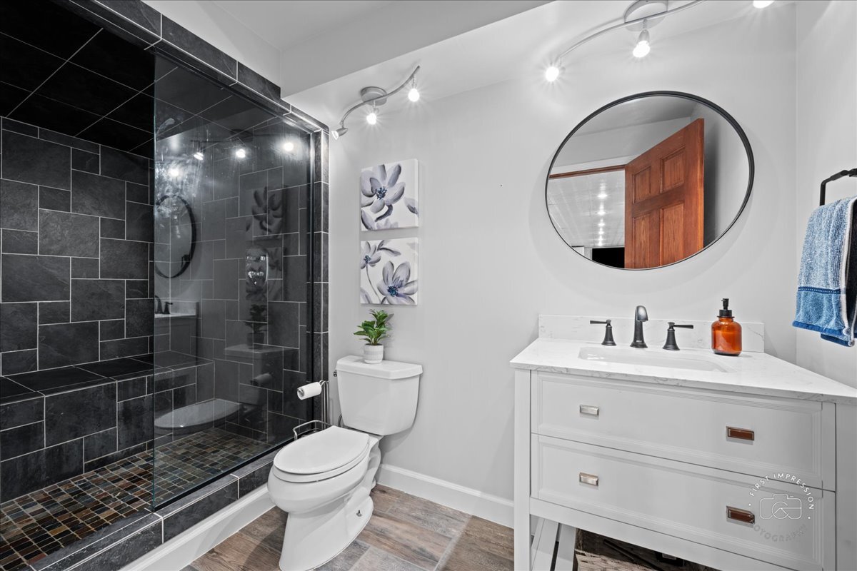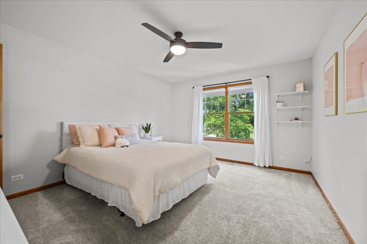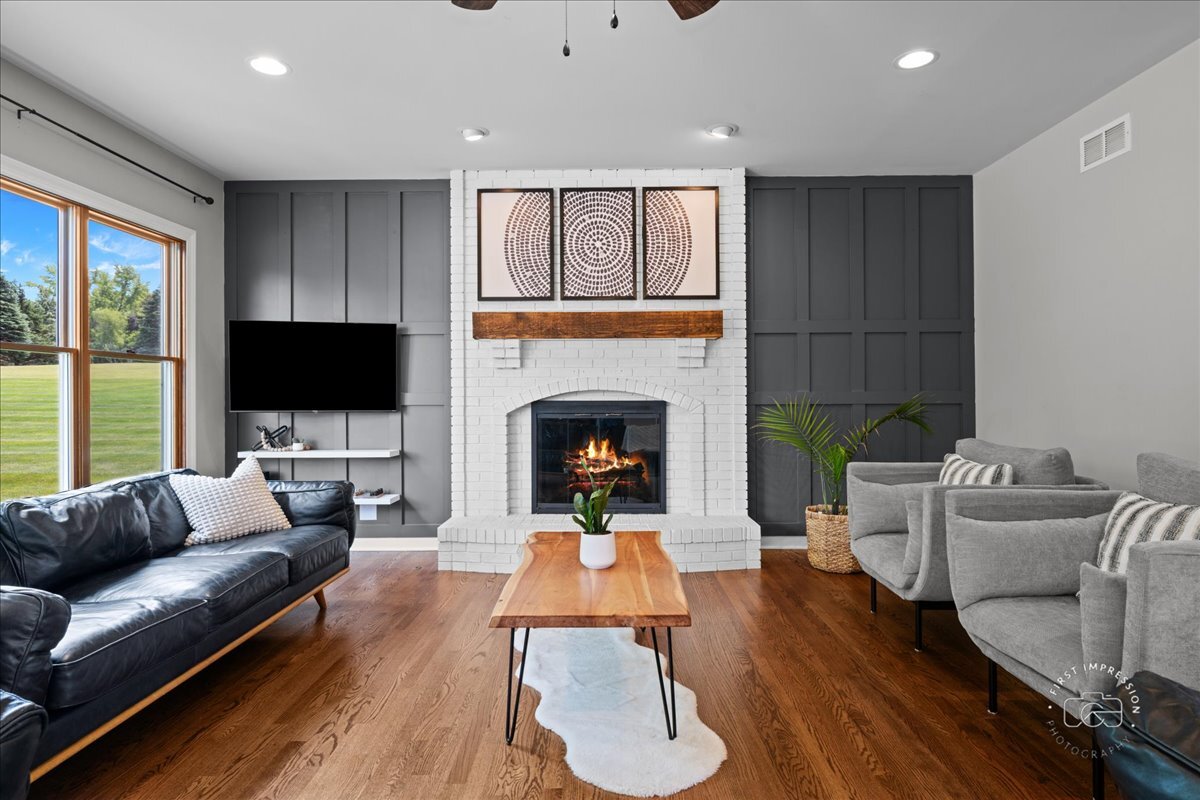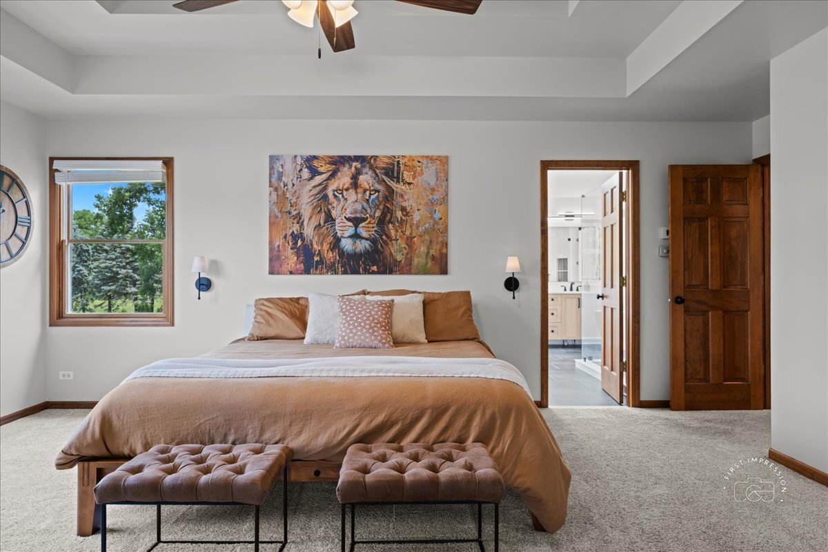 Beautifully updated home on 1.4 private acres with mature trees and outdoor spaces designed for enjoyment. 4342 square feet of finished living space!!! Extensive improvements over the last several years. Exterior updates include board replacement, stain, and trim paint (May 2024). New roof, skylights, and gutters (October 2023). Gorgeous primary bath remodel with new finishes (March 2024), Basement bath remodel with new glass shower door (December 2023). Shared upstairs bath remodel (November 2023). Hardwood floors throughout the main level (May 2022) and new carpet on the second floor (August 2019). Fresh interior paint, light fixtures, and ceiling fans (September 2019). Outdoor features include a stone fire pit and surround (May 2020), an in-ground basketball hoop and painted court (April 2022). Water heater (installed in December 2021) and heated garage (installed in November 2019). Updated hardware on doors and cabinets (August 2022). Move-in ready with space to relax, entertain, and enjoy the outdoors. Like hiking, walking, and nature–then you will love that the Great Western Trail extends from LeRoy Oaks to Grey Willows Farm—this home backs to the 208 acre parklike area with 10 hiking trails. Enjoy the beauty and serenity of the ever-changing vistas! Very versatile property, as NO HOA—County covenants! Great value for one-of-a-kind custom residence!