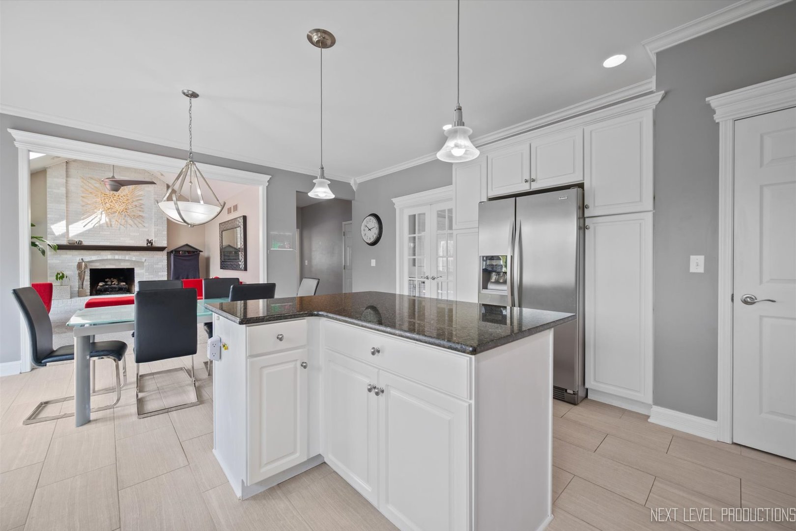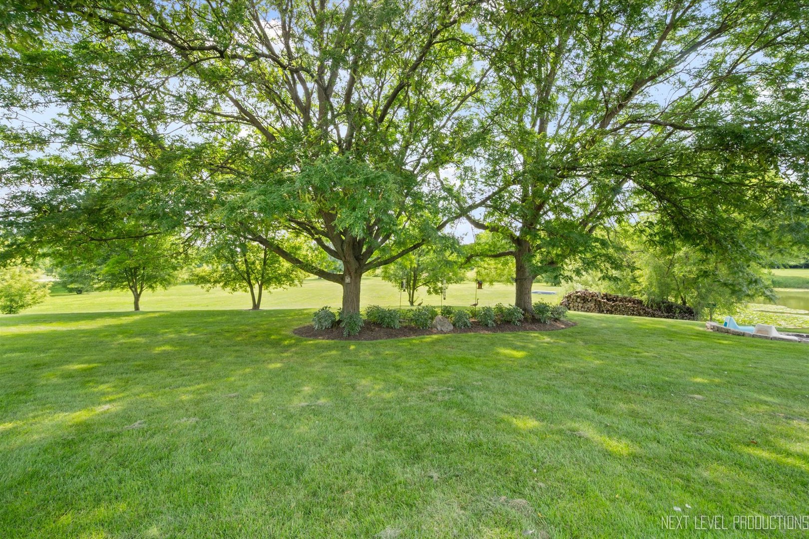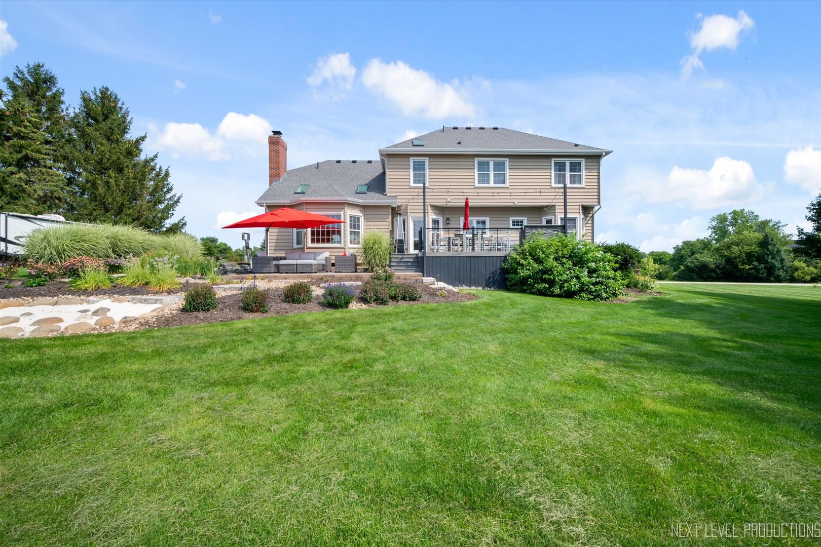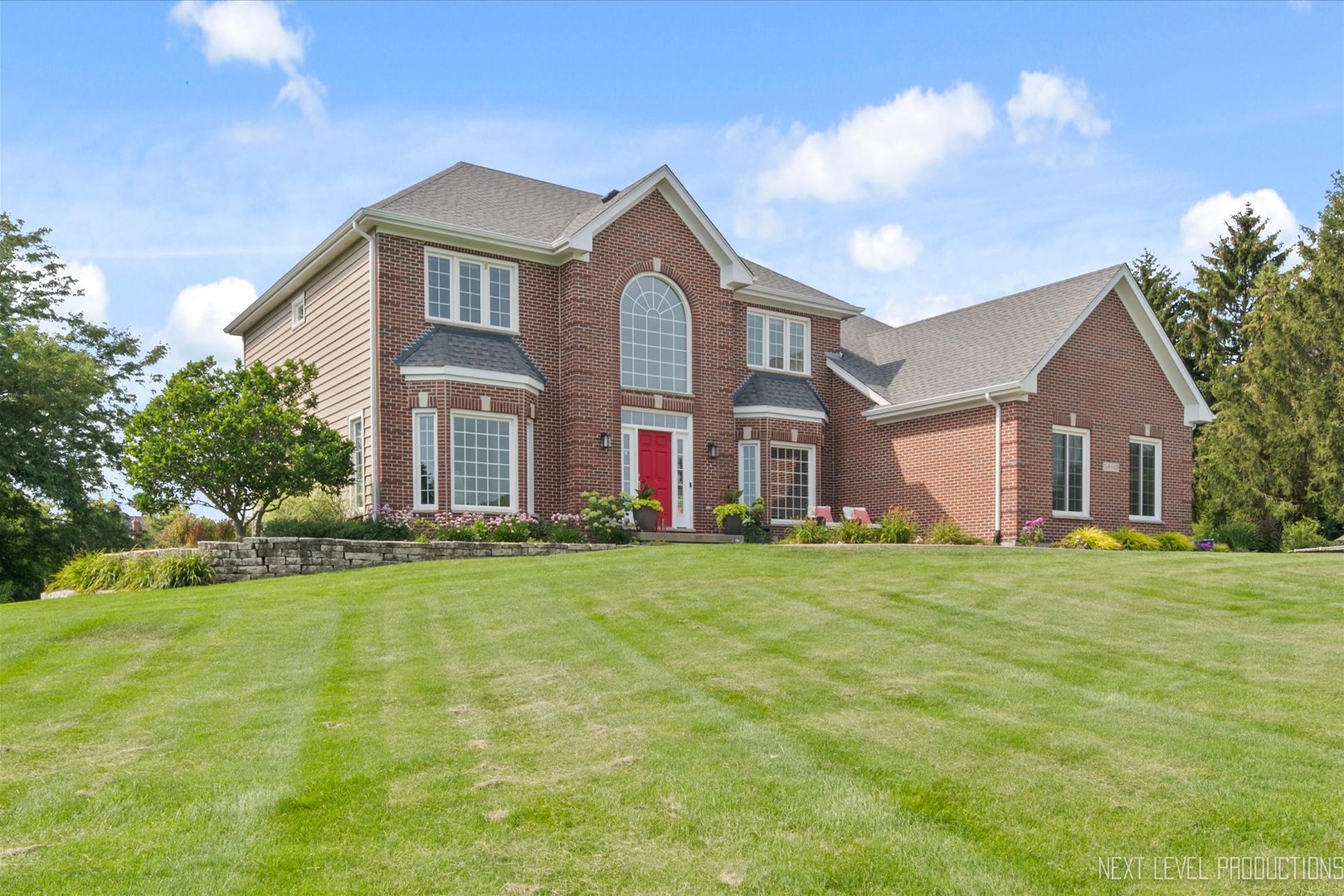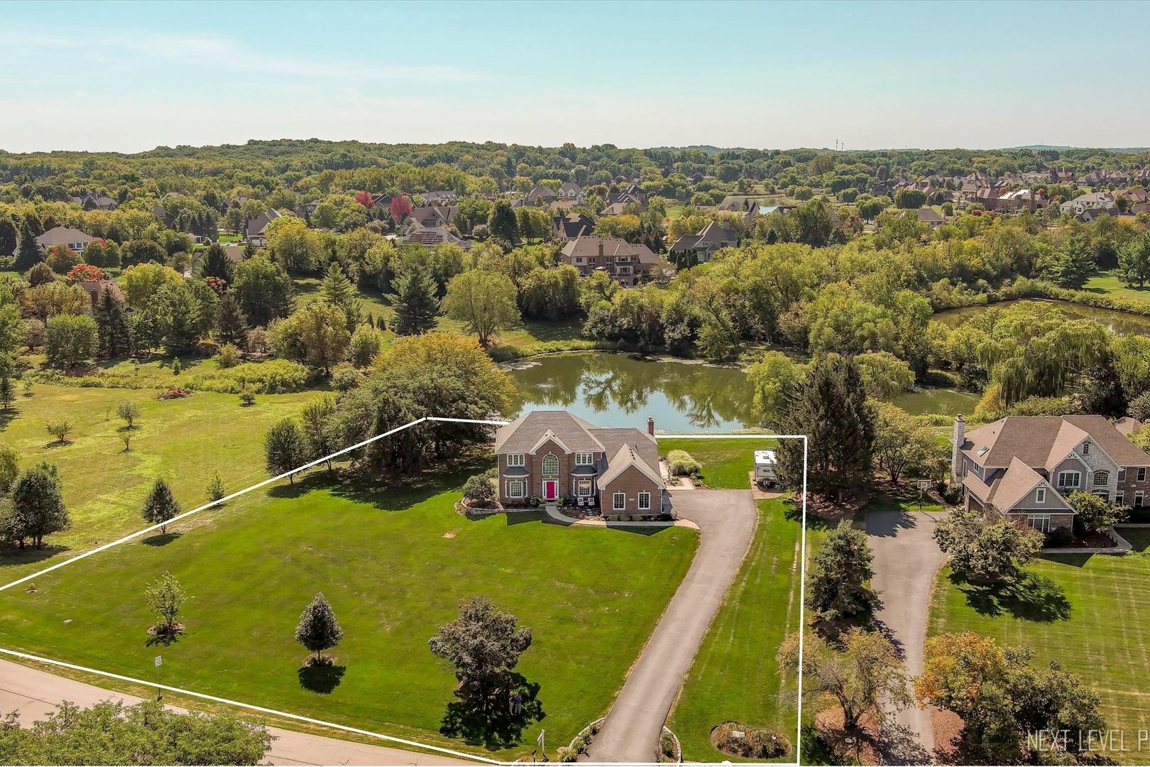 Gorgeous waterfront property nestled on over an acre of beautiful views, offers a stunning and serene very private setting, extensive multi-level Trex deck with a gentle babbling water feature, and professionally landscaped yard. Inside, a grand two-story foyer welcomes you, fringed by the formal living and dining rooms adorned with detailed millwork. The light-filled chef’s kitchen features white cabinets, sleek porcelain tile floors, breakfast bar with built-in wine storage, stainless steel appliances, and granite countertops, flowing seamlessly into the spacious family room with a dramatic floor-to-ceiling fireplace, two new skylights, and soaring vaulted ceiling. The main level also includes a den/guest room with peaceful water views, big bay window and a convenient adjacent full bath, a flex space/mudroom, and a first-floor laundry with access door to the side yard. Upstairs, the luxurious primary suite boasts a tray ceiling, a massive walk-in closet, and spa-like bath with dual sink vanity, soaker tub, and separate shower. Three additional bedrooms with generous closet space, ceiling fan/lights share a full hall bath with dual sinks and a tub/shower combo. Custom closet organizers in every bedroom! The full finished lookout basement offers a large rec/game/media space with built-in TV niche and cabinets, half bath, and plenty of storage. A three-car side-load garage and a brand-new roof (2024) complete this exceptional home. Conveniently located only minutes west of Randall Rd., easy access to I90 and close to area parks and forest preserves too!