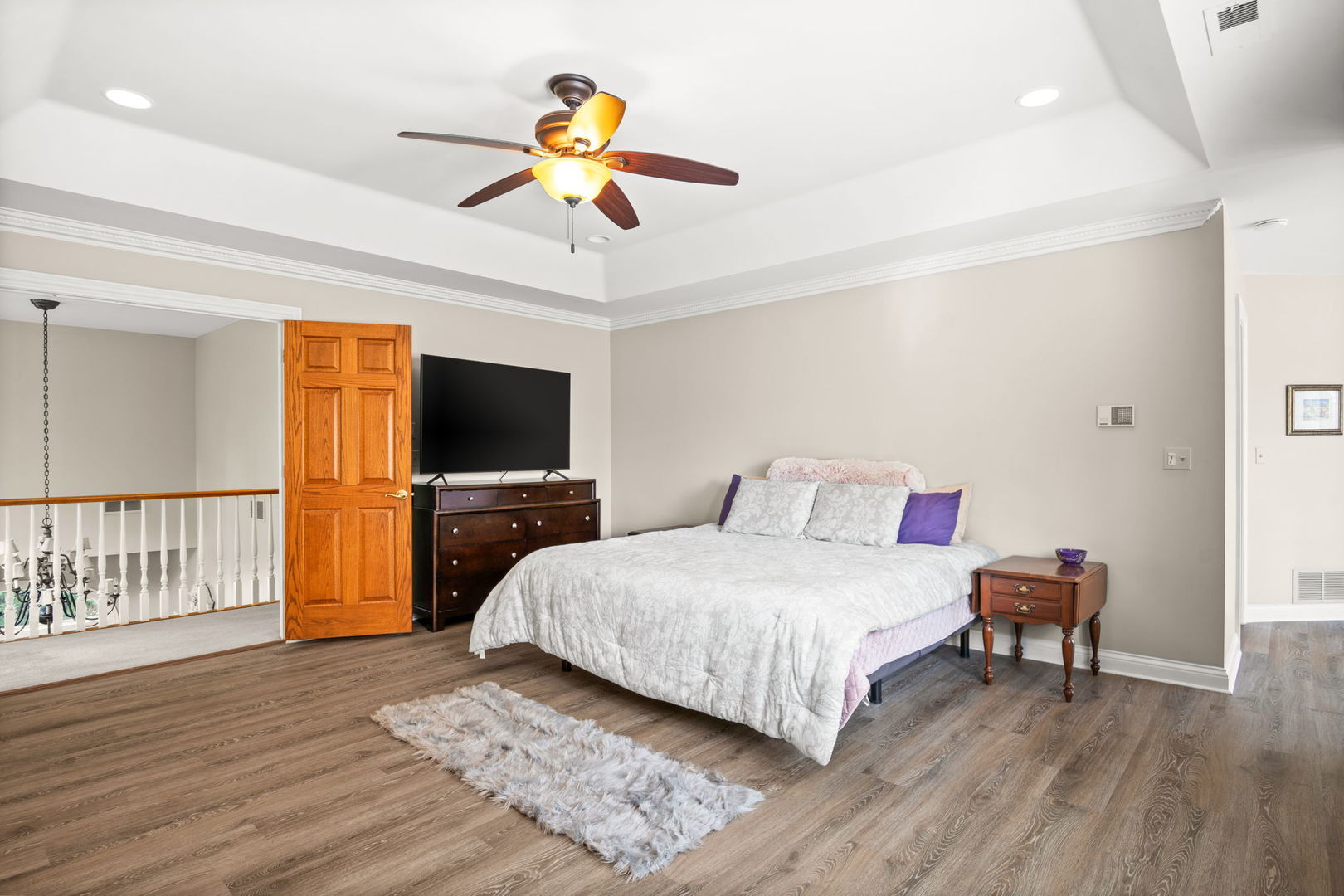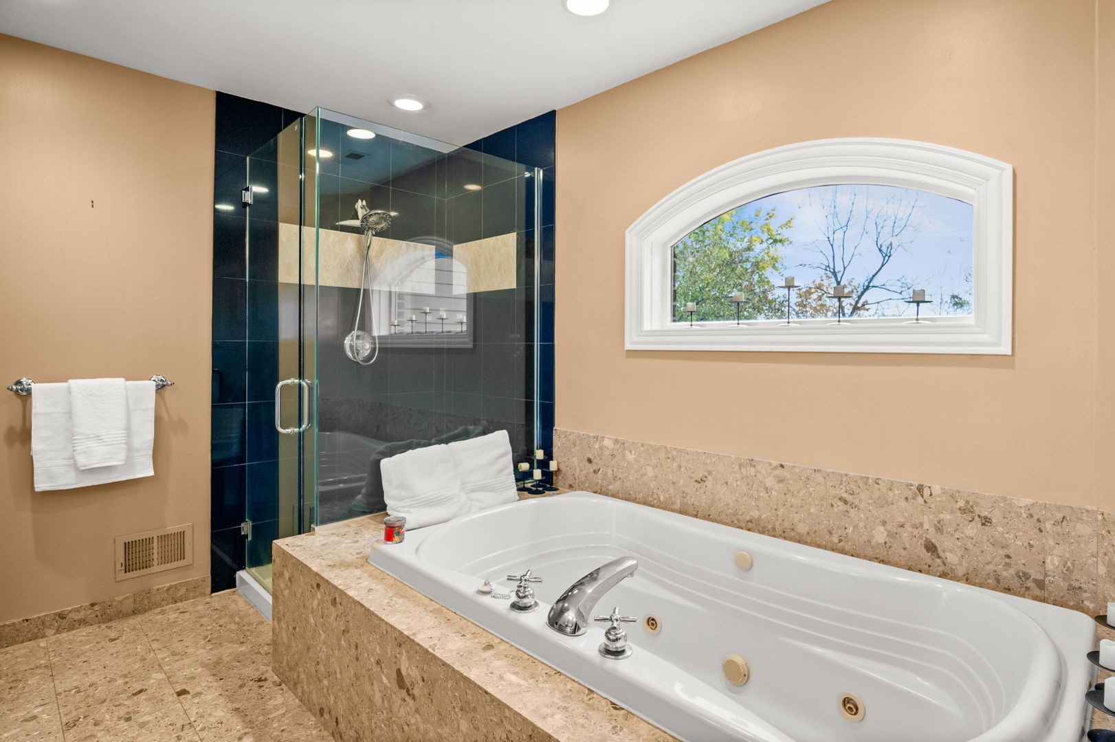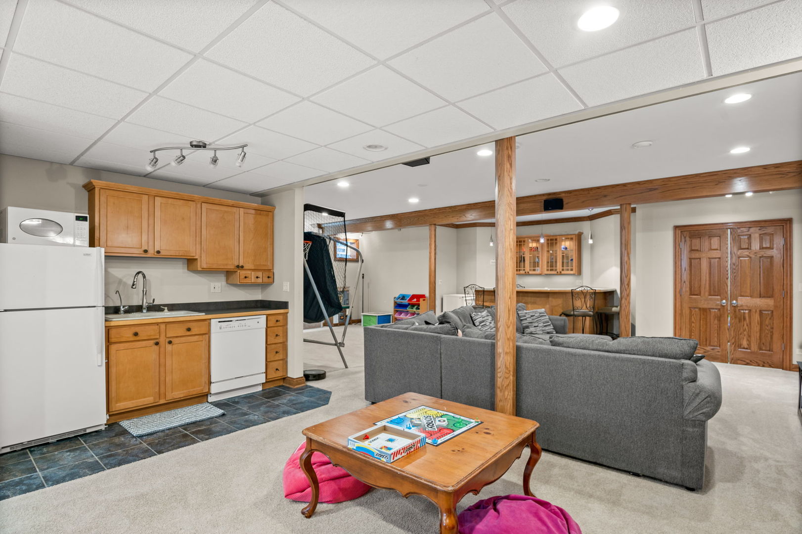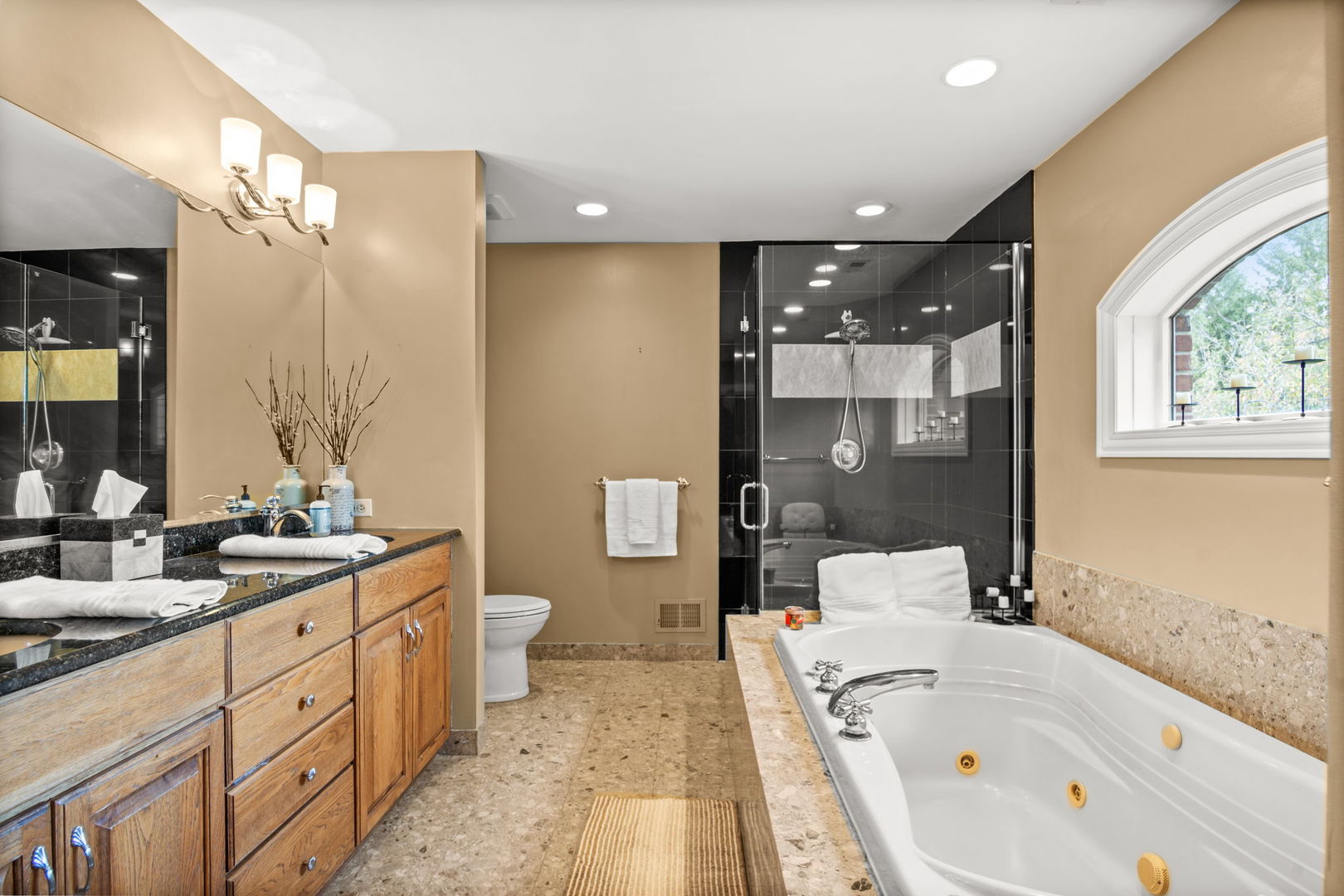 Set on a picturesque over one-acre lot in the established Baker Acres neighborhood of St. Charles, this brick and cedar two-story offers over 4,600 square feet of beautifully updated living space. Private backyard enclosed by arborvitae trees and lush landscaping. Mature trees, a spacious patio with pergola, and a three-car side-load garage enhance its curb appeal, while inside, hardwood flooring and detailed trim flow throughout the main level. The layout includes a bayed living room, formal dining room, and an eat-in kitchen with recessed lighting, tile backsplash, under-cabinet lights, and a island with new countertop and high-end stainless steel appliances. The family room features a gas log fireplace with remote start and wet bar, creating an inviting space to gather. Upstairs, four bedrooms (all with walk-in closets) include a luxurious primary suite with a tray ceiling, luxury vinyl plank flooring, 2nd fireplace, and a spa-like bath with whirlpool tub and updated shower, while two additional bedrooms also feature new vinyl plank floors. Expansive 4th bedroom! The finished basement expands the living area with a fifth bedroom, full bath, rec room, kitchenette, and bar. Modern updates include all upgraded mechanicals, a 2024 HVAC system, smart thermostat, EV charger, Pella windows, new reverse osmosis water filtration system, buried sump pump line and new well, all just minutes from the best of St. Charles living.