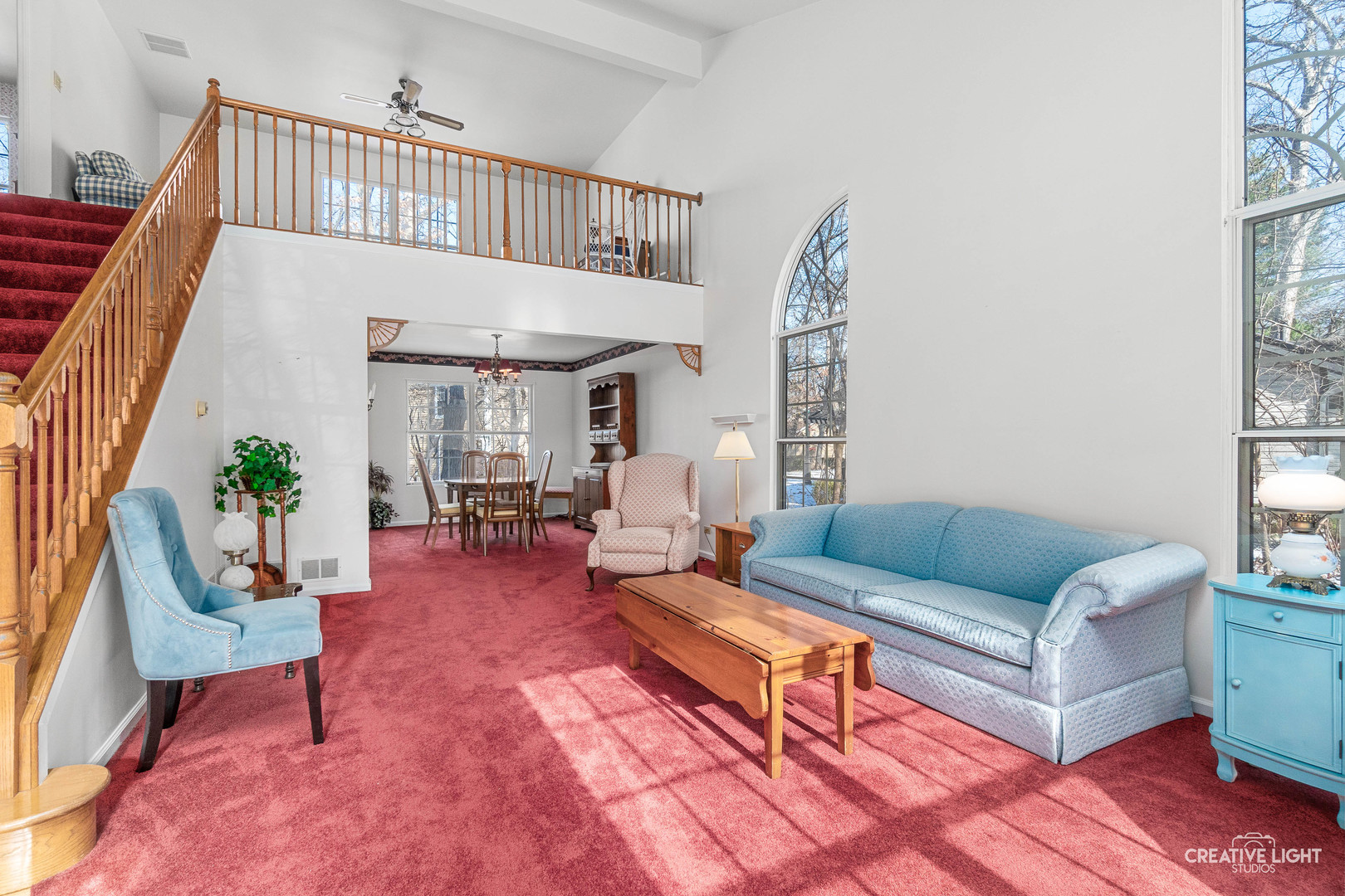 Wow! Spectacular location! Tucked away on a quiet cul-de-sac on a beautiful wooded lot! Enter into the dramatic 2-story foyer with plant shelf! Sun filled living room with vaulted ceilings and large 1/2 round windows leads into a separate formal dining room perfect for entertaining! Very functional eat-in kitchen with custom oak cabinetry, center island, corner sink, undercabinet lighting and all appliances stay! Separate eating area with bay bump out! Cozy family room with vaulted ceilings and sliding door to the beautiful yard filled with mature trees and privacy! Convenient 1st floor master bedroom with double door entry and private full bath with oversized vanity! Open spacious loft overlooks the living room! Gracious size secondary bedrooms! Huge basement has endless possibilities! Newer furnace, A/C and water heater! Exterior trim work recently repainted! Perfect quick access to I-90, Rt 59 and Rt 20 makes it great for commuters! Make an offer! We are ready to put a deal together!