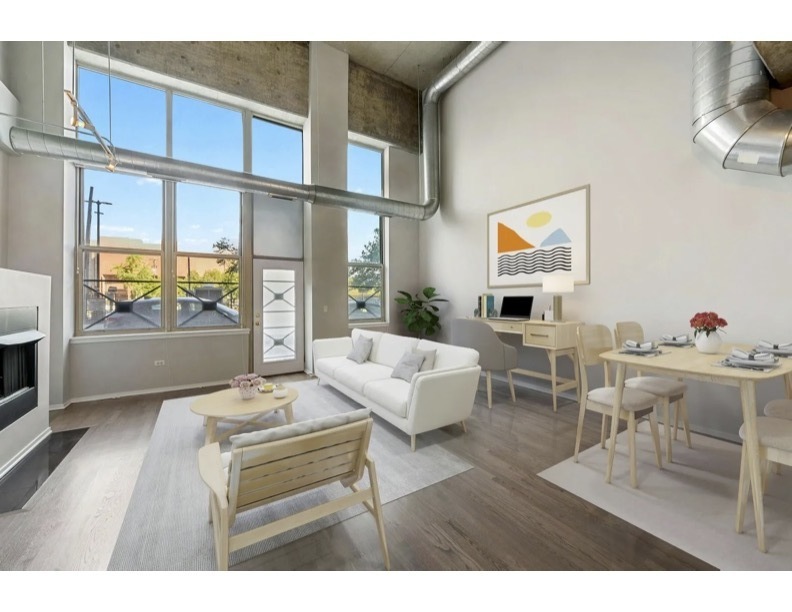 A bright two-story oasis in the West Loop. 20ft floor-to-ceiling windows and a private entrance allow the unit to live with volume and space rarely found in 1-bedroom condos. The building is renter-friendly in a highly desirable location, making it great for an owner-occupant or investment property. The open first floor offers endless creative possibilities for living, dining, and entertaining. Featuring a half bathroom, cozy gas fireplace, and full appliance kitchen. Upstairs offers privacy and features a full bath and a bedroom that can fit a king-size bed and walk-in closet with plenty of storage. Two deeded parking spaces are included in the price! Valued at 25k each and can easily be rented for additional income. The building is staffed, pet-friendly, and incredibly accommodating. All of this is within walking distance to Chicago’s premier venues, including Epiphany Arts Center, The Loyalist, Good Night John Boy, Randolph Street Market, and so much more. Experience the best Chicago urban life has to offer in a unique, modern, open, living space.