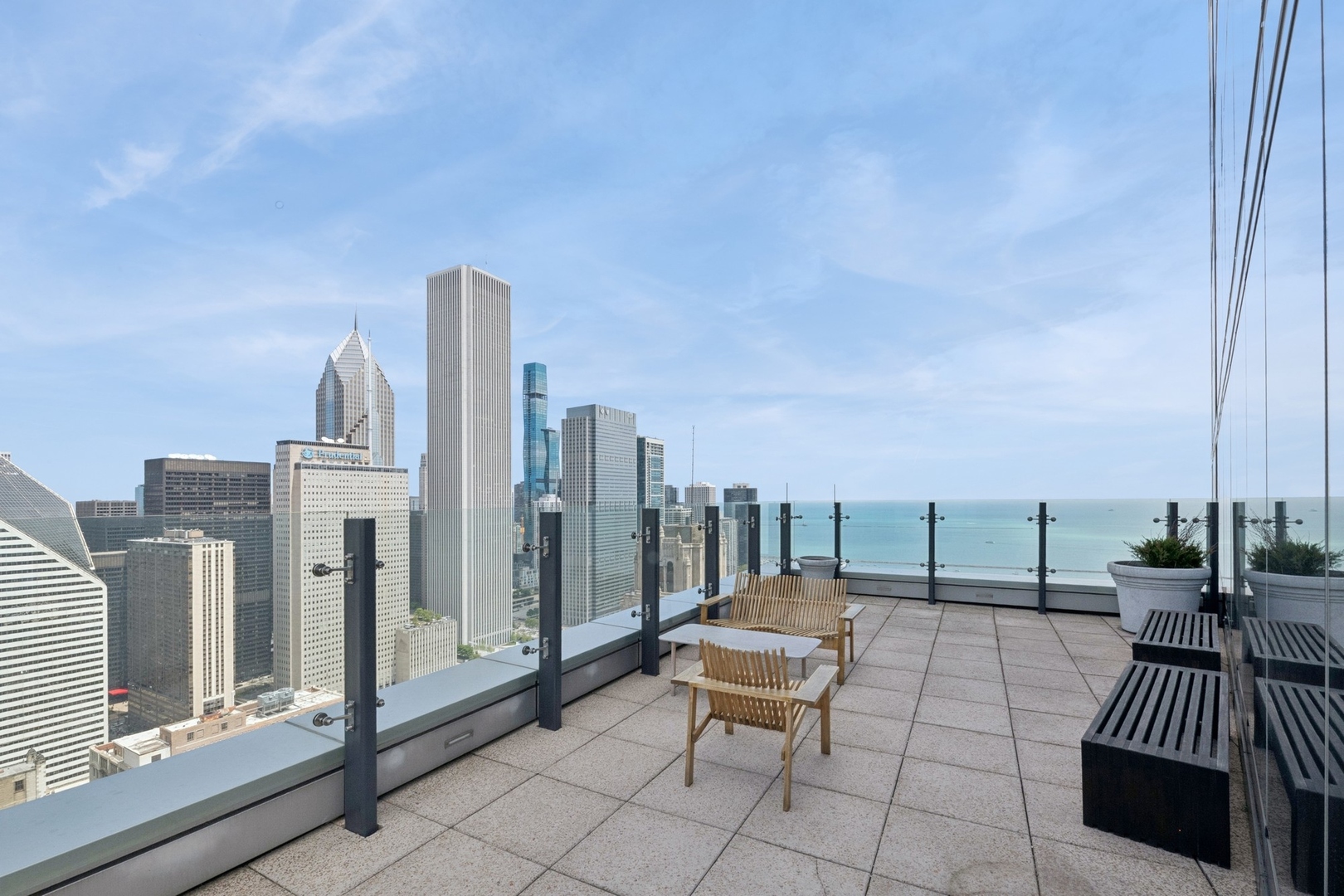 HIGH FLOOR PREFERRED TIER AT LEGACY AT MILLENNIUM PARK! Stunning Views of Grant and Millennium Park, Lake, & City. Great floor plan with breakfast bar and open concept kitchen/dining/living room. Full primary suite has huge walk in closet and beautiful bath. Amenities: Sky Decks, Resident Lounges, Pool, Hot Tub, Steam Rooms, Fitness Center, Dog Run. 24 HR Door Service & Concierge. EXCELLENT management and door staff. Access to University Club Fitness. Lower floor parking space sold separately for 55,000.