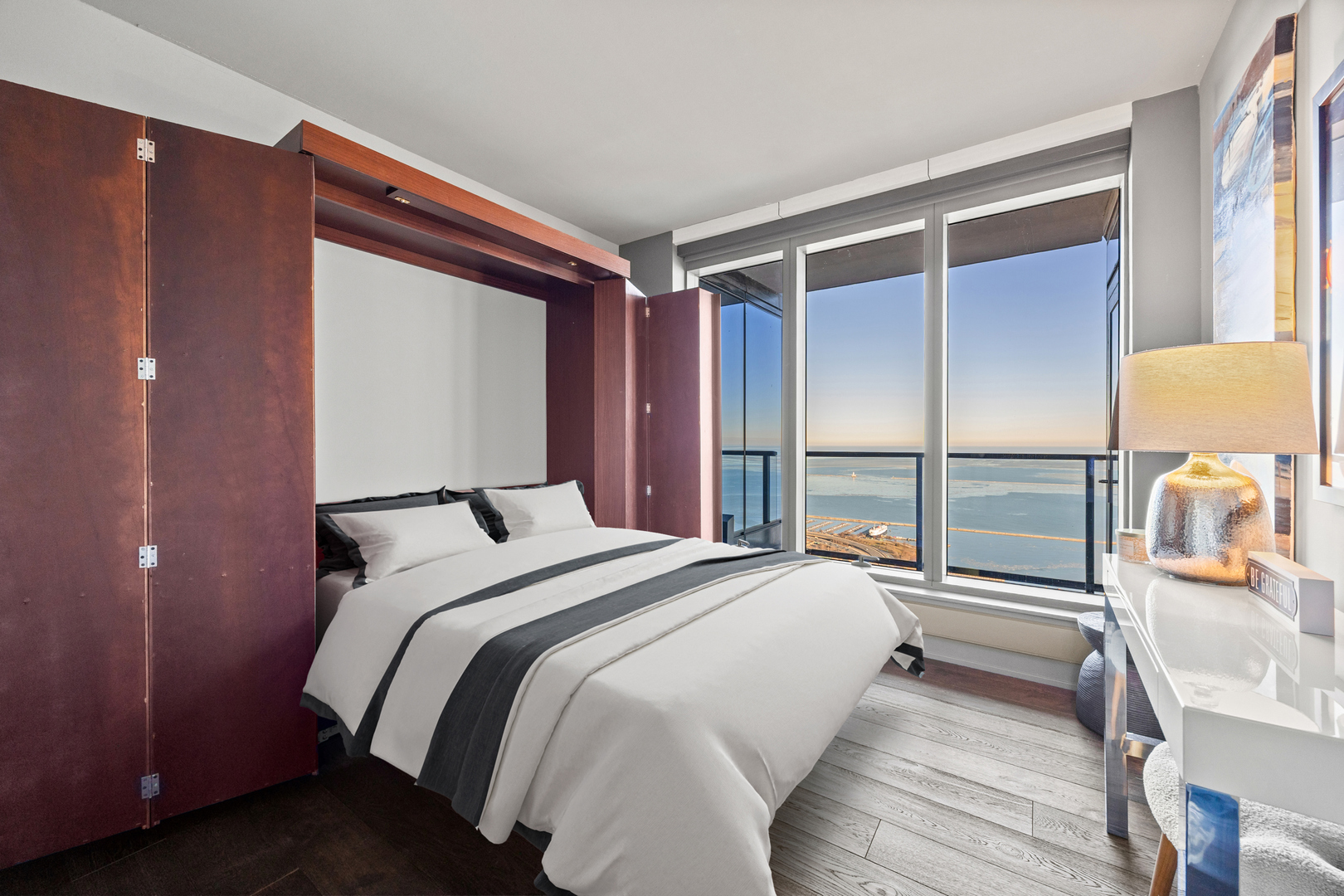 Perfectly positioned on Millennium Park, this stunning 58th-floor 3 bedroom 3 bath luxury residence offers 2,000 square feet of refined living. Floor-to-ceiling windows frame breathtaking, unobstructed views of Lake Michigan, the park, and the city skyline. A generously scaled living and dining room creates an ideal setting for entertaining, while the chef’s kitchen impresses with imported Italian Snaidero cabinetry, a Sub-Zero refrigerator and a striking tile backsplash. The sun-filled primary suite features an oversized, professionally organized walk-in closet and a spa-inspired bath with a separate shower and soaking tub, plus a marble-topped double vanity. Two additional spacious bedrooms offer excellent closet space. A true laundry room with side-by-side washer and dryer and a large east-facing balcony-perfect for taking in lake views-complete the home. Enjoy full-service amenities including 24-hour door staff, an indoor lap pool, hot tub and steam room, multiple outdoor terraces, and elegant hospitality spaces. Tandem parking space available. This fabulous city home checks all the boxes!