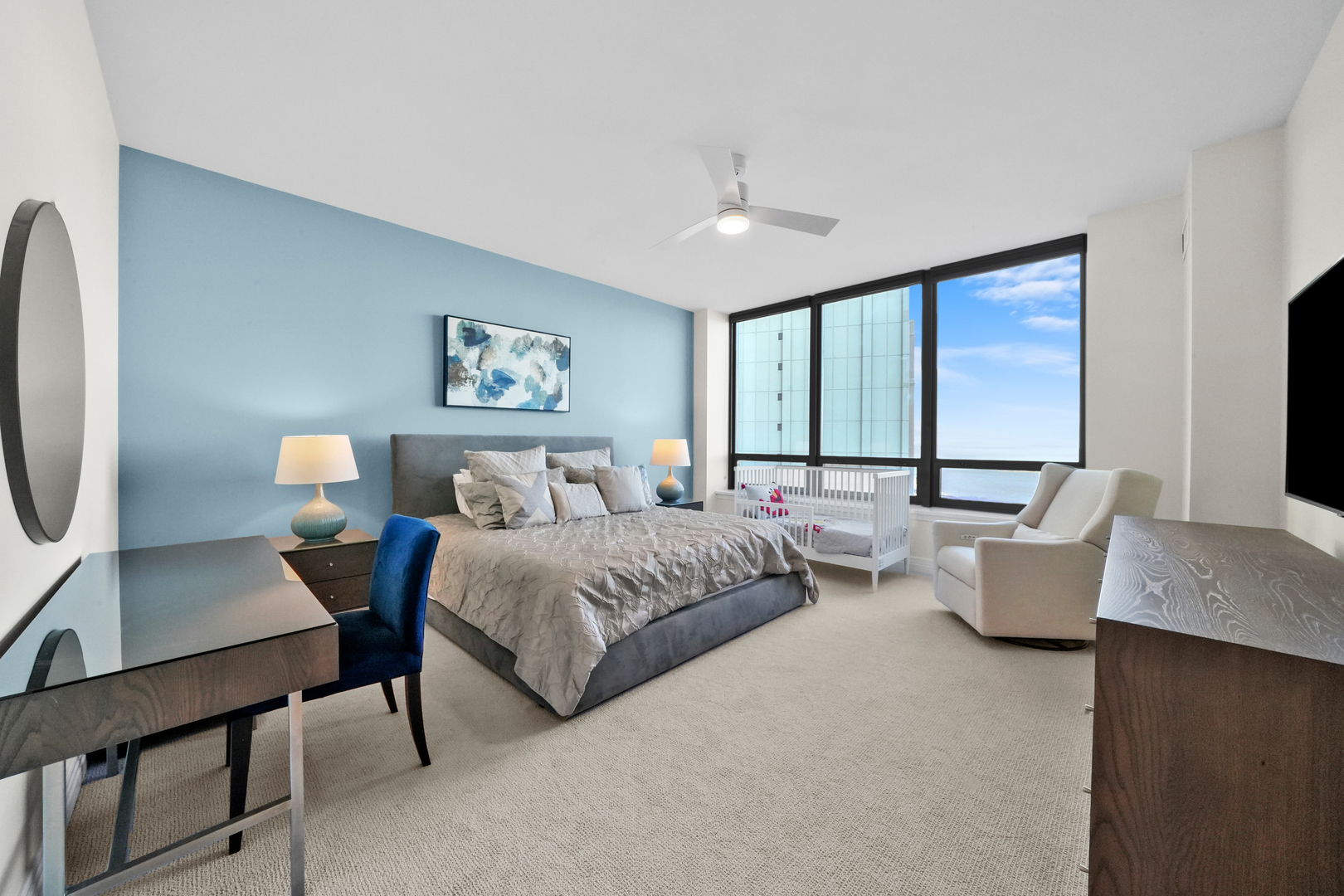 Experience Spectacular Lakefront Living at 600 N. Lake Shore Drive Discover over 2,500 sq. ft. of unobstructed lake views from this stunning 11th-floor northeast corner residence-the largest three-bedroom layout in the prestigious north tower at 600 Lake Shore Drive in Streeterville. As you step inside, you’re immediately greeted by breathtaking, sweeping views of Lake Michigan from every window. This highly sought-after split-bedroom floor plan offers the perfect balance of formal and informal living with abundant space and flexibility. The Chef’s kitchen features granite countertops, a custom backsplash, upgraded stainless steel appliances, and ample cabinetry. The oversized breakfast bar comfortably seats five, complemented by custom overhead lighting, making it an ideal space for entertaining. Cooking with such spectacular views is a game-changer! The open-concept living, dining, and kitchen areas flow effortlessly onto a large inset balcony, perfect for enjoying evening cocktails while soaking in the incredible scenery. Adjacent to the main living space, a bonus area overlooks the lake and provides additional seating, complete with a dry bar and beverage refrigerator for effortless entertaining. The luxurious primary suite is a haven of comfort, offering lake views, plush custom carpeting, and two spacious walk-in closets with custom built-ins. The spa-inspired ensuite bath features double marble vanities, a whirlpool tub, and a separate steam shower for a true retreat experience. The second bedroom offers stunning north-facing views, custom carpeting, a custom walk-in closet, and private balcony access. The third bedroom, with its serene lake views, is currently configured as a home office but easily accommodates a queen bed and dresser. It includes an ensuite bathroom, making it perfect for guests. Additional highlights include a conveniently located powder room for guests, a spacious laundry room with a full-size washer and dryer, and extra storage space. One prime third-floor parking spot is available for $50,000, and the residence includes a full-cage storage unit. 600 N. Lake Shore Drive is a full-amenity LUXURY building featuring a beautifully designed lobby, 24-hour attentive door staff, on-site management, and an updated fitness center with state-of-the-art equipment. The building also offers two rooftop lounges and party rooms with panoramic views of the lake and city skyline. Situated in a quiet, premier Streeterville location, you’re just steps away from Ohio Street Beach, the Lakefront Trail, Navy Pier, Michigan Avenue, and some of Chicago’s finest dining and shopping destinations. Watch the annual Air and Water Show from your private balcony or enjoy fireworks every Monday and Wednesday during the summer months. Don’t miss this rare opportunity to live in one of Streeterville’s most coveted buildings. A dream home with unmatched value, this residence offers the ultimate in lakefront living. Explore the property in 3D! Click the 3D button to take a virtual tour and walk through every detail.