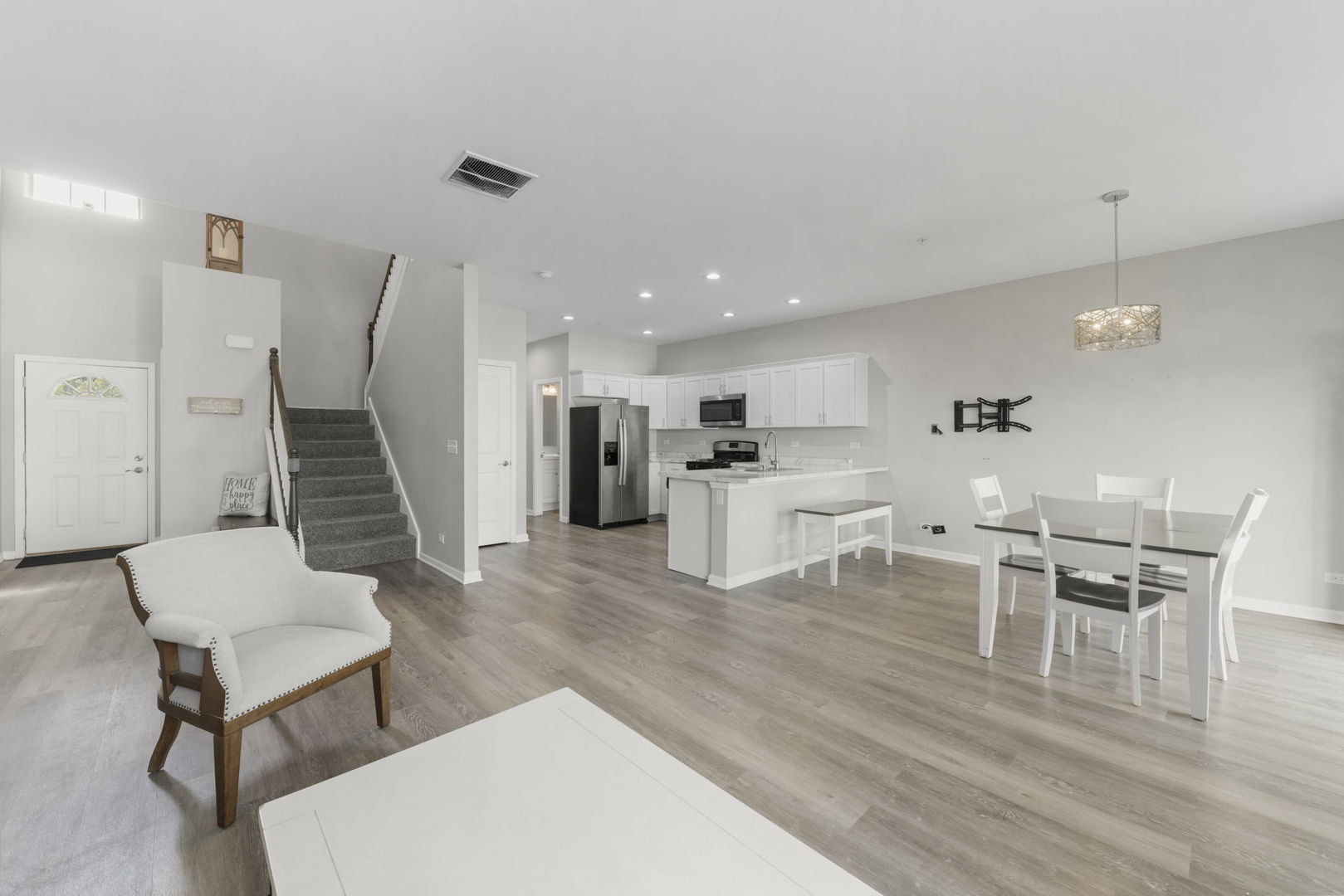 Welcome to this stylish new construction townhome located in a sought-after community served by top-rated Glen Ellyn schools. Featuring 3 spacious bedrooms, 2.5 bathrooms, and an inviting open floor plan, this home is built for both comfortable living and effortless entertaining. The main level flows seamlessly from a light-filled living area to a modern kitchen outfitted with stainless steel appliances, sleek cabinetry, and ample counter space. Step right out to your private back patio, perfect for grilling or relaxing after a long day.Upstairs, you’ll find all three bedrooms, including a generously sized primary suite, and the added benefit of second-floor laundry-no more hauling baskets up and down stairs. A full 2-car garage adds practicality and extra storage. If your are looking for low-maintenance living with all the right features, this townhome delivers. Conveniently located near shopping, dining, and commuter routes-this is one you don’t want to miss. Note: photos are of a model unit very similar.