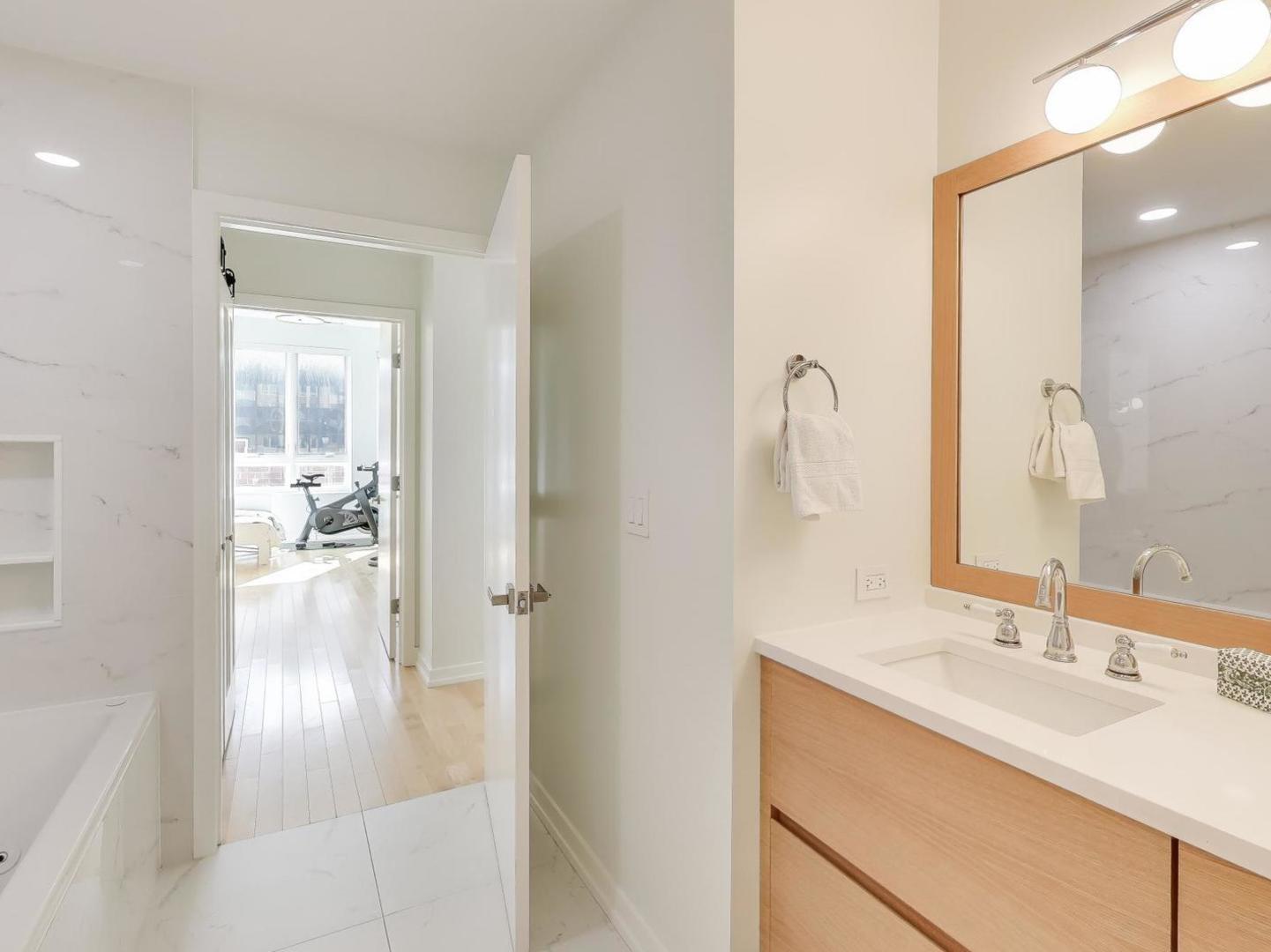 Stylish, Sun-Filled Condo in Prime Sauganash Location! This beautifully updated 2-bedroom, 2-bath home features an open concept layout with 11′ soaring ceilings and expansive south-facing windows that flood the space with natural light. The renovated kitchen (2023) impresses with custom cabinetry, stainless steel appliances, a spacious island with seating, and sleek modern finishes-perfect for both cooking and entertaining. The beautifully updated primary and hallway baths (2023) are equally stunning. Additional highlights include in-unit laundry (2024), remote-controlled window treatments in every room (2025), and a private oversized balcony-ideal for relaxing or dining al fresco. The home includes a garage parking space and offers unbeatable accessibility to I-94 for an easy commute. Best of all, you’re located right above Whole Foods, so everything you need is just an elevator ride away! Close to Sauganash Park, top-rated schools, and neighborhood favorites – this home truly has it all.