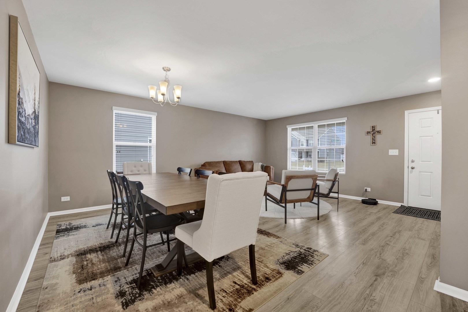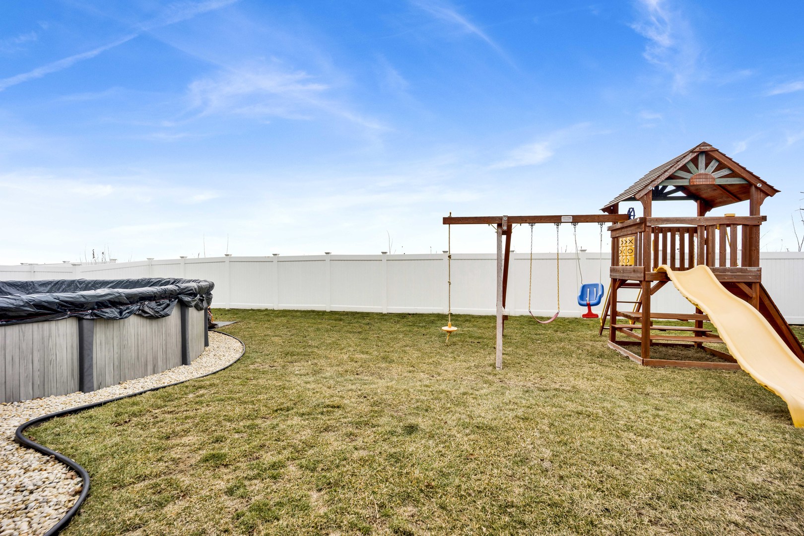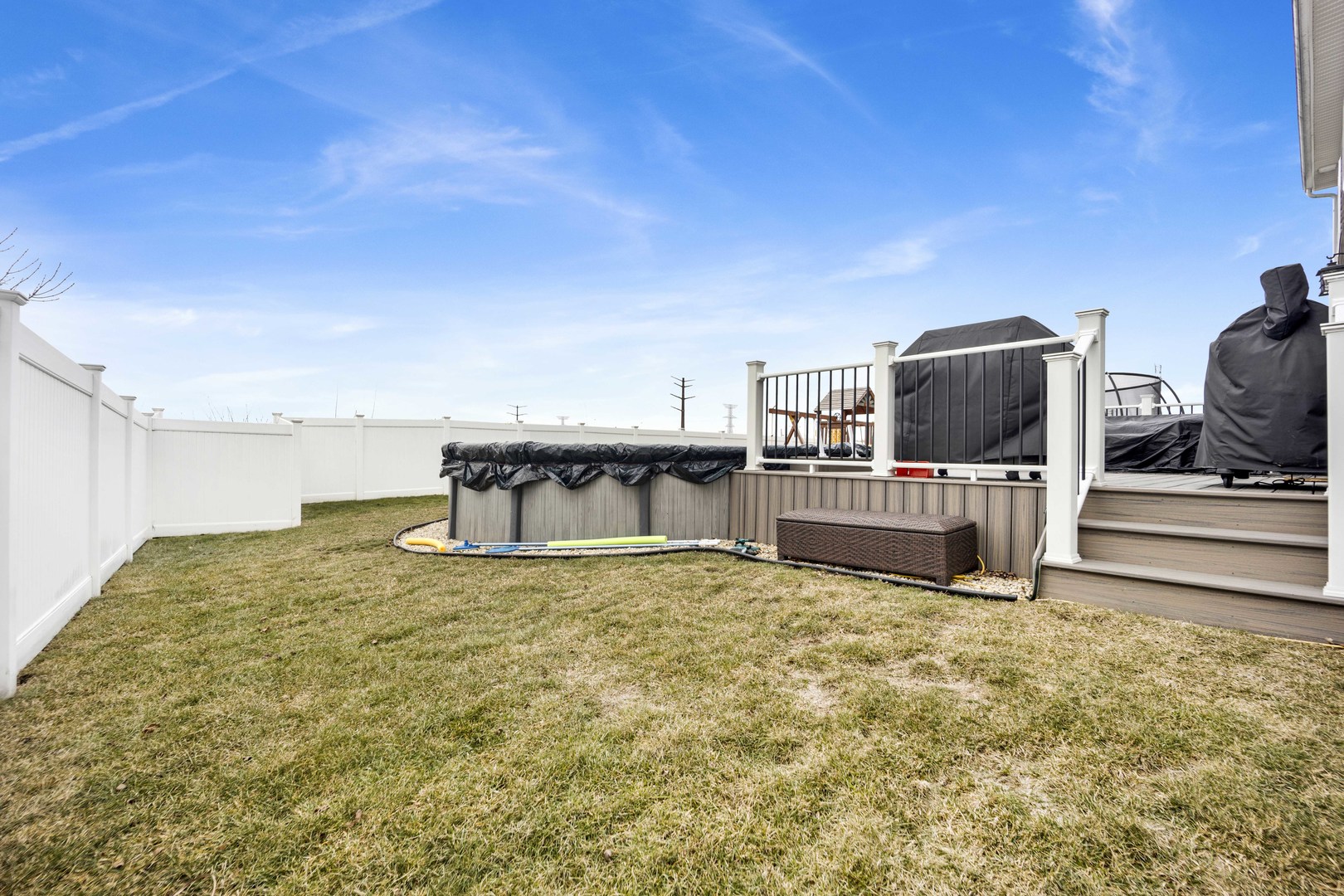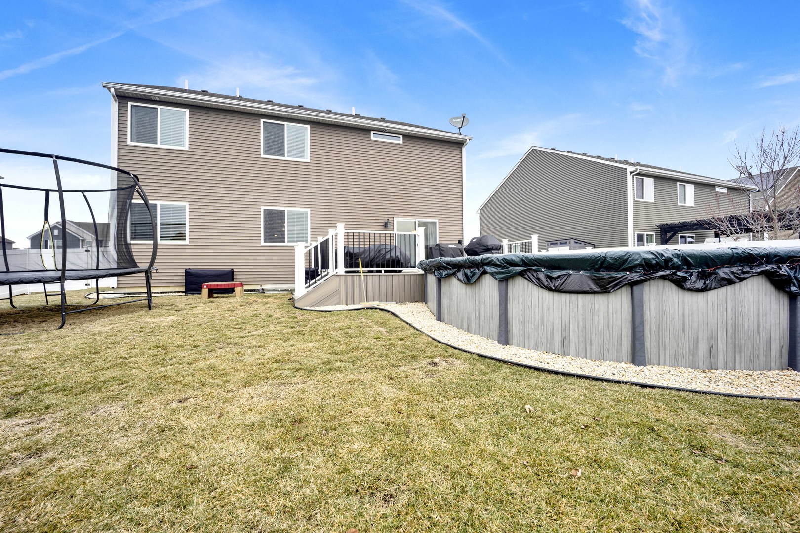 Two story home located in the Fall Creek subdivision with 2,825 sq ft of functional flow. This 4 bed, 2.5 bath really is a one-stop shop. Walk into the heart of the home from the well-kept garage with epoxy flooring and drywall. Laundry room and coat closet conveniently located upon entry. The beautifully designed, open-concept kitchen has rich wood cabinetry and is complemented by expansive counter space, stainless steel appliances, recessed lighting and center island with seating. Kitchen also features a large eat-in area, pantry and access to rear yard. This home is the perfect setup for entertaining in the fully fenced backyard. From grilling on the Trex deck, to taking a dip in the heated pool or just soaking in the serene open views. Such a warm and welcoming family room and private feeling living room with half bath. LVP flooring throughout main level. Spacious second floor with loft and 4 bedrooms. Oversized primary bedroom offers en suite stand-up shower, double sink vanity, toilet room and 2 closets, one of those closets being 10X6. Additional full bath with double sink vanity on second floor. Use your imagination for the loft area and if that’s not enough living space above grade, the finished basement with beautiful wood laminate flooring really tops it off. Also, don’t miss the expansive crawl space perfect for storage. Such a great location close to restaurants, shopping, golf course and easy access to highways!
