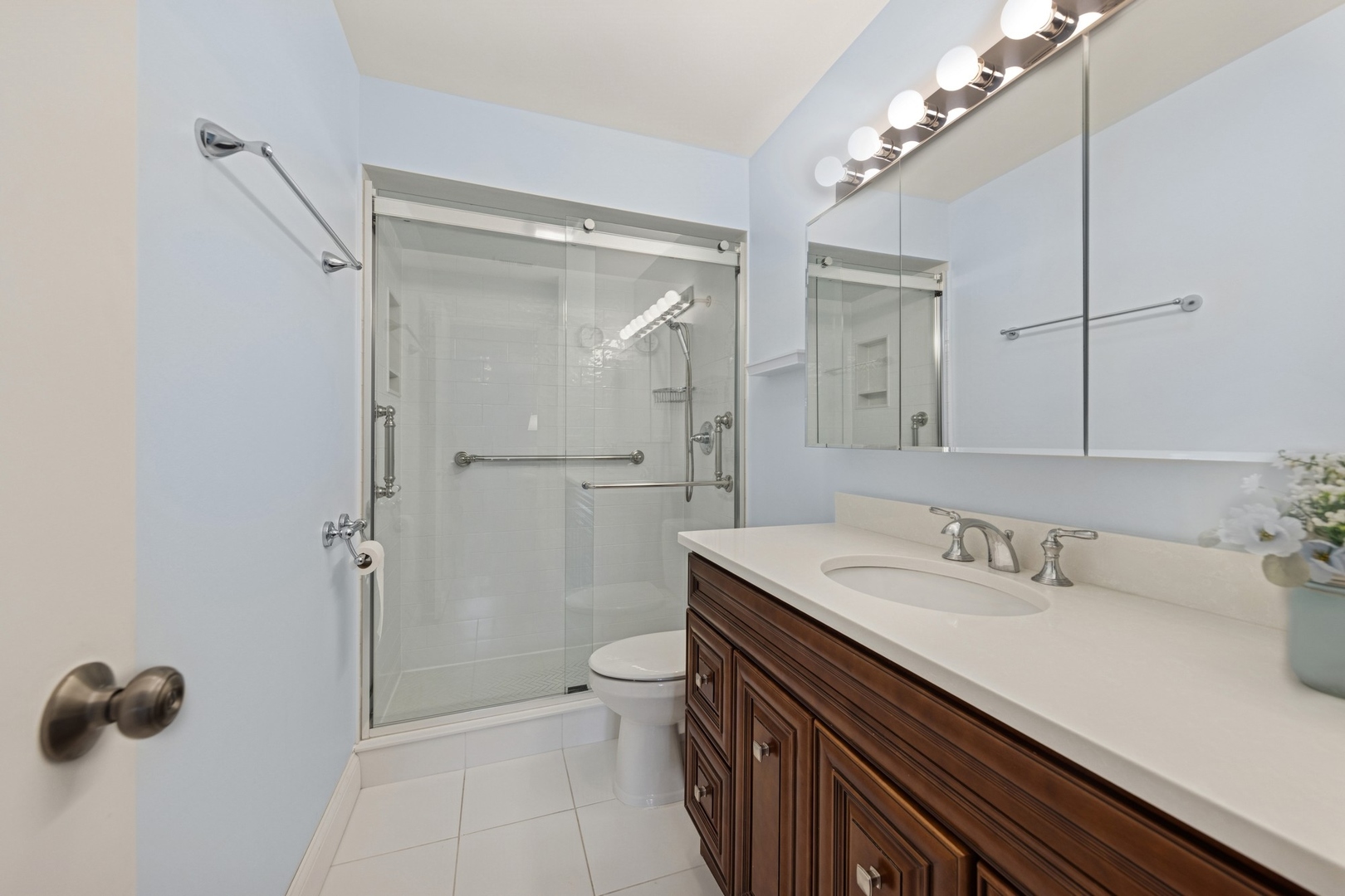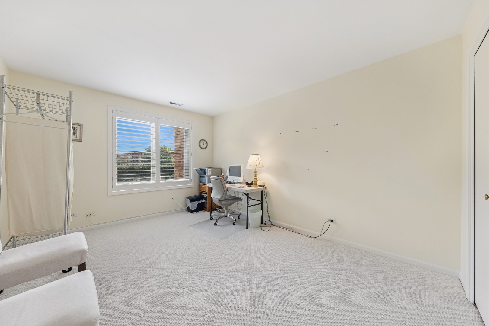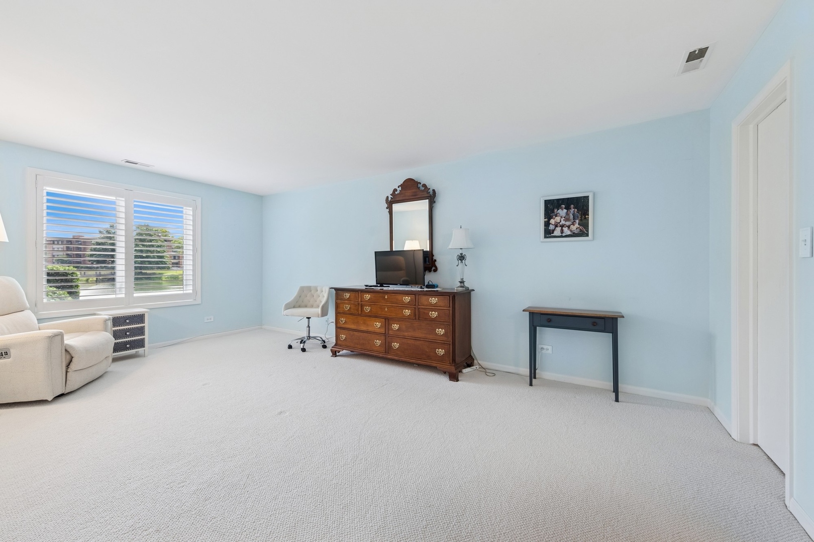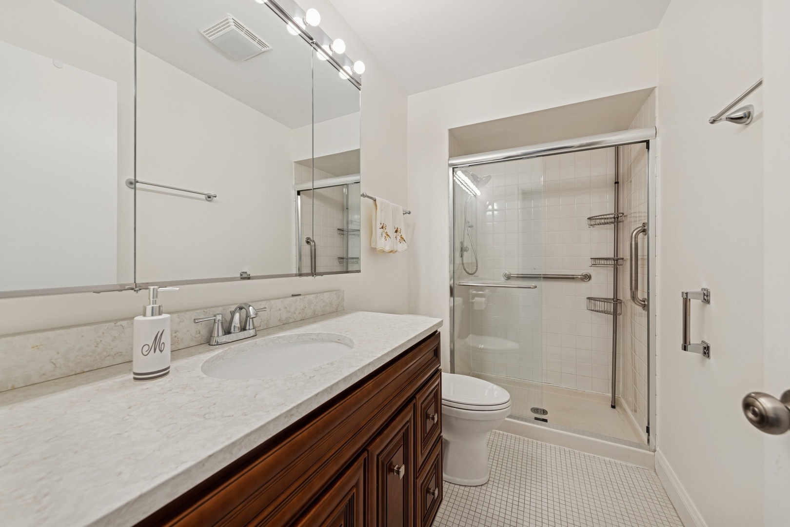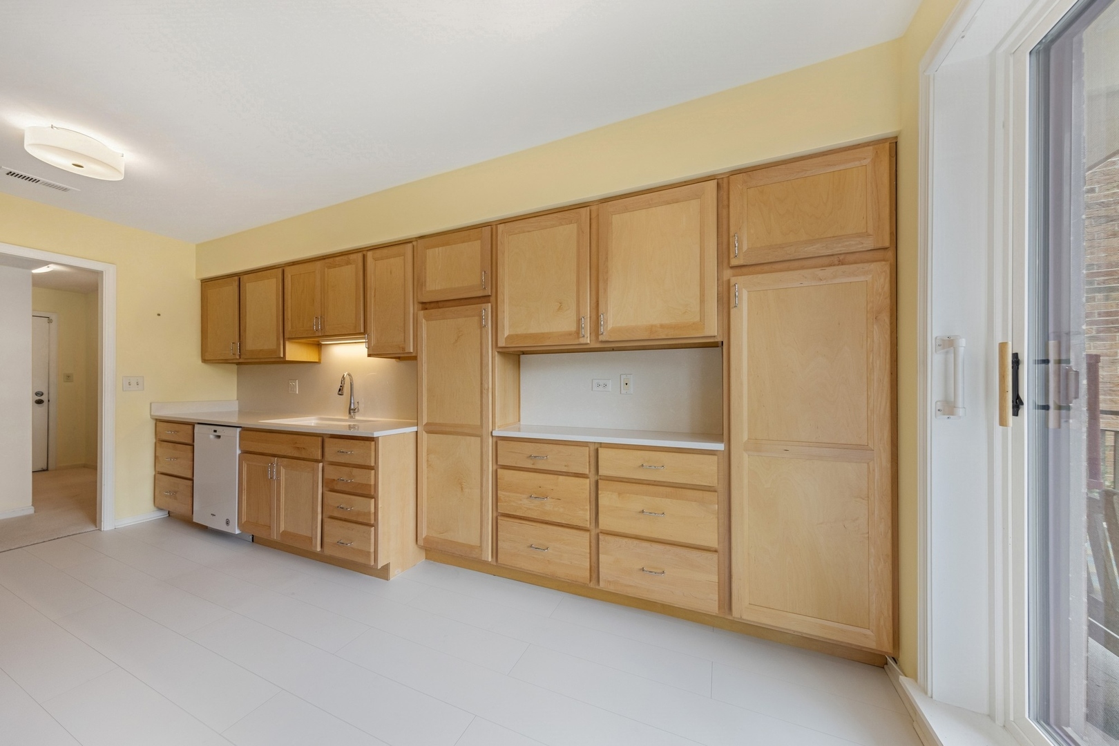 Beautifully maintained and freshly updated FIRST FLOOR, END UNIT with scenic LAKE VIEWS and convenient outdoor access. This 2-bedroom, 2-bath condo offers a comfortable and functional layout with fresh paint and brand new carpeting throughout. The recently redone (2023) kitchen features quartz countertops, a water view, and space for a breakfast table. The living area includes a gas fireplace with brick surround, and large sliders. The primary bedroom includes a full private bath and generous closet space. Gorgeous plantation shutters throughout. A separate laundry room with utility sink and an assigned garage parking space (#9) add to the practicality of the unit. Located just off the building foyer for easy entry, this condo also includes a new sliding glass door and private balcony to enjoy the outdoors. Community amenities include walking trails, pickleball and tennis courts, a park, playground, clubhouse and sundeck. The 601 building has an updated party room, and an exercise room overlooking the lake. A new swimming pool is scheduled for completion this summer. A great opportunity for no maintenance living in a desirable, active community with beautiful surroundings and easy access to shopping, dining, and recreation.