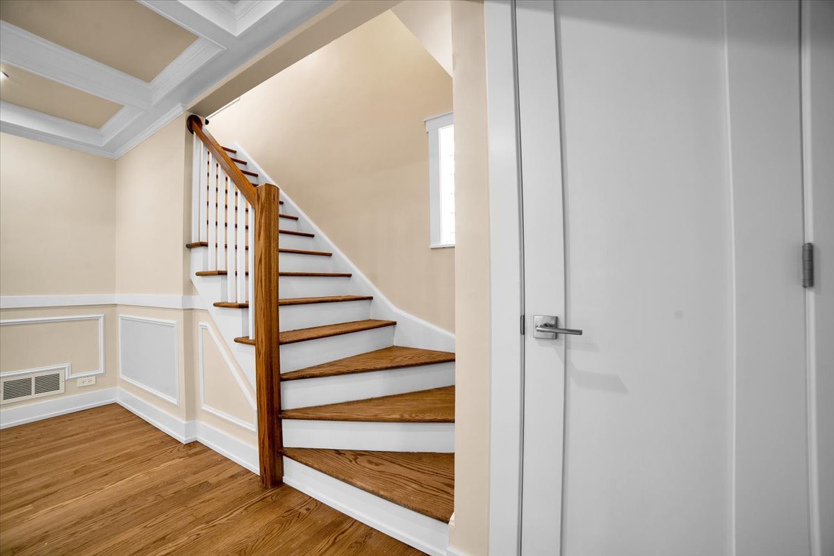 Experience the elegance of new construction quality within this exceptionally renovated 4-bedroom, 3-bathroom single-family home, nestled in the highly sought-after Belmont Cragin neighborhood. Every detail has been carefully curated to exude sophistication and modern comfort. Step inside and be captivated by coffered ceilings, exquisite crown molding, and elegant wainscoting that add depth and character. The luxury kitchen is a true showstopper, featuring a central island, pristine white shaker cabinets, sleek quartz countertops, a full-height backsplash, and premium stainless steel appliances-a perfect fusion of style and functionality. Each bathroom is a masterpiece, showcasing board and batten accents, stunning custom tiling, glass-enclosed showers, and high-end plumbing fixtures, elevating your daily routine into a spa-like experience. A striking side-entrance mudroom, adorned in shiplap paneling and thoughtfully designed with a built-in bench, seamlessly leads you to the main floor or the fully finished lower level. Downstairs, you’ll find an inviting family room, an additional bedroom, a full bath, a utility room, and bonus storage spaces for added convenience. The home is illuminated by LED fixtures and recessed lighting, enhancing its refined ambiance. Hardwood floors grace the main and upper levels, while durable vinyl-engineered flooring adds warmth and resilience to the basement. Outdoor living is equally impressive-enjoy gatherings on your spacious 22×23 deck, or retreat to the private 10×13 upper-level terrace for moments of relaxation. A generous two-car garage completes this impeccable residence, ensuring convenience and security. This home is designed for the discerning buyer seeking unparalleled craftsmanship, luxurious finishes, and modern functionality-a true gem in Belmont Cragin.