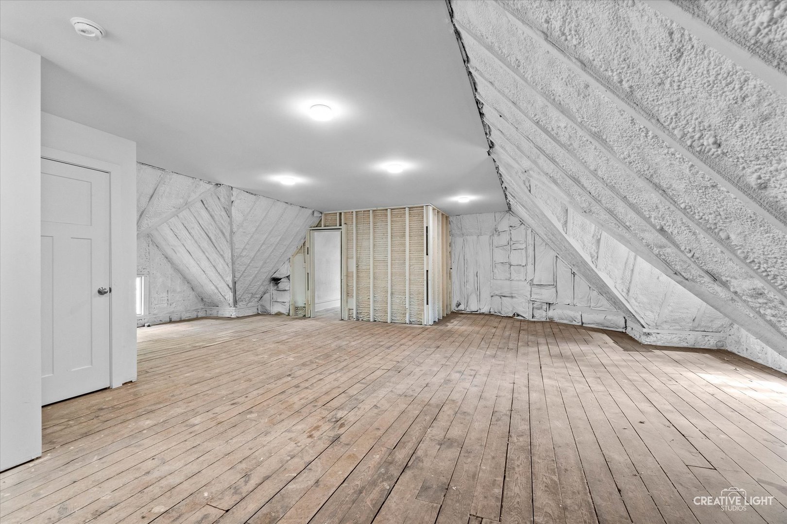 WOW!! BEAUTIFULLY UPDATED VICTORIAN ON ELGIN’S EAST SIDE!! 5 BR, 2 FULL BATH home offering over 2400 sqft of living space! Grand foyer with staircase leading to the second floor featuring 4 upstairs bedrooms. Newly updated kitchen features sleek white shaker cabinetry, stainless steel appliances, quartz countertops and a huge island that opens to your dining room! The main living space creates an ideal area for cooking and entertaining. The fifth bedroom is located on the main level along with a full bath, allowing this to make a great space for multi generational living or in-law arrangement! Primary bedroom features additional sitting room or would work well for nursery! Stunning original hardwood flooring runs throughout the entire home!Huge mud room located near the back porch! Walk up attic that has been partially finished, adding extra living space for you to enjoy! Huge insulated basement ready to bring your ideas! One plus car garage with additional storage! Nothing to do but move right in! The entire house is foam-insulated for ultimate energy efficiency, with zoned furnaces and AC units. NEWER Furnace, NEWER AC, NEWER water heater, and NEWER roof! Home has been freshly painted inside and out! All of this is located on a large corner lot! Hurry and schedule your showing today! Don’t forget to check out the 3D tour!