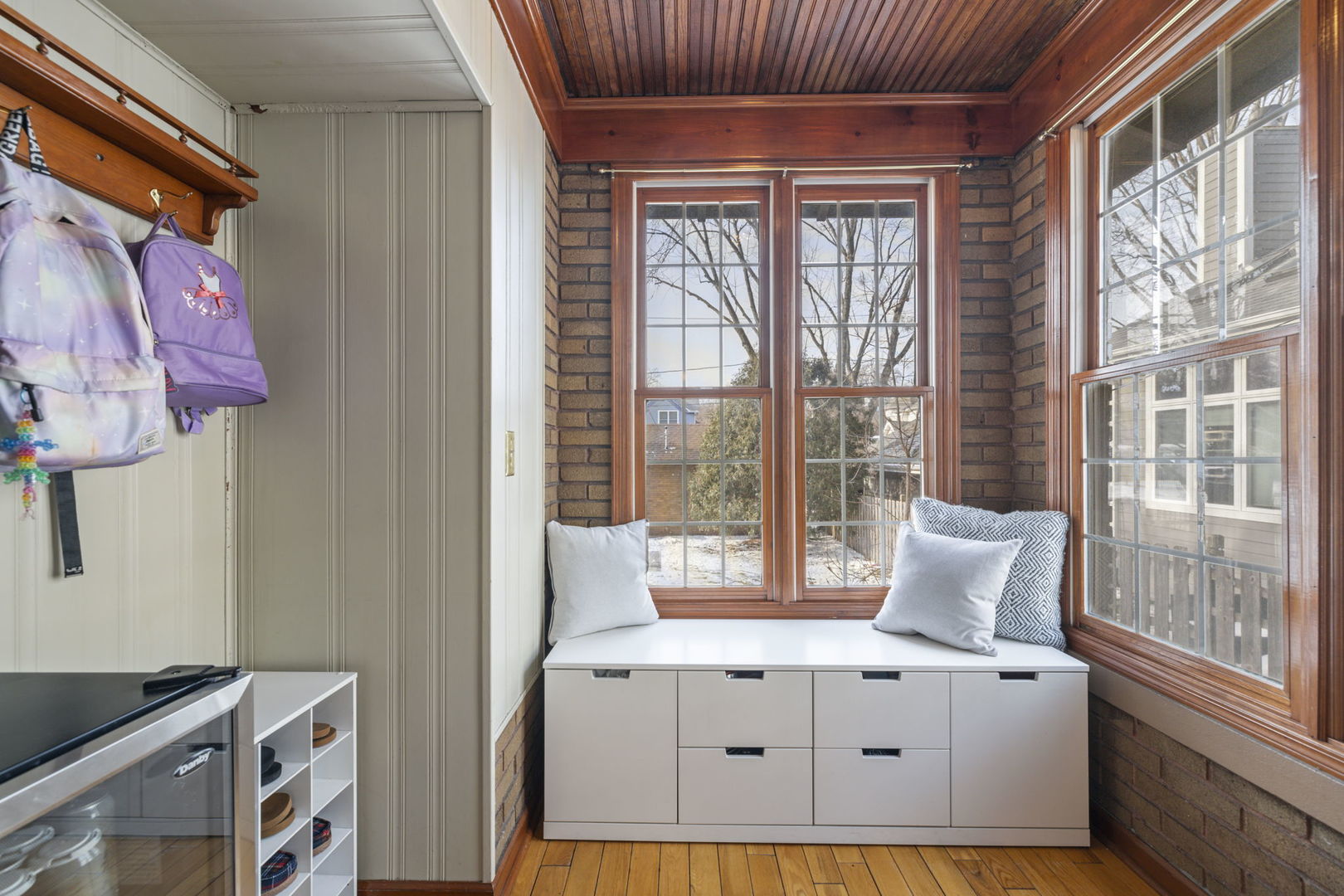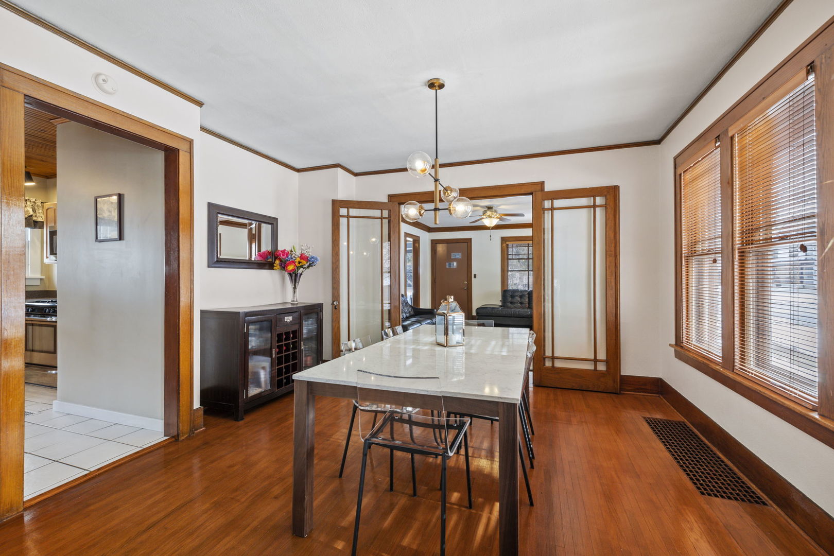 Timeless charm meets modern comfort in this incredible ALL brick bungalow, perfectly situated on a premier corner lot in the heart of Naperville. From the inviting front porch to the expansive yard and screened-in three-season patio, this home offers warmth, character, and functionality in one exceptional package. Inside, you’ll find beautiful original casement windows, classic moldings and baseboards, glass French doors, rich oak floors, and so much more yet it is still thoughtfully enhanced with today’s must have updates. The updated kitchen features maple cabinetry, stainless steel appliances, and a cozy breakfast/reading room just off the kitchen. Both the kitchen and baths have been tastefully updated, while the spacious primary suite boasts two walk in closets and a private bath. Significant improvements include a high efficiency furnace and A/C with Honeywell Prestige smart thermostats, tankless water heater, copper plumbing upgrades, newer appliances, updated lighting, and a relocated laundry room with a large stainless-steel sink creating additional flexible basement space with room to expand. An aluminum backyard fence, newer garage door opener, and updated bathroom fixtures further enhance peace of mind. The unfinished basement offers excellent storage and future living potential. Warm, inviting colors and meticulous care throughout make this home truly move-in ready. TALK ABOUT LOCATION!!! Being just two blocks to the Metra train, minutes to downtown Naperville, shopping, dining, entertainment, and easy expressway access makes it the perfect home! A rare opportunity to own a home that perfectly blends historic elegance with modern convenience.