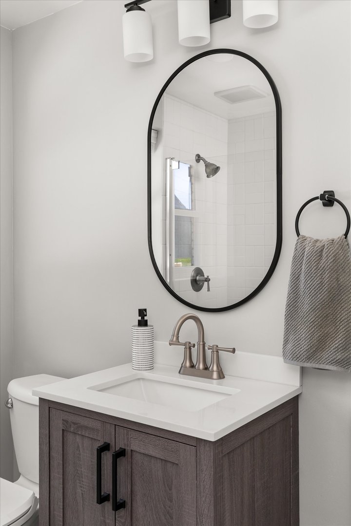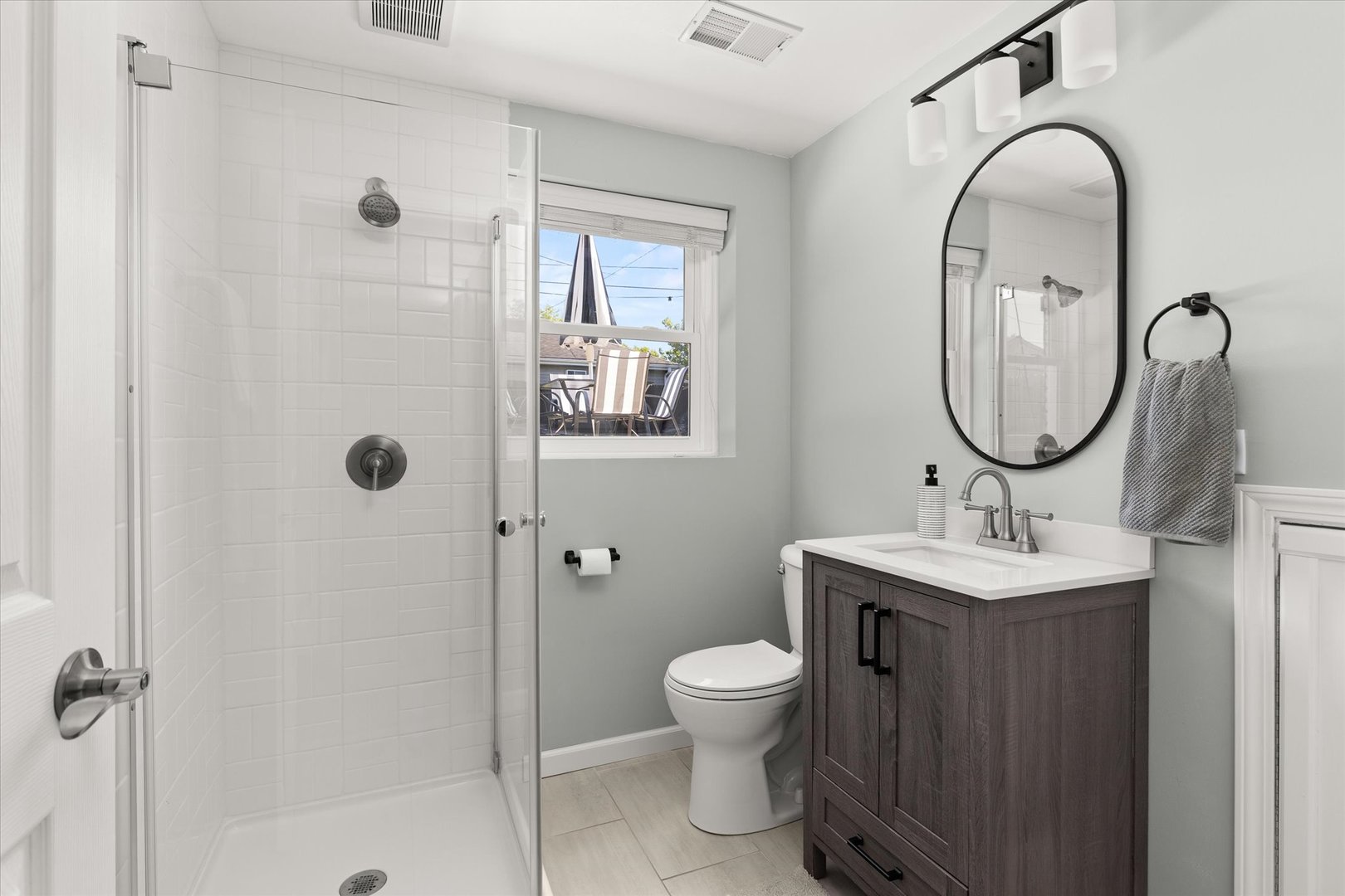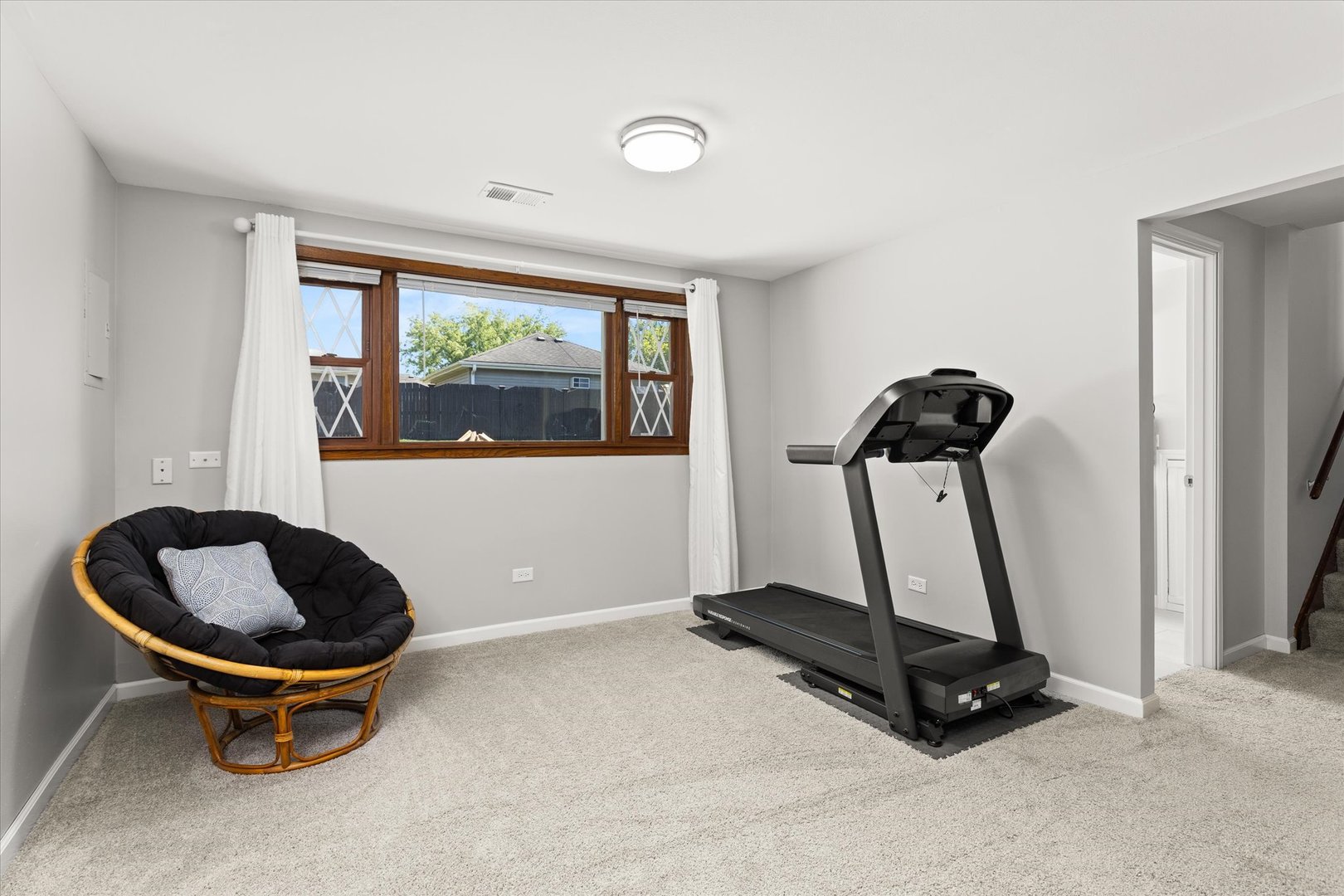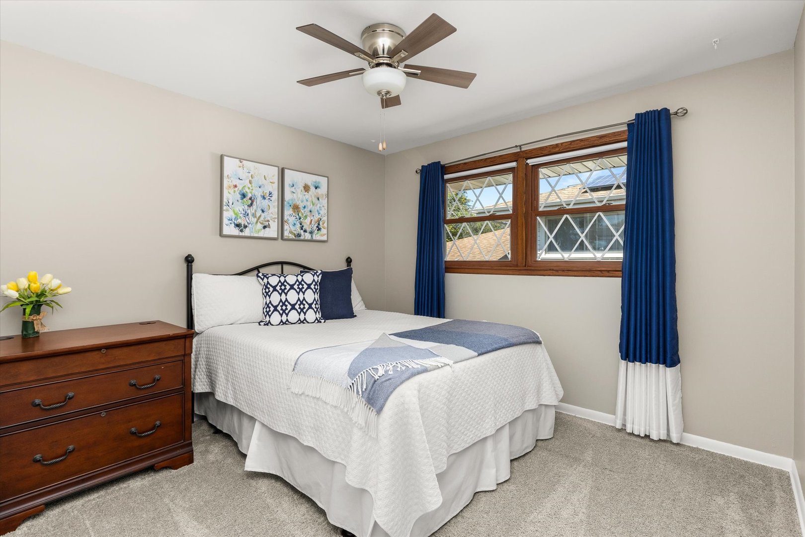 Welcome to this beautifully remodeled 3-bedroom, 2-bath tri-level in Lemont with 1,600 sq. ft. of modern living space. Step inside to a sunlight-filled living room that opens to the fully remodeled kitchen, where a striking wood beam separates the two spaces. The eat-in kitchen features 42″ soft-close cabinets, quartz countertops, marble backsplash, GE Cafe microwave, gas range, a large island with seating, and a deep stainless sink with spot-free faucet. The Pella sliding glass doors leads to the concrete back patio and meticulously maintained back yard. Upstairs, the spacious primary bedroom offers a custom feature wall, ceiling fan, new blackout blinds, and a custom closet organizer. Two additional bedrooms and a fully updated hall bath with new vanity, quartz/marble top, tub/shower, tile flooring, and fixtures complete the second level. The lower level boasts English windows for natural light, a large family room with an extra area great a home office or hobby area, and a second remodeled bath with a glass shower, new vanity, tile flooring, and fixtures. The oversized utility room includes a utility sink and washer/dryer hookups with direct access to the 2.5 car garage with new isulated garage door and 16ft workbench with storage. Large dry concrete crawl space for additional storage. Major updates within the last 1-4 years include: new 30-year architectural roof, oversized gutters and downspouts, insulated garage door, high-efficiency HVAC, water heater, sump pump, Nest thermostat, attic insulation, high efficancy Quiet Cool whole-house fan 3 speeds with timmer. Ductwork has been professionally cleaned and sanitized. Exterior features include new Pella front door, cedar shutters, coach lights, freshly landscaped with rock bed and brick edging, a large concrete patio with gas line for grill, private yard, and quiet neighborhood setting. Located near grocery stores, coffee shops, Downtown Lemont, parks, dog parks, walking paths, and the Lemont Park District. Part of the award-winning Blue Ribbon School District with easy access to I-55, I-355, and the Metra station.This home is a rare find with modern updates, prime location, and true pride of ownership. Truly nothing to do but move in! Don’t miss your chance to tour this beautiful property.