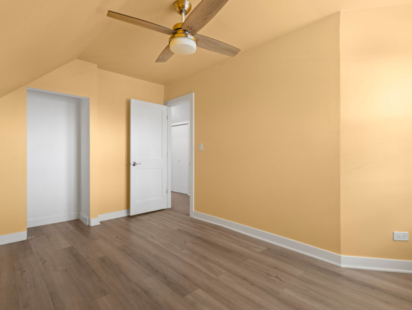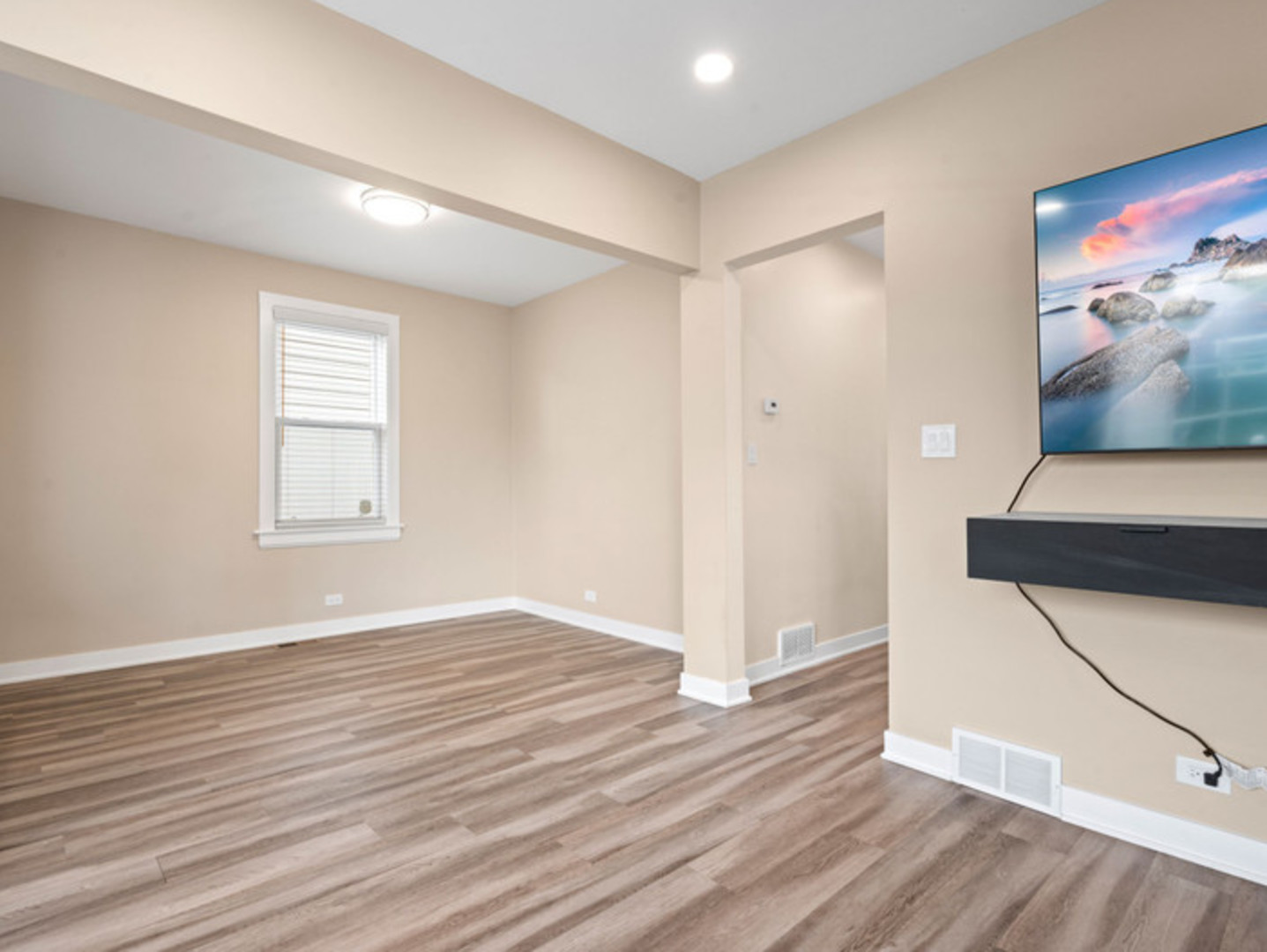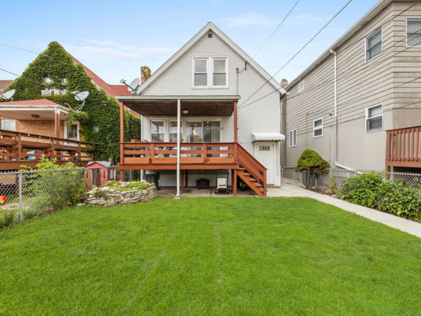Short Sale Opportunity – Sold As Is. Beautifully renovated 3-bedroom, 2-bath home (updated 2023) offering exceptional value. Features include wide-plank flooring, designer lighting, new trim, and custom interior doors. The gourmet kitchen showcases quartz countertops, waterfall island, custom cabinetry, and black stainless-steel appliances. Open-concept living and dining area leads to a covered deck and fenced yard. Main-level bedroom with adjacent full bath-ideal for guests or office. Second level offers two bedrooms, including a spacious primary suite with generous closets and a spa-style bath. Full basement with laundry and rough-in for future bath offers great expansion potential. Additional highlights include a new staircase, updated walkway, and newer 2-car garage with 8-ft door. Property is being sold As Is. Short sale – lender approval required.