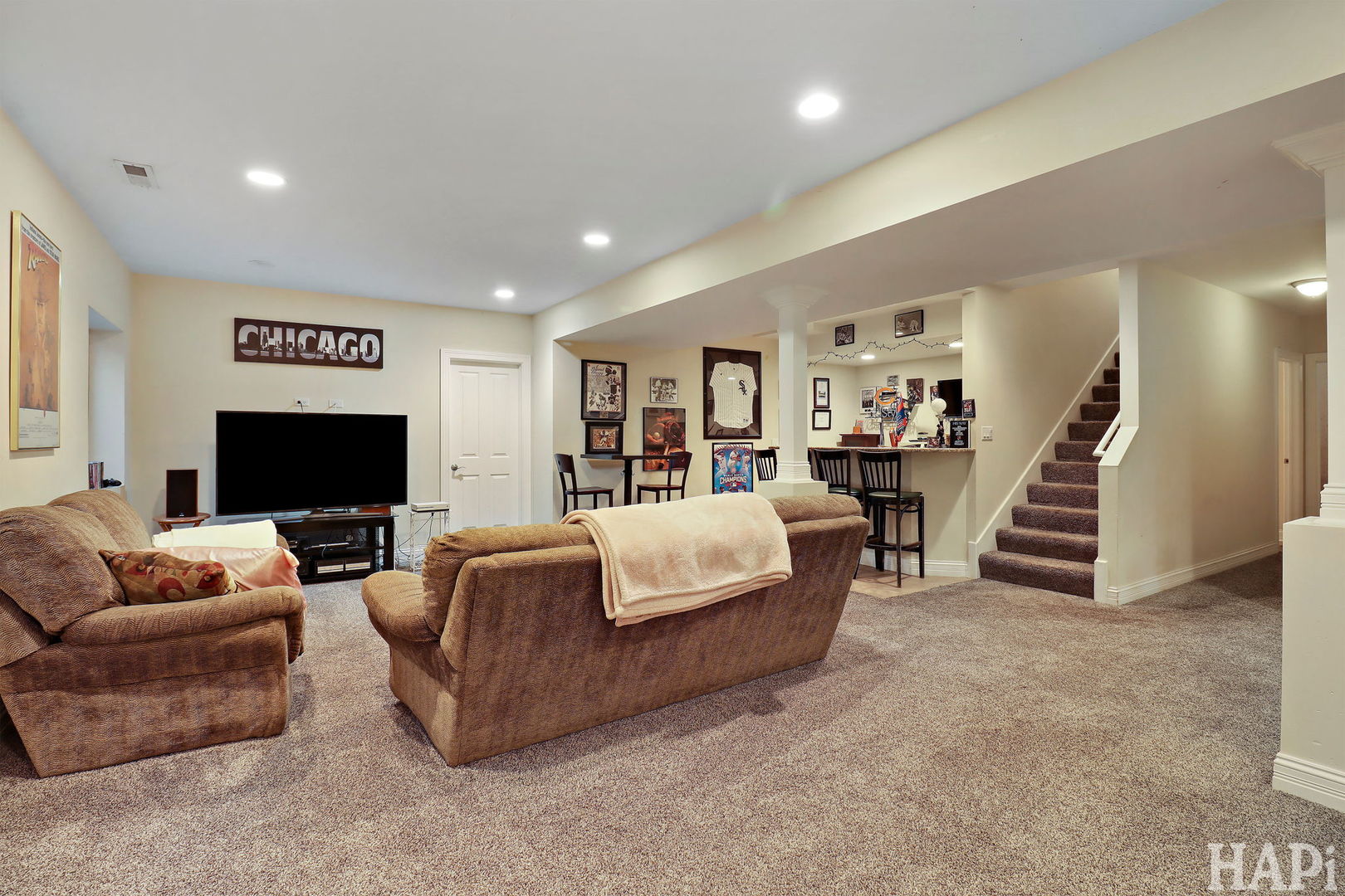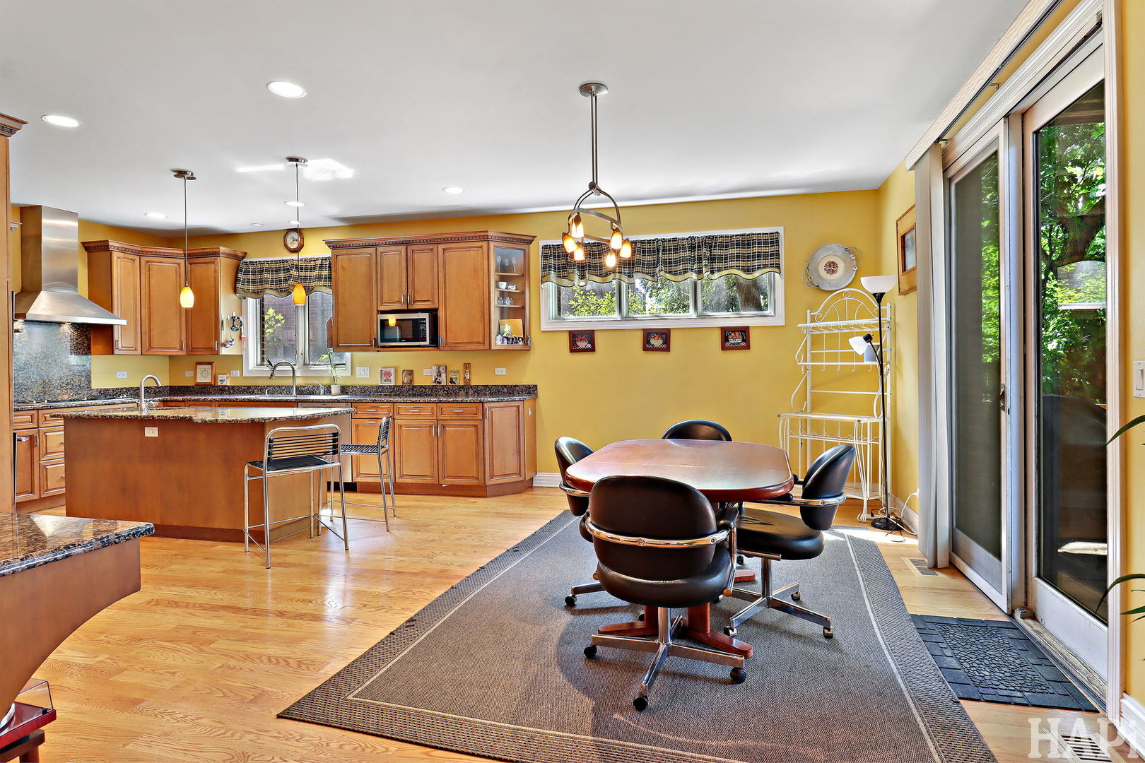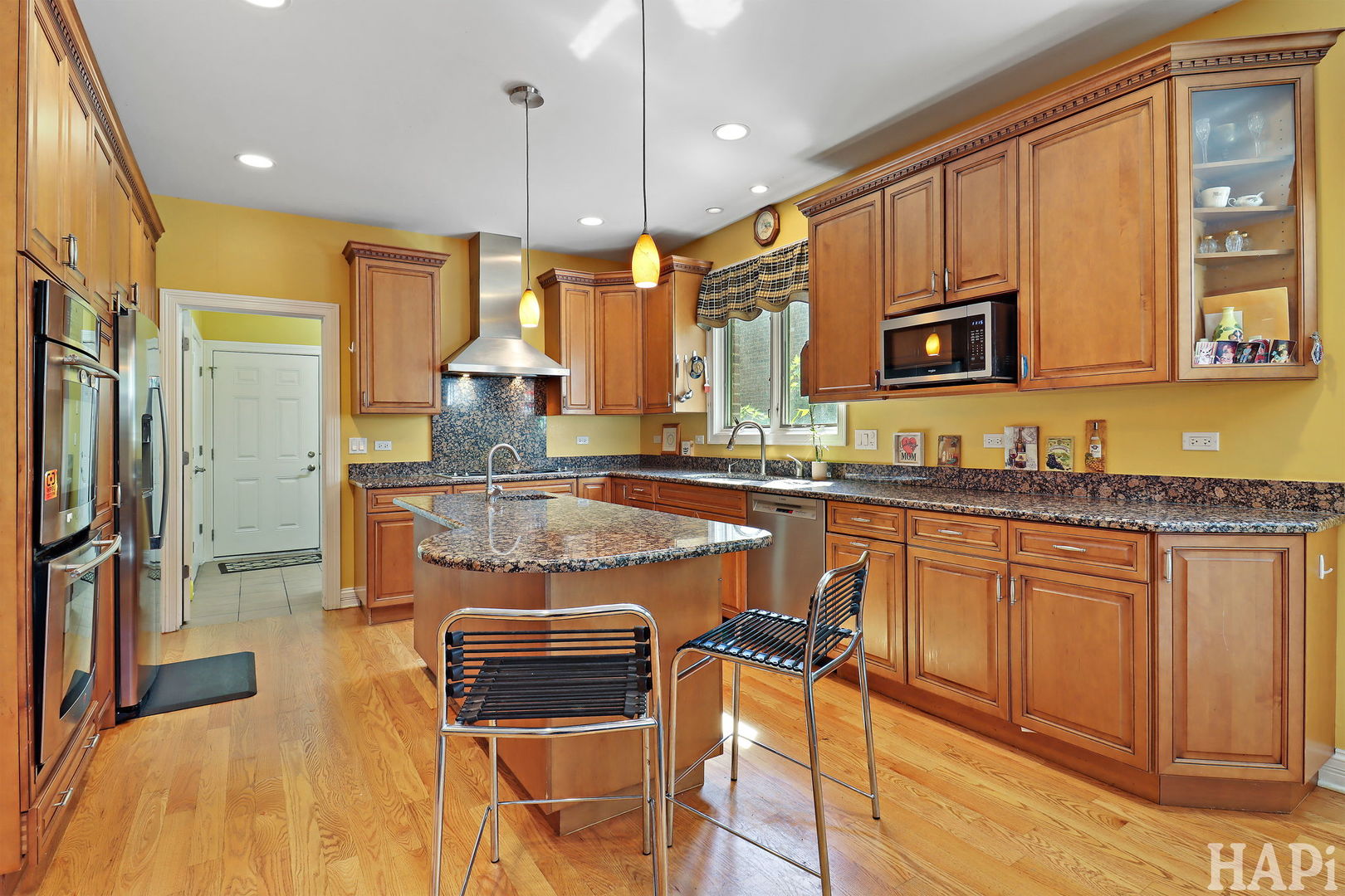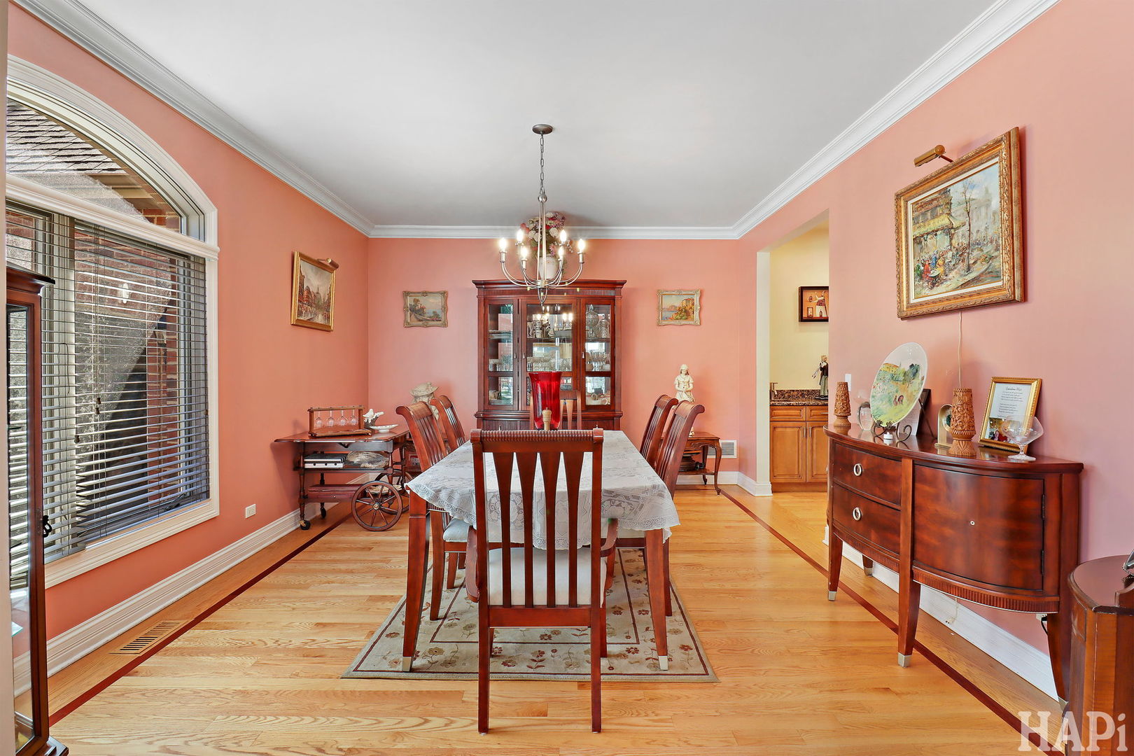 Stunning Six-Bedroom Brick Home with Luxury Finishes & Entertainer’s Basement. Welcome to this gorgeous brick residence offering six spacious bedrooms, five full bathrooms, and an abundance of living space designed for both everyday comfort and elegant entertaining. Step inside the impressive two-story foyer with soaring 18-foot ceilings and entryway closet, setting the tone for the home’s grand design. The formal dining room features crown molding, inlaid hardwood floors, and a sophisticated feel perfect for hosting gatherings. A custom butler’s pantry with wet bar and refrigerator connects seamlessly to the chef’s kitchen. The expansive kitchen boasts a large island with seating, a secondary prep sink, all stainless-steel appliances including a range hood, and an adjoining dining area with sliding doors opening to the deck and backyard. The open-concept layout flows effortlessly into the family room, where 18-foot cathedral ceilings and a dramatic stone fireplace create the ultimate gathering space. Additional main-floor highlights include a formal living room with recessed lighting and detailed trim, a versatile first-floor bedroom (or office) with adjacent full bath, and a spacious laundry room featuring a granite folding counter, utility sink, storage cabinets, and exterior access. A three-car attached garage with two separate doors provides plenty of room for vehicles and storage Upstairs, the luxurious primary suite is a true retreat with two walk-in closets, a private balcony overlooking the yard, custom ceiling details, and a spa-like bath featuring dual vanities, a soaking tub, a large walk-in shower with seating, rainfall showerhead and body sprays, plus a separate water closet. The second bedroom offers en suite comfort with hardwood floors, a tray ceiling, and spa tub. The third bedroom includes its own balcony, walk-in closet, and direct hall bath access, while the fourth bedroom features a built-in sink and kitchenette-ideal as a private retreat. The full finished basement is an entertainer’s dream with a large recreation room, wet bar with granite counters and refrigerator, space for billiards or ping-pong, a sixth bedroom or office, full bath, and a massive 32′ x 17′ storage/utility room. This home combines craftsmanship, functionality, and luxury, offering the perfect setting for family living and memorable entertaining. close proximity to Henking school, Crowley Park and close to downtown Glenview, Metra, library, shopping & dining. A home warranty will be provided at closing.