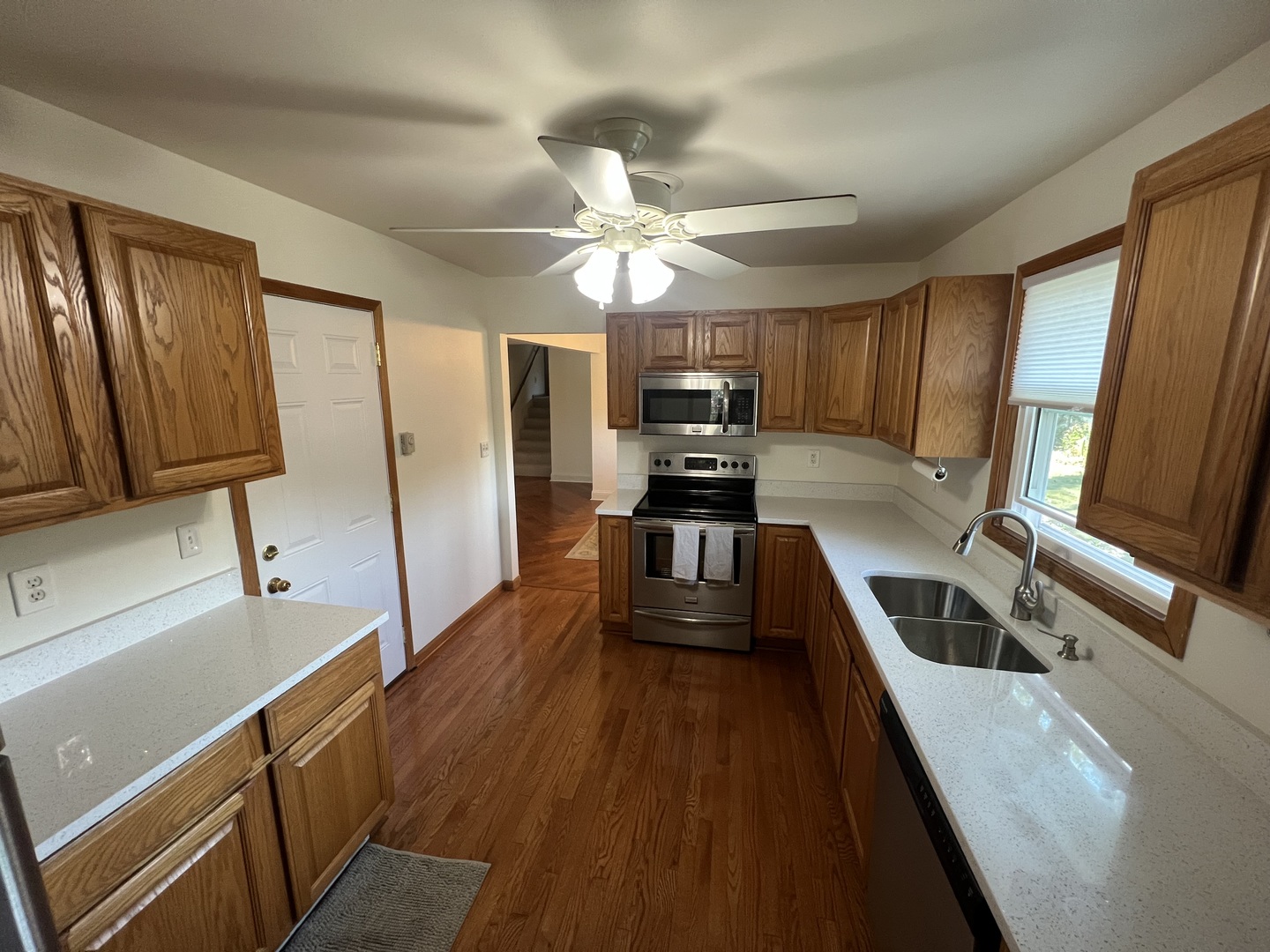 Glenwood Manor tri level with 3 bedrooms and lots of updates. Kitchen has all electric stainless steel appliances & BRAND NEW COUNTERTOPS! Living Room and Dining Room combo has beautiful herringbone pattern hardwood floors. Three bedrooms and full bath on second level. Lower level has family room that could be used for your needs, laundry room w/washer, dryer, sink and cabinets and storage room. The possibility of a full bath could be a realty in the storage room. Outside enjoy all of the flower gardens from your back patio. Storage shed. Home has all new windows in 2025. Lower level has all new carpet. TV Stays in upstairs bedroom…Cabinet in upstairs bedroom stays as well. Roof is 5 years old. Home is all electric, no gas. Five Minute walk to elementary school. Paver Driveway. PLEASE NO SHOES ON IN THE HOUSE.