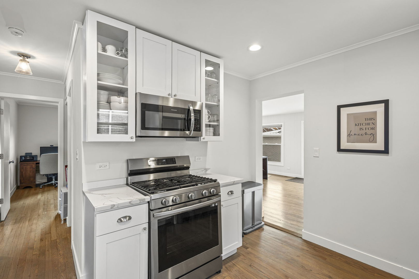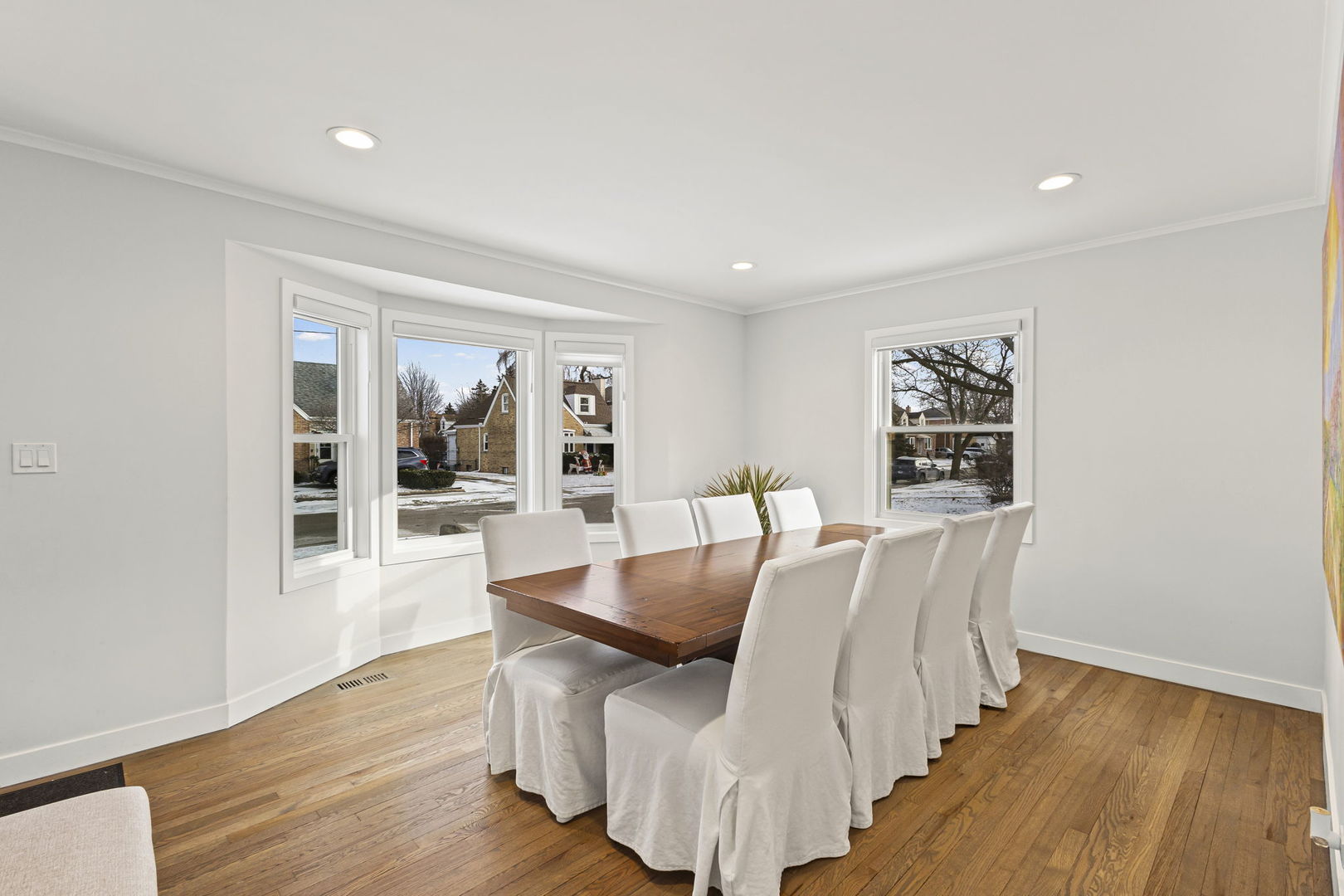 Stunning Cape Cod in Norwood Park, set on an oversized corner lot and finished with exceptional attention to detail throughout. The main level features a bright and inviting living room, formal dining room, first-floor bedroom, full bath, and a beautifully updated kitchen with stainless steel appliances, quartz countertops, and a large peninsula. A cozy family room with fireplace and breakfast nook completes the space. Upstairs offers two generously sized bedrooms and a powder room. The elegantly finished lower level includes a second family room, fourth bedroom, full bath, and dry bar. Enjoy a private backyard ideal for entertaining, along with a 2+ car brick garage. Located in a highly desirable school district with easy access to expressways, public transportation, dining, shopping, Olympia, Norwood, and Oriole Parks.