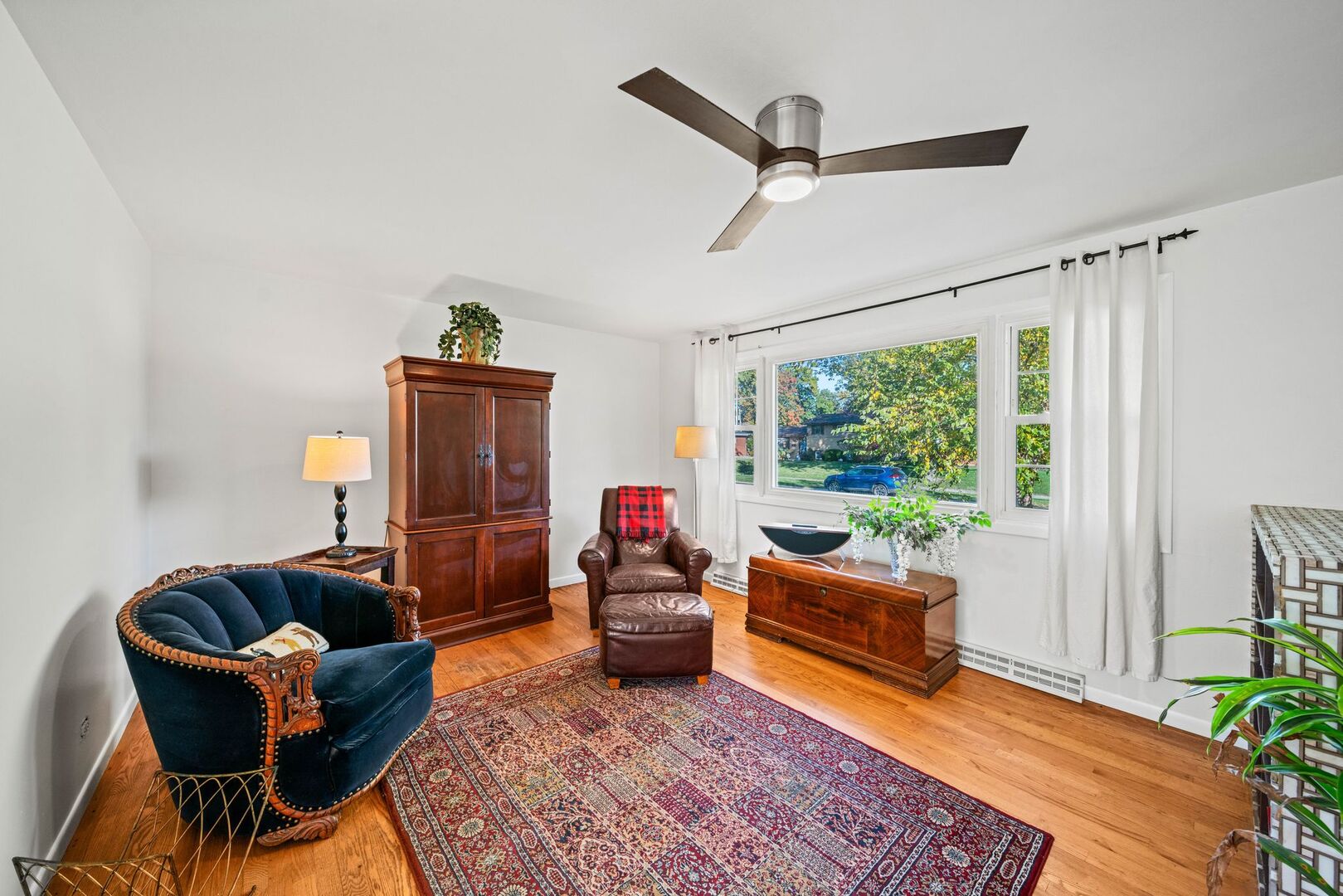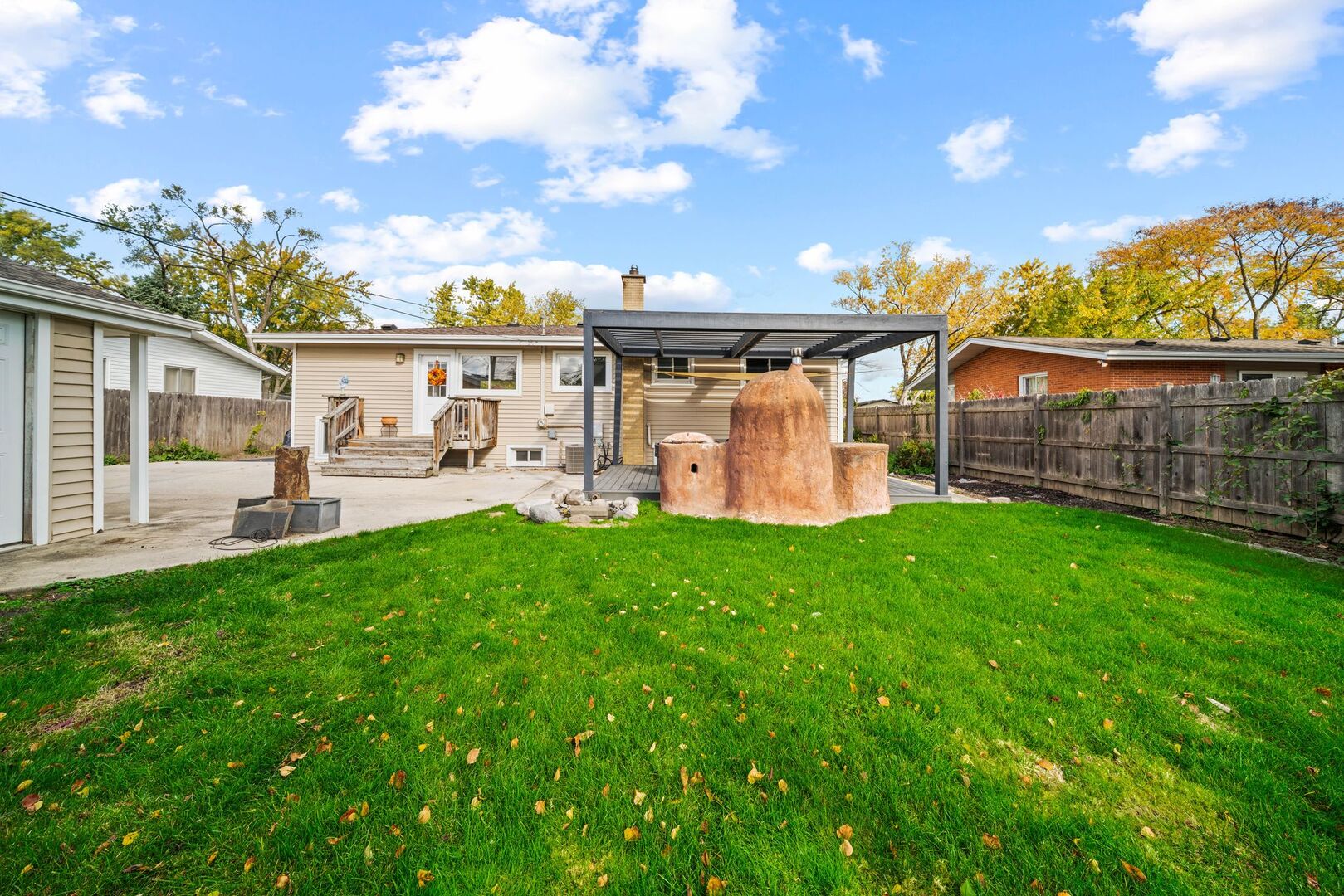 Welcome home to this absolute gem of a 4+1 bedroom, 2.5-bath ranch in one of Mount Prospect’s most desirable neighborhoods! The inviting main level features hardwood floors throughout the living room and bedrooms. The open-concept layout seamlessly connects the living, dining, and kitchen areas, creating a bright and spacious flow perfect for everyday living and effortless entertaining. Enjoy a brand-new Whirlpool appliance suite in the kitchen and fully remodeled bathrooms showcasing premium Kohler fixtures and designer finishes. Ceiling fans in all bedrooms provide comfort year-round. The finished basement expands your living space with a large recreation room, full bath, fifth bedroom or office, laundry area, and generous storage room. A built-in bar with gorgeous soapstone counters is ready to be completed with a sink, beverage fridge, and beer tap or keg station. Step outside to amazing curb appeal and a backyard made for gatherings- complete with an expansive, weather-resistant Trex deck with pergola, alongside an incredible clay oven & grill. Additional updates include newer windows and roof (approx. 10 years), lots of fresh interior paint, meticulously maintained mechanicals, newer washer and dryer, and a recently resurfaced side drive leading to a 2-car garage. All this in a prime Mount Prospect location close to top-rated schools, parks, Metra, shopping, dining, and major thoroughfares. This one truly has it all!