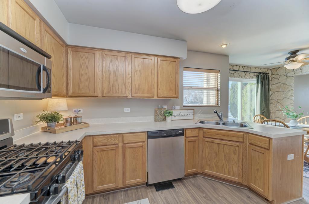 Ready for new owners! This home offers a neutral palette throughout and is primed for your finishing touches. The entire home has been PAINTED in 2025. NEW CARPET and LUXURY VINYL flooring were installed on the entire first floor in 2025! The kitchen features oak cabinetry, laminate counters, a spacious pantry closet, stainless steel appliances, eat-in table area, and SLIDING GLASS DOOR (2017) to the yard. The family room showcases a volume ceiling and an ELECTRIC FIREPLACE with STONE surround. A living room, dining room, and powder room complete the first floor. Upstairs, the primary suite includes a walk-in closet and private bath. The secondary bedrooms offer generous closet space and ceiling fans with lights. Both upstairs baths feature oak cabinetry and neutral finishes. The basement provides an excellent opportunity for future living space and includes a washer, dryer, and freezer. A concrete crawl space offers additional storage. Additional updates include: GARAGE DOOR (Dec 2025), SUMP PUMP (2025), A/C CONDENSER (June 2017), FURNACE (2015). Home Warranty Of America- Diamond Plan being offered for peace of mind.