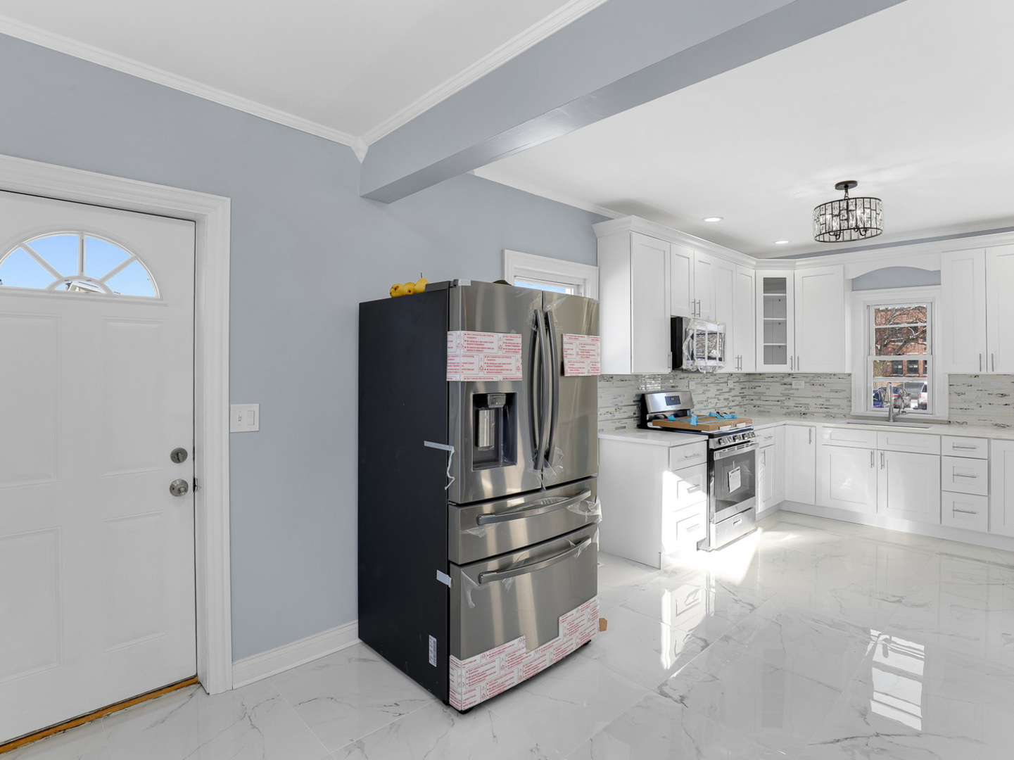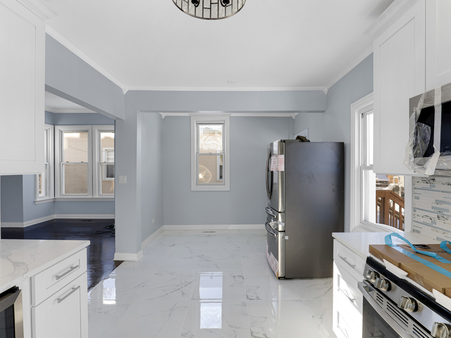 Beautiful two-story single-family home with a rare side drive in Maywood, offering outstanding curb appeal and a full list of modern upgrades. This home blends quality, comfort, and style-an excellent fit for buyers searching for a move-in-ready property near Chicago and a strong example of premium marketing for future sellers. The main level welcomes you with a bright living and dining area that opens into a **brand-new designer kitchen** featuring quartz countertops, stainless steel appliances, a dishwasher, and a wine-cooler refrigerator. Every detail is thoughtfully chosen to provide elegance, function, and durability. Throughout the entire home, **beautiful hardwood floors unify the space with their warm tone, clean finish, and natural shine**. They’re easy to maintain, complement any decor style, and offer long-lasting durability-an ideal upgrade for the next homeowner. The second floor includes three comfortable bedrooms, a nursery, and a full bathroom, providing flexibility for families, guests, or work-from-home needs. The partially finished basement extends your living space, perfect for a recreation room, home office, gym, or additional storage. This property features significant new improvements: **new electrical, new plumbing, new windows, new doors, a new roof, and new central air**, providing peace of mind for years ahead. The exterior is equally impressive with a **brand-new concrete driveway** that accommodates **up to four cars**-a valuable convenience not often found in the area. The **extra-large backyard patio** is ideal for family gatherings, celebrations, summer grilling, or creating your own outdoor retreat. Located near parks, schools, shopping, public transportation, and key commuter routes to Chicago.