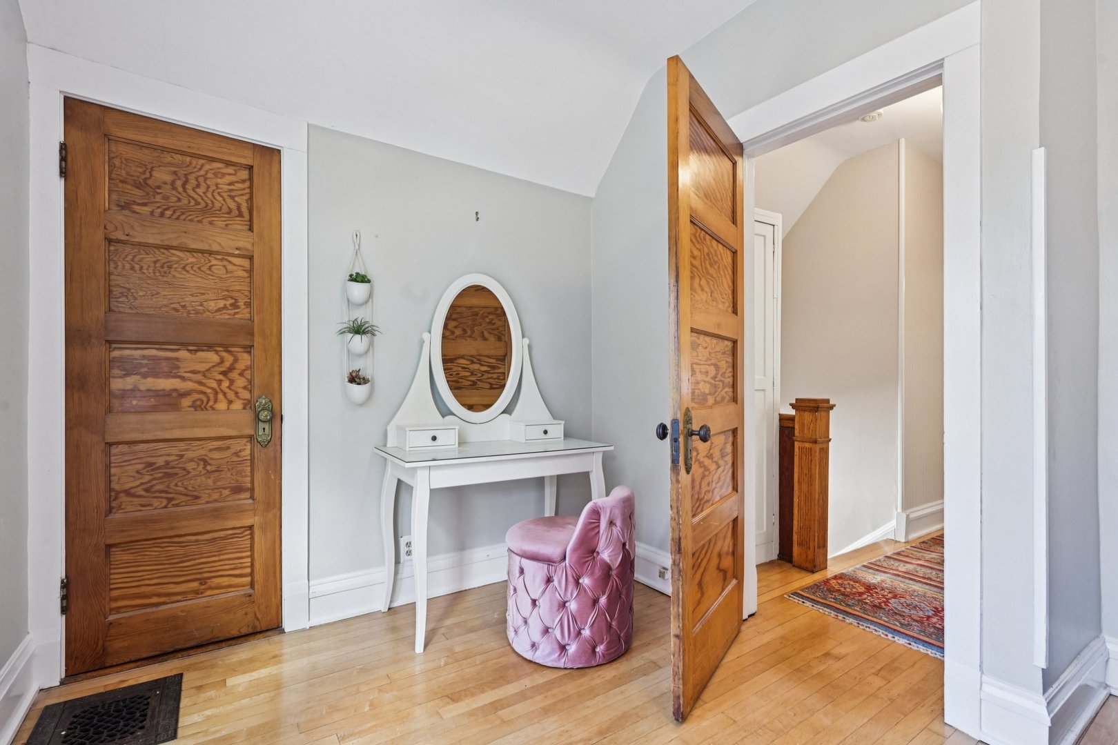 Vintage Charm Meets Modern Comfort in the Arts District! Welcome home to this beautifully updated vintage gem that perfectly blends classic character with today’s modern conveniences. The welcoming enclosed front porch opens to a lovely foyer with gleaming hardwood floors, a gorgeous original staircase, and pocket door that showcase timeless craftsmanship. The formal living room is flooded with natural light – perfect for gatherings or quiet evenings in. The updated kitchen features granite countertops and stainless appliances and flows into a beautiful dining room featuring built in cabinetry, creating the ideal layout for everyday living and entertaining. A main floor full bath adjacent to the family room offers great flexibility – use this space as a guest suite, home office, or playroom. Upstairs, you’ll find three spacious bedrooms, including a huge primary bedroom with room to add a future ensuite bath. The finished basement extends your living space with a large family room, office area, laundry room, and ample storage – plus flood control for peace of mind. Enjoy central air, replacement windows throughout, generous closets and a 2+ car garage with additional parking space. This home delivers the best of both worlds – vintage character, modern updates, and flexible spaces that fit your lifestyle. * Full list of improvements and features available*
