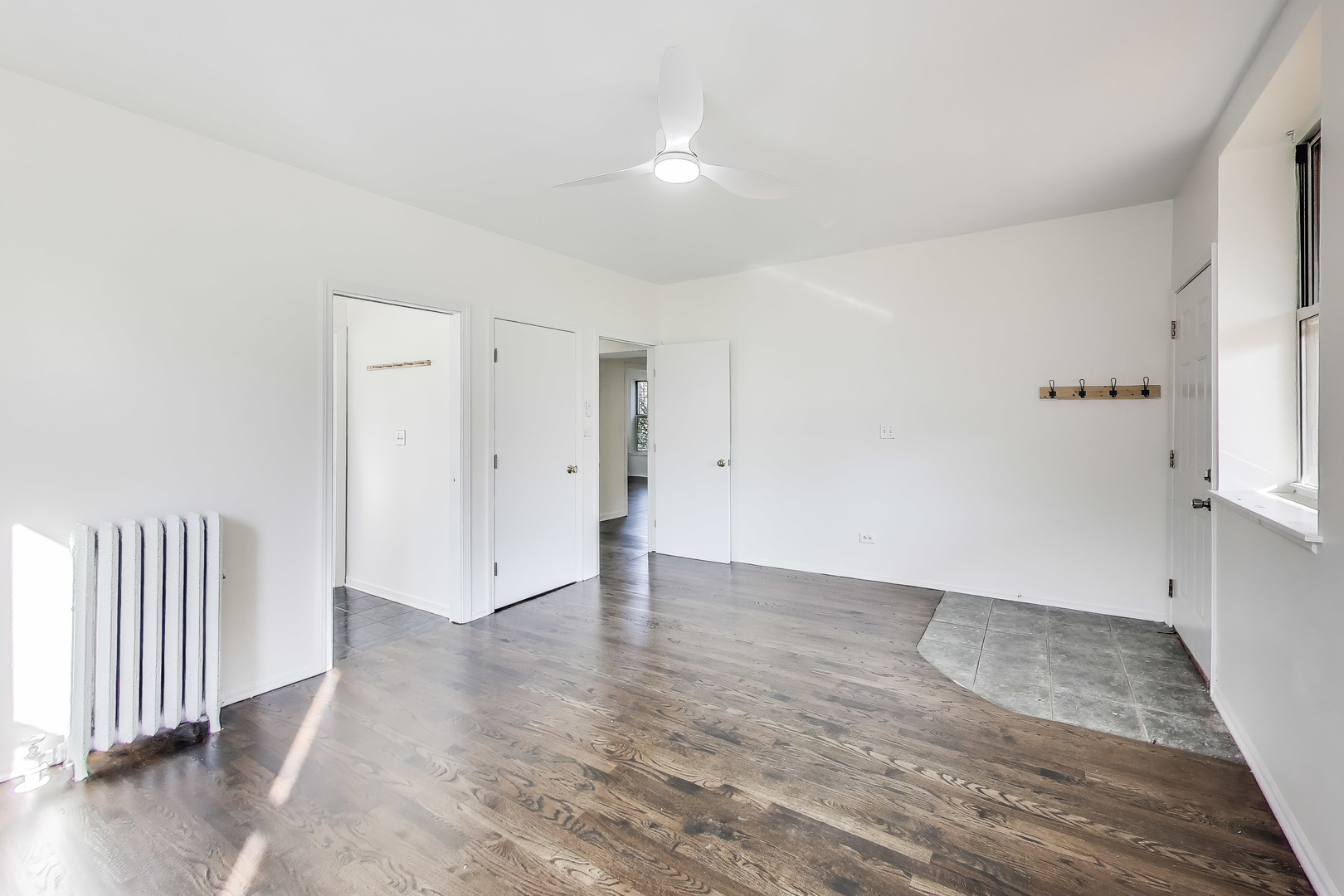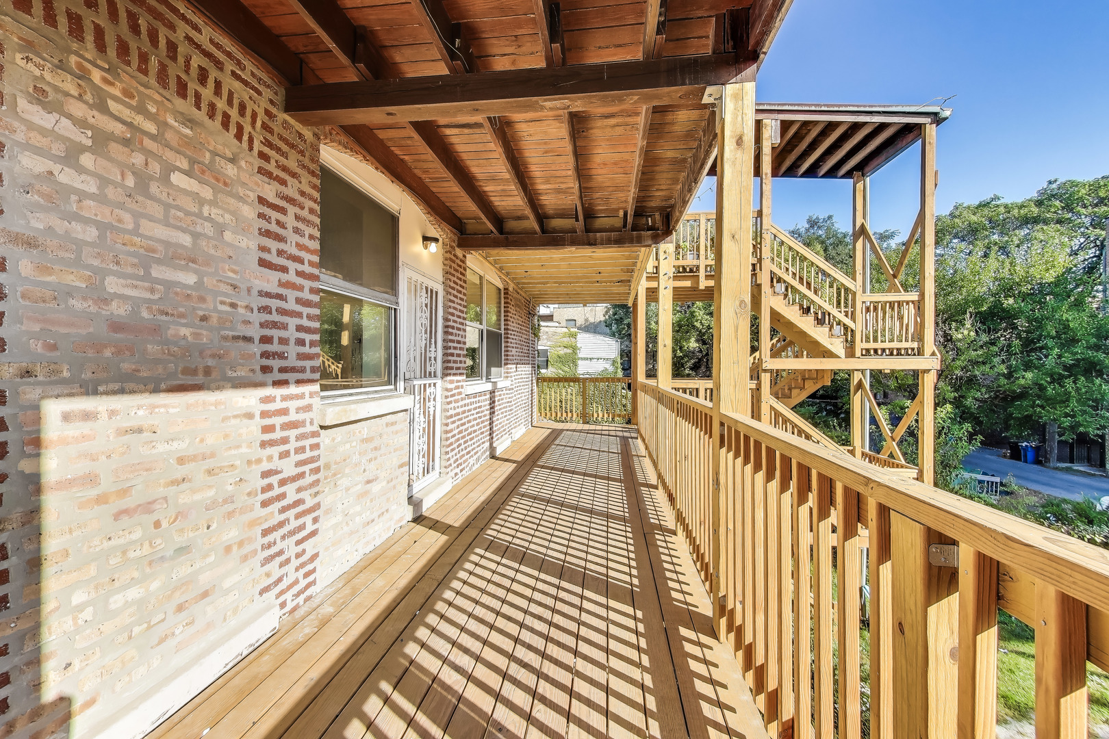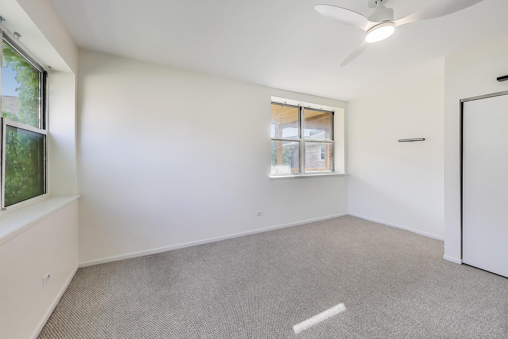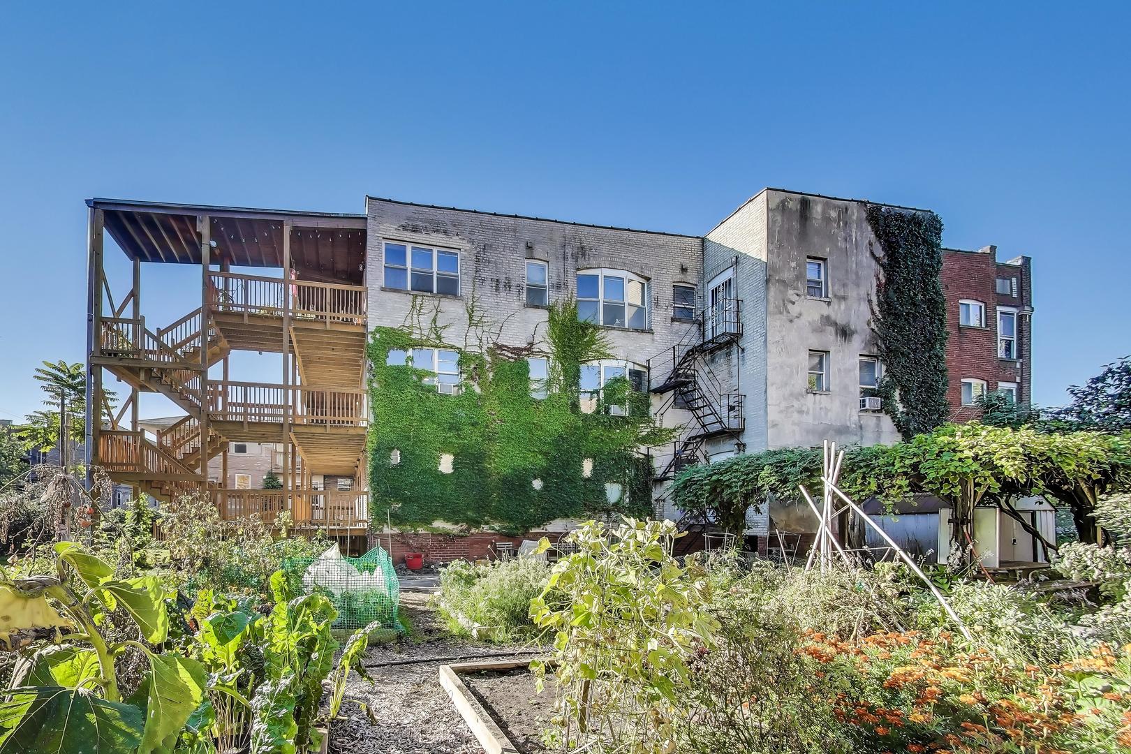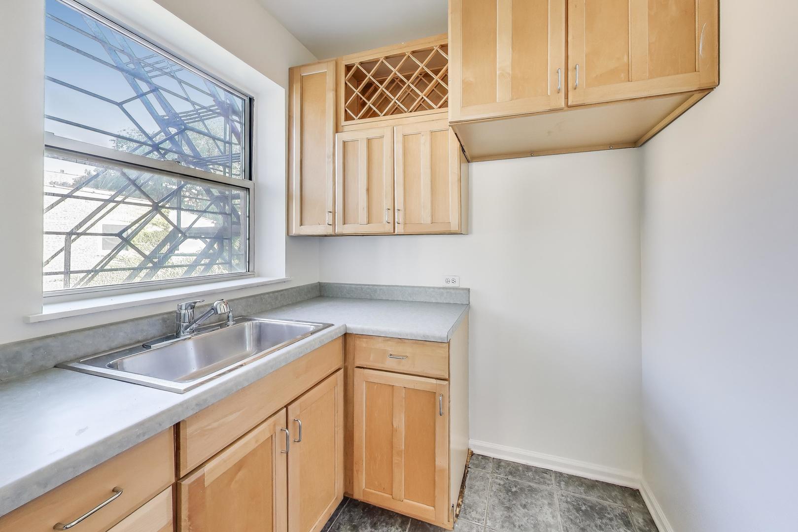 University of Chicago Campus. Bright and roomy with thoughtful details throughout, this 4-bedroom, 2-bath home offers comfortable living in a well-maintained building. The open kitchen includes 42″ wood cabinets with crown molding, ample cabinet and counter space, AND a butler’s pantry for easy prepping and additional storage space. The kitchen connects to the dining area with chandelier, large living room and a sun-lit sunroom. There are four large bedrooms that can easily accommodate large furniture, including a king-sized bed. Step out onto your rear deck, perfect for relaxing or entertaining. An off-street parking spot is included, and there’s a community garden right next door. Convenient access to UofC, public transit, and local shopping. Strong, well-run association.