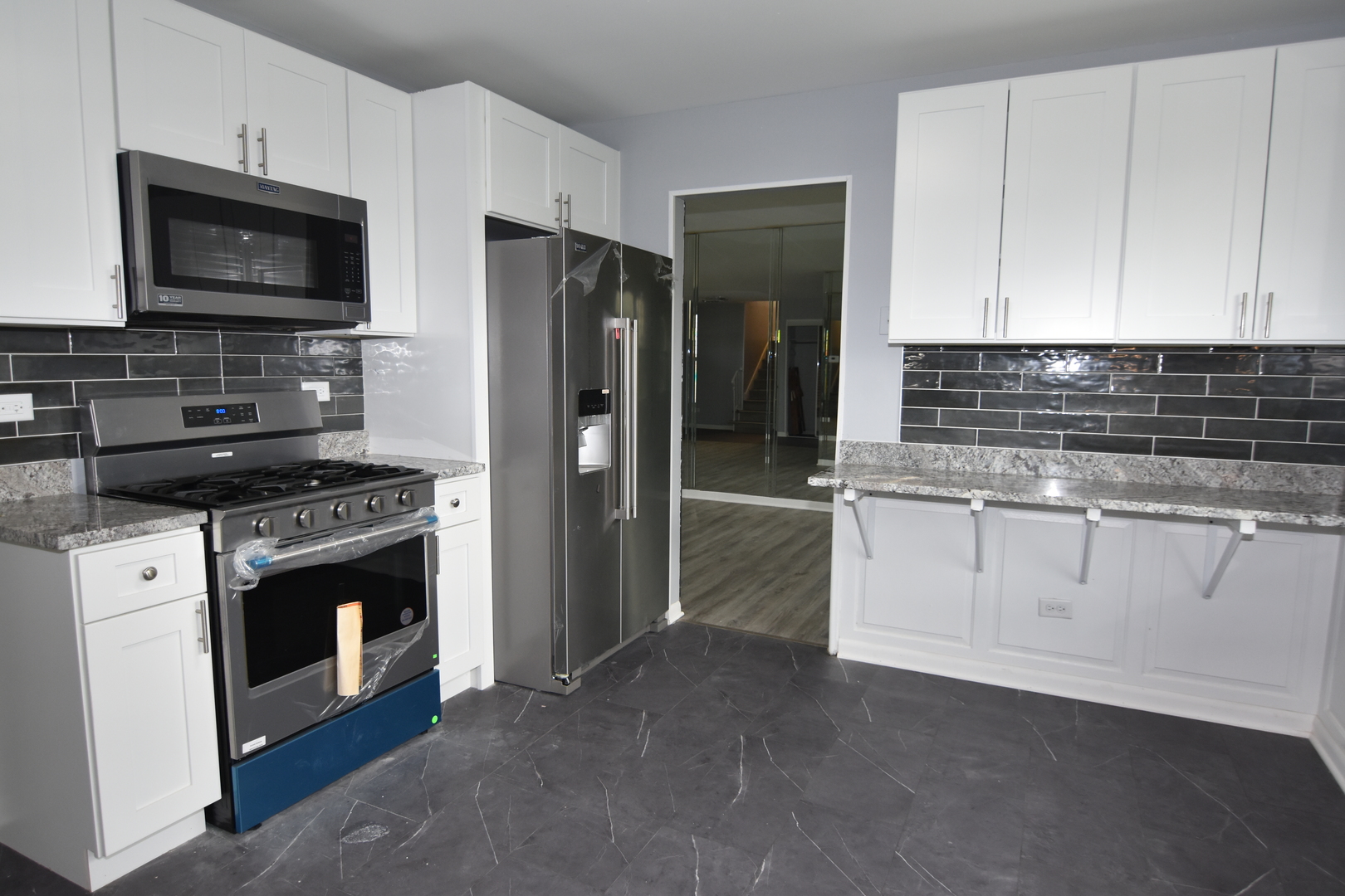 2500 Sq.ft. Split Level (4) Bedrooms (3) Bathrooms with maintenance free exterior, including a NEW roof – Updated kitchen with NEW custom slow close cabinets and NEW granite counter tops – All NEW vinyl flooring floor thru out the front entry foyer and kitchen – All NEW flooring thru out the entire house- Living room with brick fireplace, Formal dining rm off kitchen with accented mirrors – Huge NEW freshly carpeted recreation room in basement with all NEW full bathroom added with NEW ceramic flooring & enclosure – Bedrooms with NEW carpeting , ceiling fans – Two bedrooms with walk in closets – All NEW (6) panel doors and Bi-fold closet doors in bedrooms too NEW double entry doors- NEW hot water heater – NEW central air to be installed prior to closing – Entire home freshly painted – Fast immediate possession available – FHA VA all Welcome