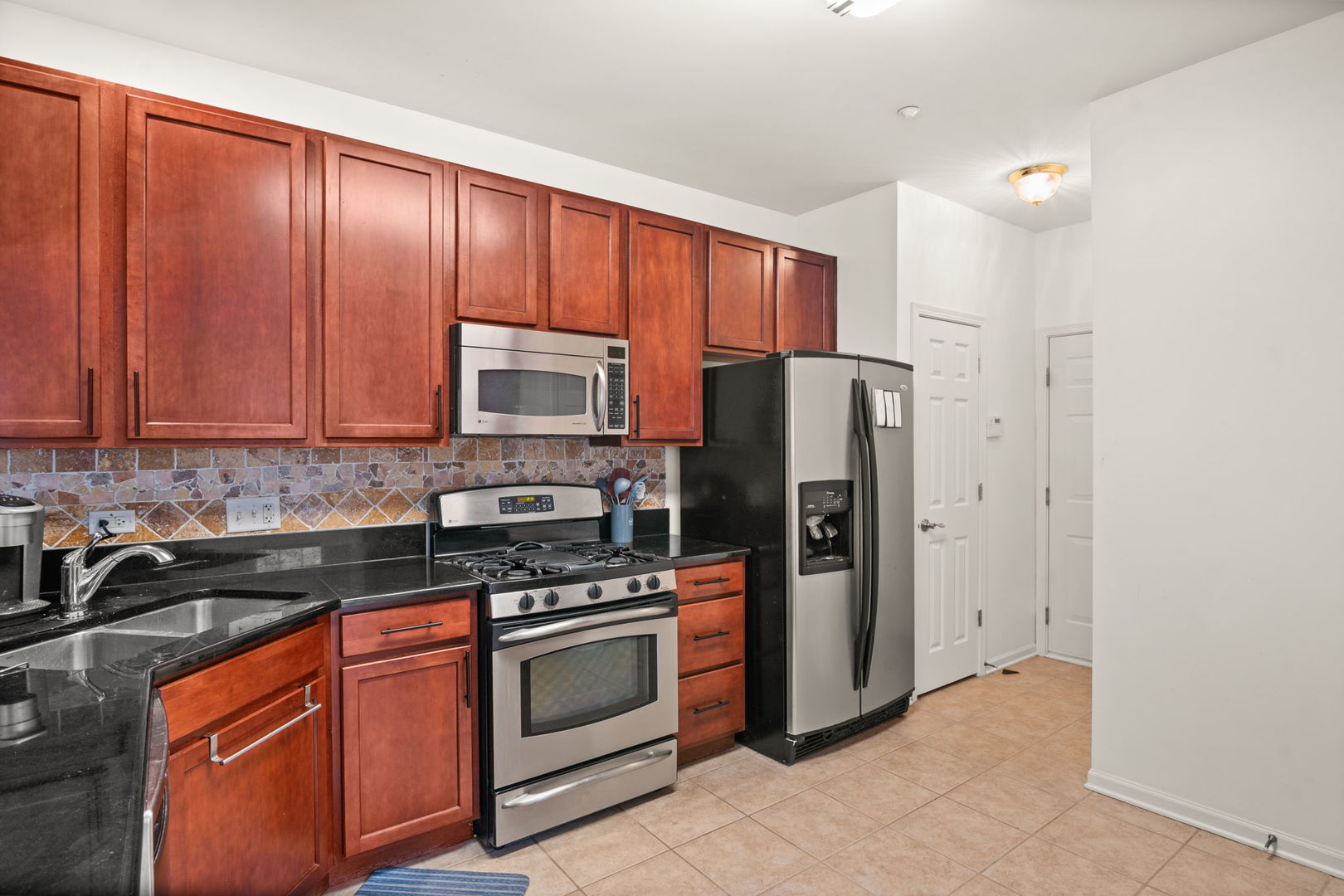 This bright and clean end unit is the Penrose model, the largest design in Canterbury Fields. Upon entering through the impressive two-story foyer, you are immediately greeted by a spacious and light-filled open area. The home features hardwood floors throughout and a beautifully updated kitchen, complete with 42″ custom cherrywood cabinets, granite countertops, stainless steel appliances, a breakfast bar, and two pantry closets. Adjacent to the kitchen is a separate dining area that opens to a private, maintenance-free TREX deck. Stepping onto the deck, you’ll discover vibrant plantings from the previous owner, including rose bushes, hydrangeas, and tulips. The home is equipped with custom automated “smart” shades and a home system throughout. The primary bedroom features high-volume ceilings, a walk-in closet, and an en suite bath with dual vanities, an oversized soaking tub, and a separate shower. Additional features include a two-story living room, a second-floor loft area that can easily be converted into a third bedroom, a second-floor laundry room, and a partially finished full basement with ample storage space. The extended two-car garage offers even more storage. Easy Walk to school and park, and close to major transportation routes