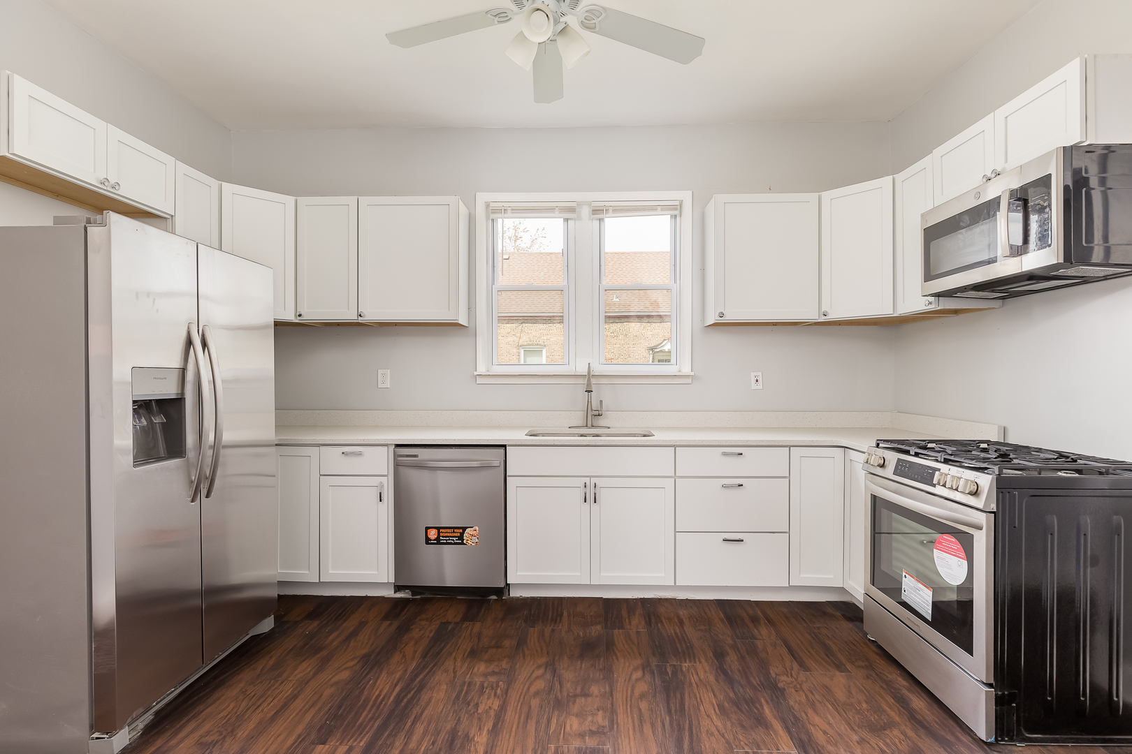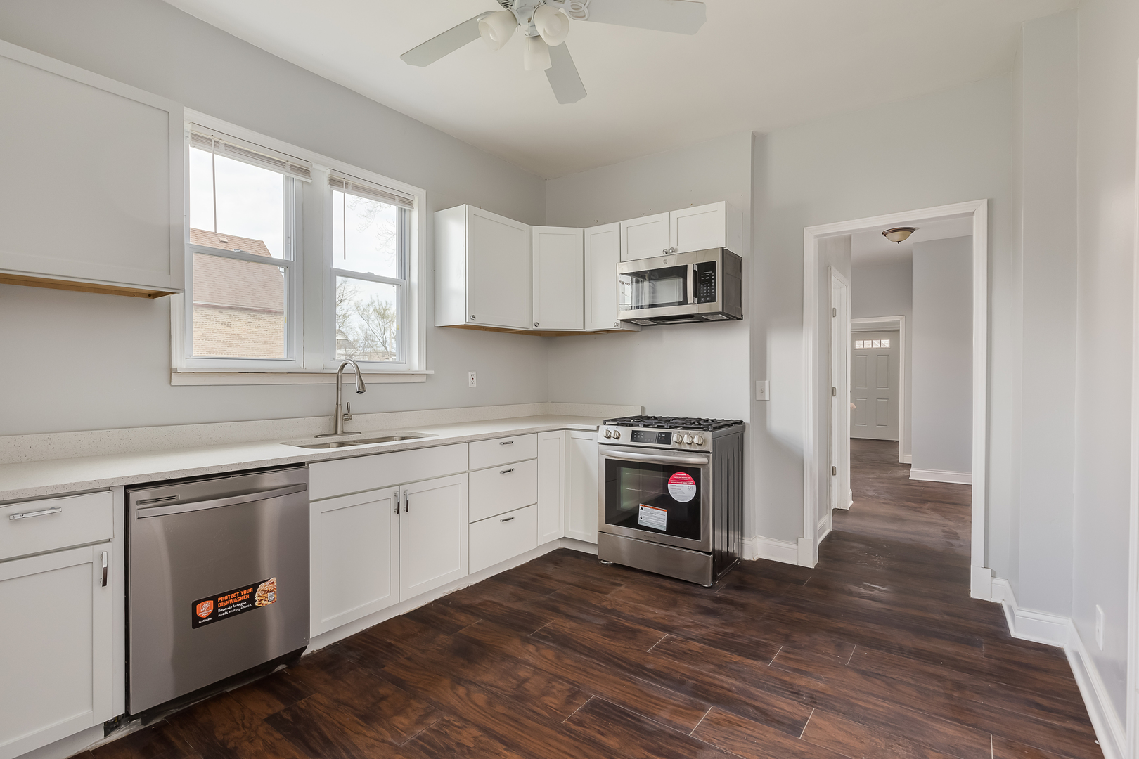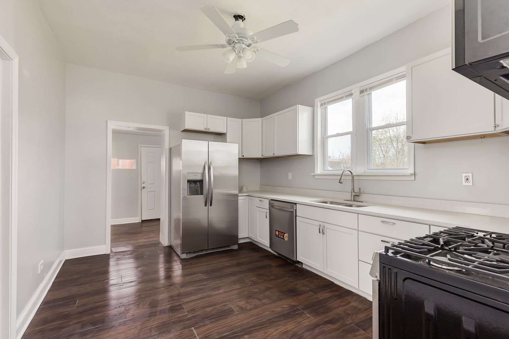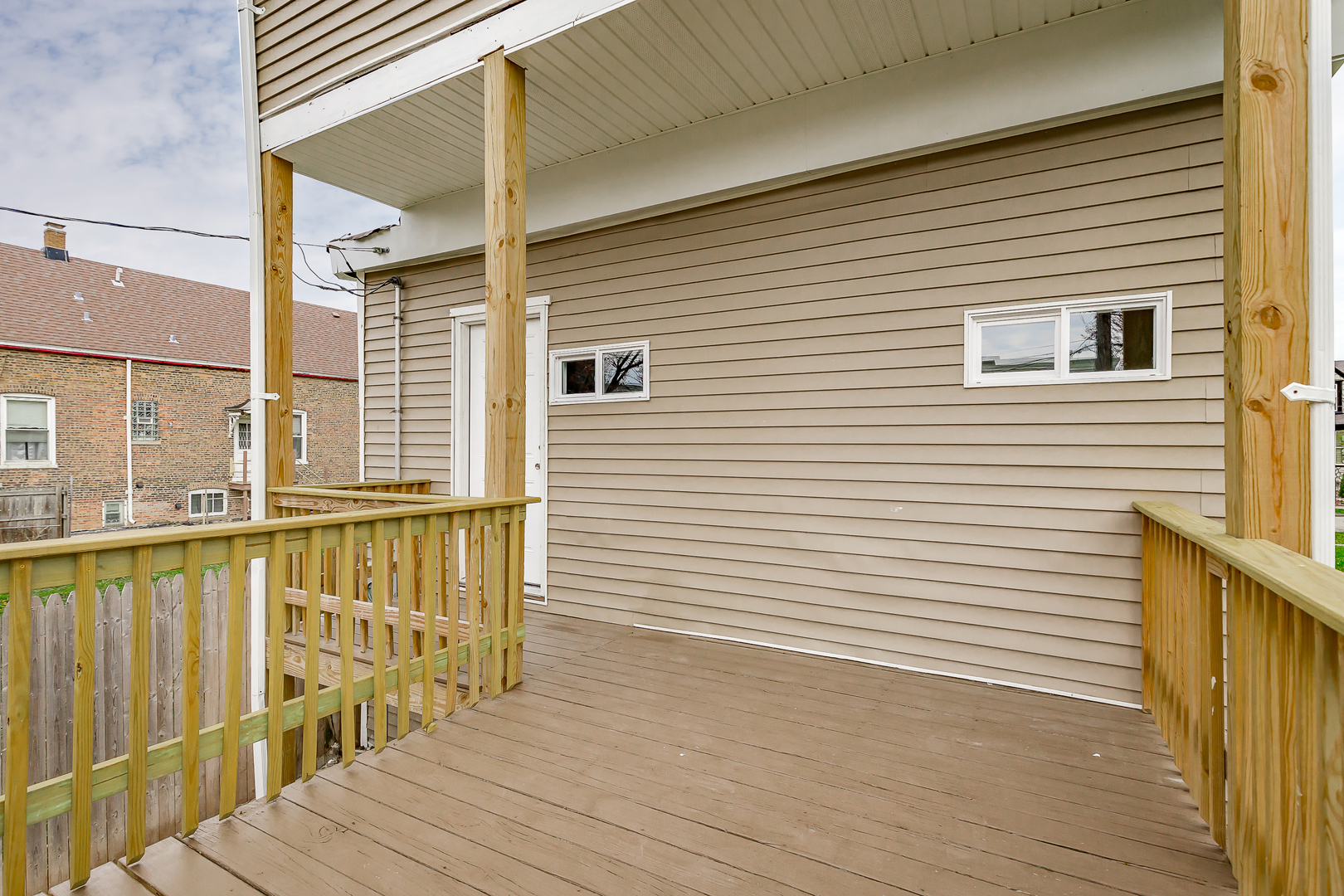 Welcome to 6132 S Justine St, a stunning 2025 fully rehabbed gem in vibrant Englewood! This modern 7-bedroom, 2-bath home boasts a brand-new interior with luxury vinyl plank flooring throughout the main level and plush new carpeting in the upstairs bedrooms. The gourmet kitchen shines with white shaker cabinets, sleek quartz countertops, and a stylish backsplash. Both bathrooms are completely updated with new tile, cabinets, vanities, and tubs. Enjoy fresh paint, all-new plumbing, and updated electrical systems for worry-free living. Outside, relax on new front and back decks, park with ease on the new 2-car parking pad, and appreciate the privacy of a new fence. With 3 bedrooms on the first floor and 4 upstairs, this home blends contemporary comfort with spacious functionality. It could also easily be used as two separate living spaces-perfect for a large or multigenerational family. Move-in ready and meticulously crafted-don’t miss this Englewood masterpiece! This property also has 2 gas meters, 2 electric meters, and can easily be converted or used as a multi unit.