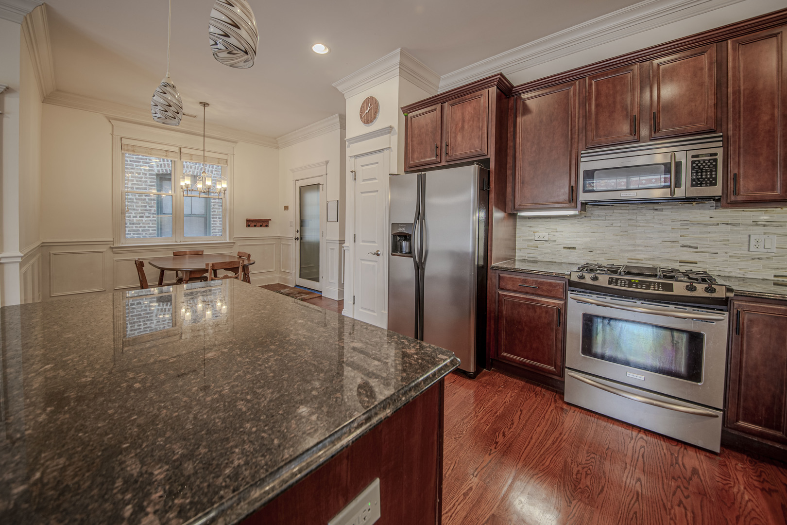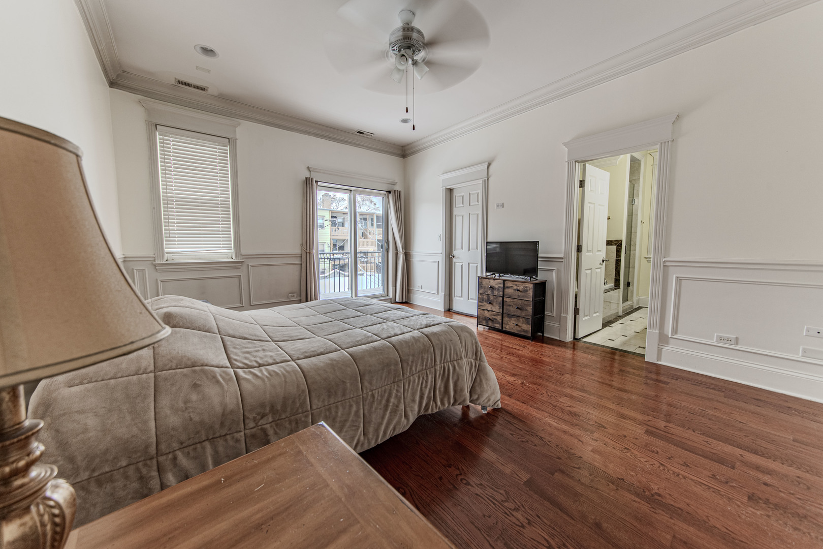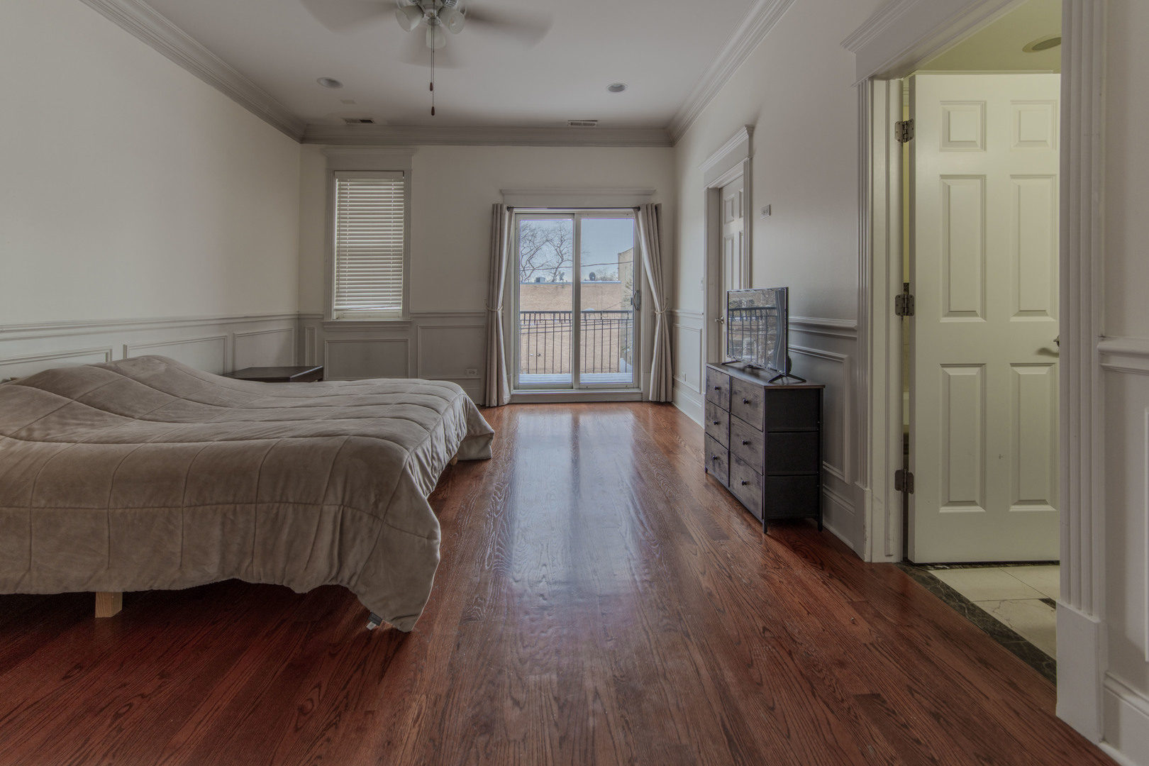 Elegant second floor condo with luxury appointments/finishes. Crown moldings and wainscotting throughout accent the nine foot ceilings. Master suite with exterior balcony, walk in closet and luxury spa like bath featuring a Jacuzzi Tub with Jets, a stand up shower with multiple shower heads for full body action and dual sinks. Off the hallway is a another full bath, laundry closet, utility closet and two ample bedrooms with spacious closets. The dining room, kitchen and living room open to one another to form an impressive space. Dining room has access to the deck and back stairs. Kitchen with large island, stainless appliances, custom cabinetry, granite counters and under cabinet lighting. Expansive living room has a gas fireplace and 3 panel french doors (needs to be replaced). Assigned tandem parking spots at the rear of the building, 1 spot wide and two deep.