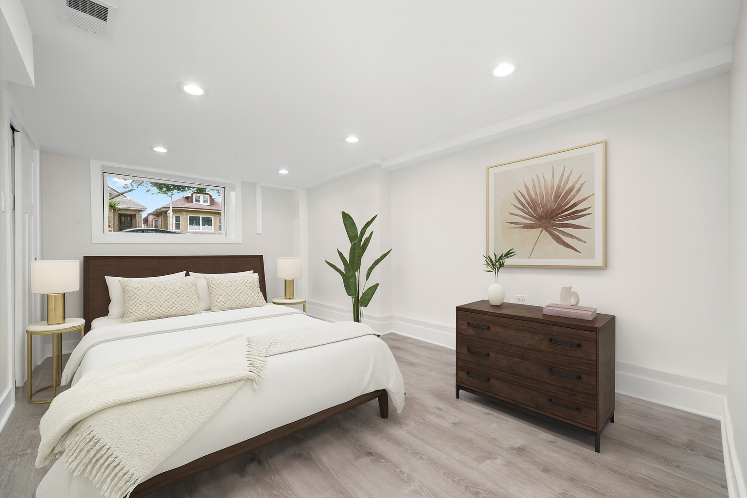 Experience timeless Chicago charm redefined at 6144 N Maplewood Avenue. This quintessential brick bungalow has been fully reimagined with a brand-new gut renovation, blending historic character with contemporary elegance. Situated on a quiet one-way street just two blocks from vibrant Devon Avenue, you’ll find yourself walking distance to the city’s finest restaurants and cultural destinations. The main level showcases a gourmet chef’s kitchen with quartz countertops and two-tone cabinets, two spacious bedrooms, a dedicated mudroom, and a bathroom featuring meticulous tiling and luxury finishes. Upstairs, the master suite spans the entire floor, offering a private retreat with exceptional scale and comfort. The lower level boasts impressive ceiling height, a large family room with a wet bar, 2 oversized bedrooms, and another beautiful full bath, creating versatile living and entertaining spaces. Outdoors, enjoy crisp fall nights on your new patio, paired with the convenience of a brand-new two-car garage. Every detail has been carefully curated, making this residence a rare blend of classic architecture and modern luxury living. Nothing to do but move in and enjoy! Book your showing today.