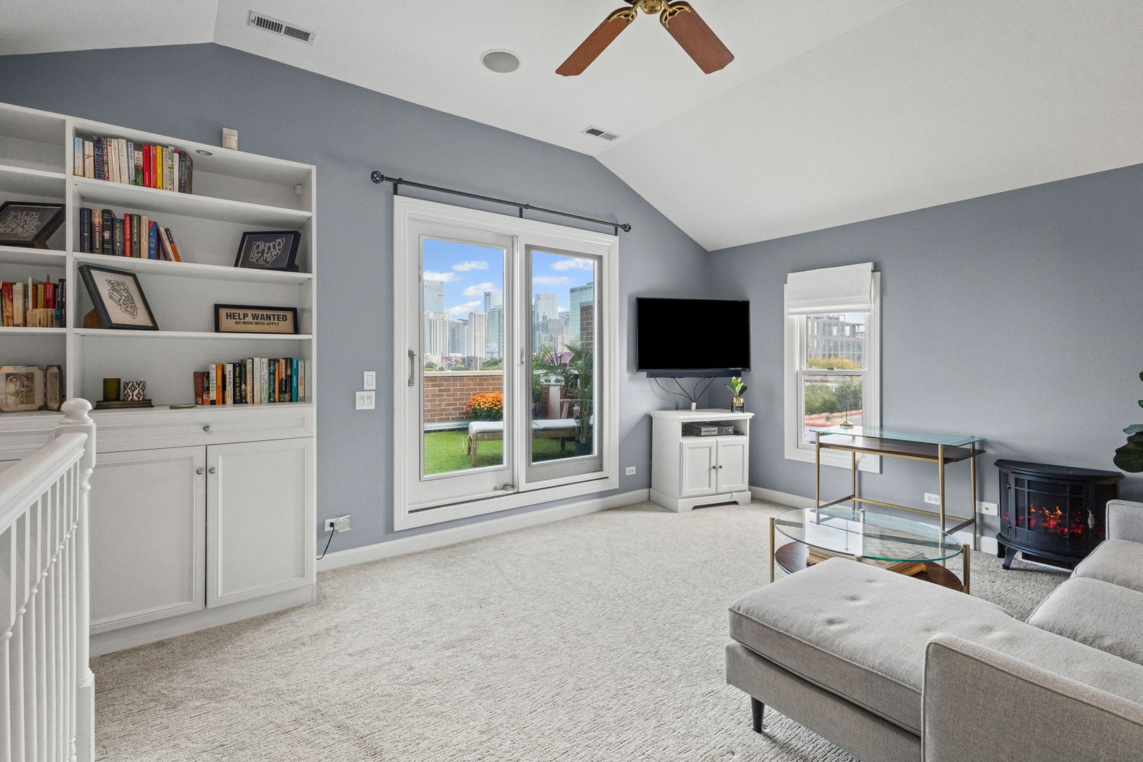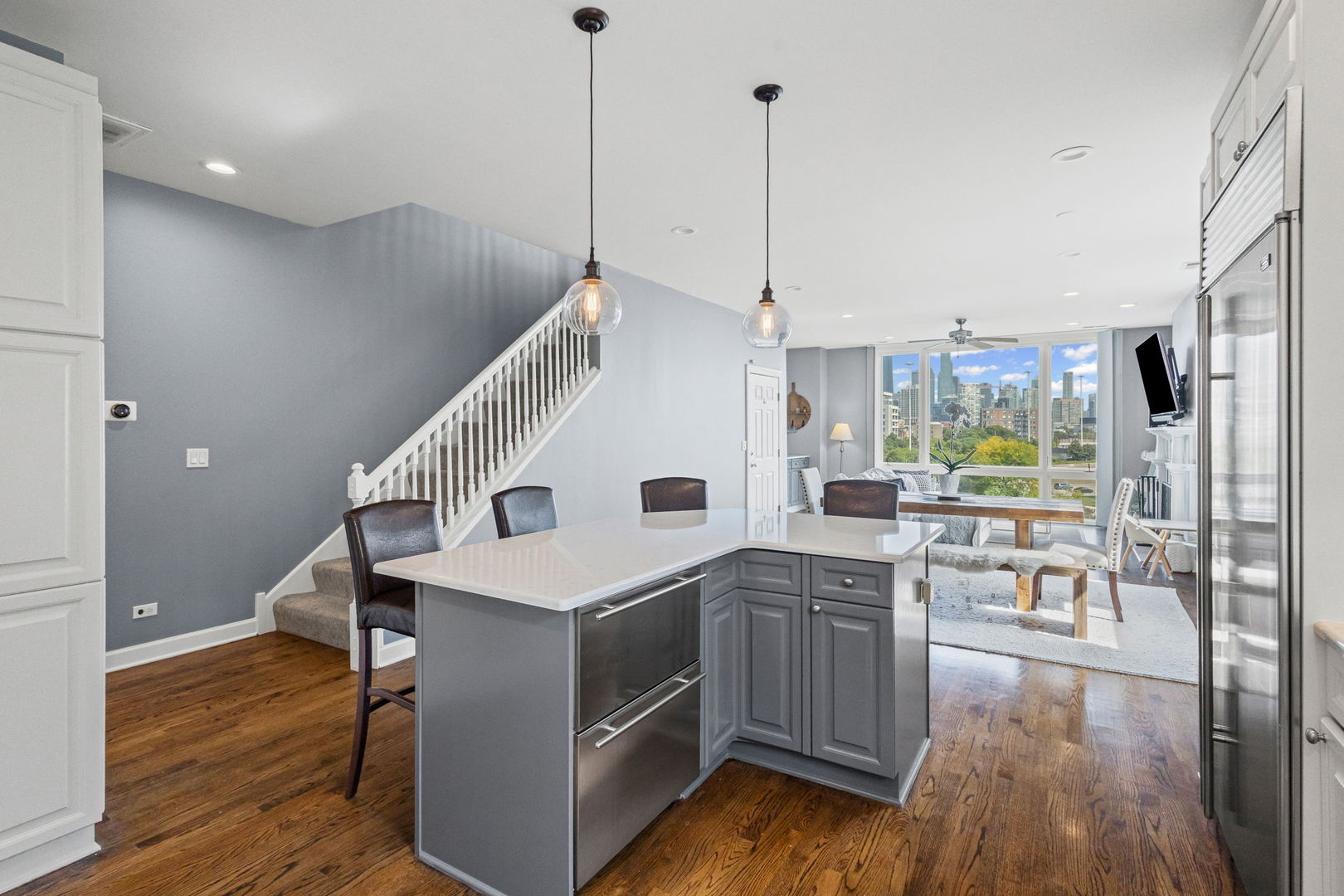 MOTIVATED SELLER, OFFERING SIGNIFICANT CLOSING CREDIT! Expansive duplex penthouse, 2 bed + DEN / 2.1 baths with three private outdoor spaces and sweeping skyline views at the crossroads of West Loop, River West, and West Town. Featuring a designer-renovated primary bath, updated chef’s kitchen, and garage parking, this home blends modern comfort with city convenience. Inside, soaring ceilings and oversized windows fill the open-concept living area with natural light and skyline views. The chef’s kitchen and adjoining living space were thoughtfully updated for both entertaining and everyday living. The primary suite is a true retreat, anchored by a $35,000 professionally designed bath with double vanity, soaking tub, walk-in shower, heated floors and floor-to-ceiling Carrara marble, plus a custom California Closets walk-in. Enjoy three private outdoor areas, including a main deck facing the city-perfect for morning coffee, summer evenings, or weekend gatherings. Additional bedrooms offer flexibility for guests, an office, or fitness space, while the second-floor den can easily convert to a third bedroom. Steps from Chicago’s premier dining, shopping, nightlife, and transit, 616 N May #3C delivers designer style, rare outdoor living, and an unbeatable location-a one-of-a-kind opportunity to experience the best of city living.