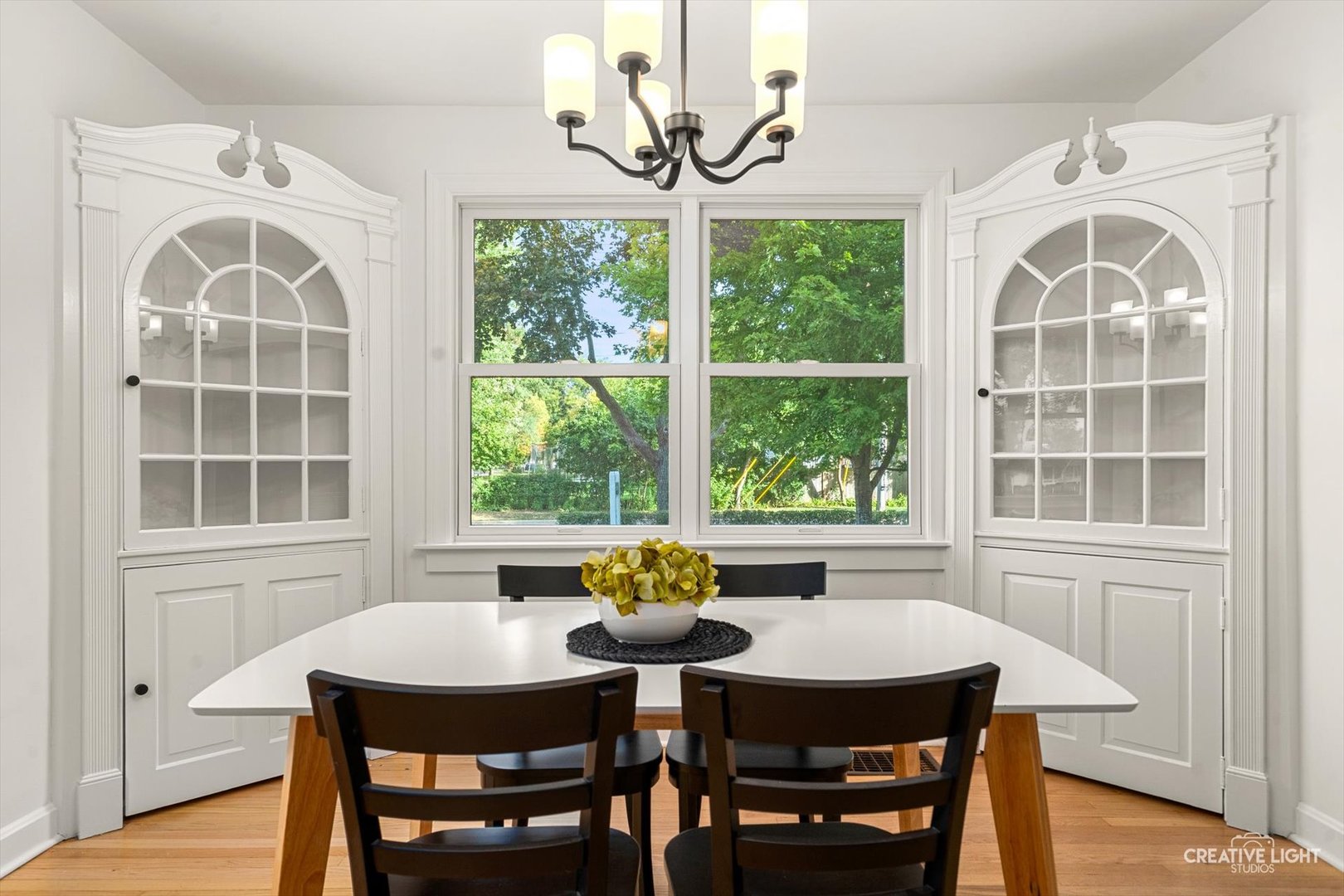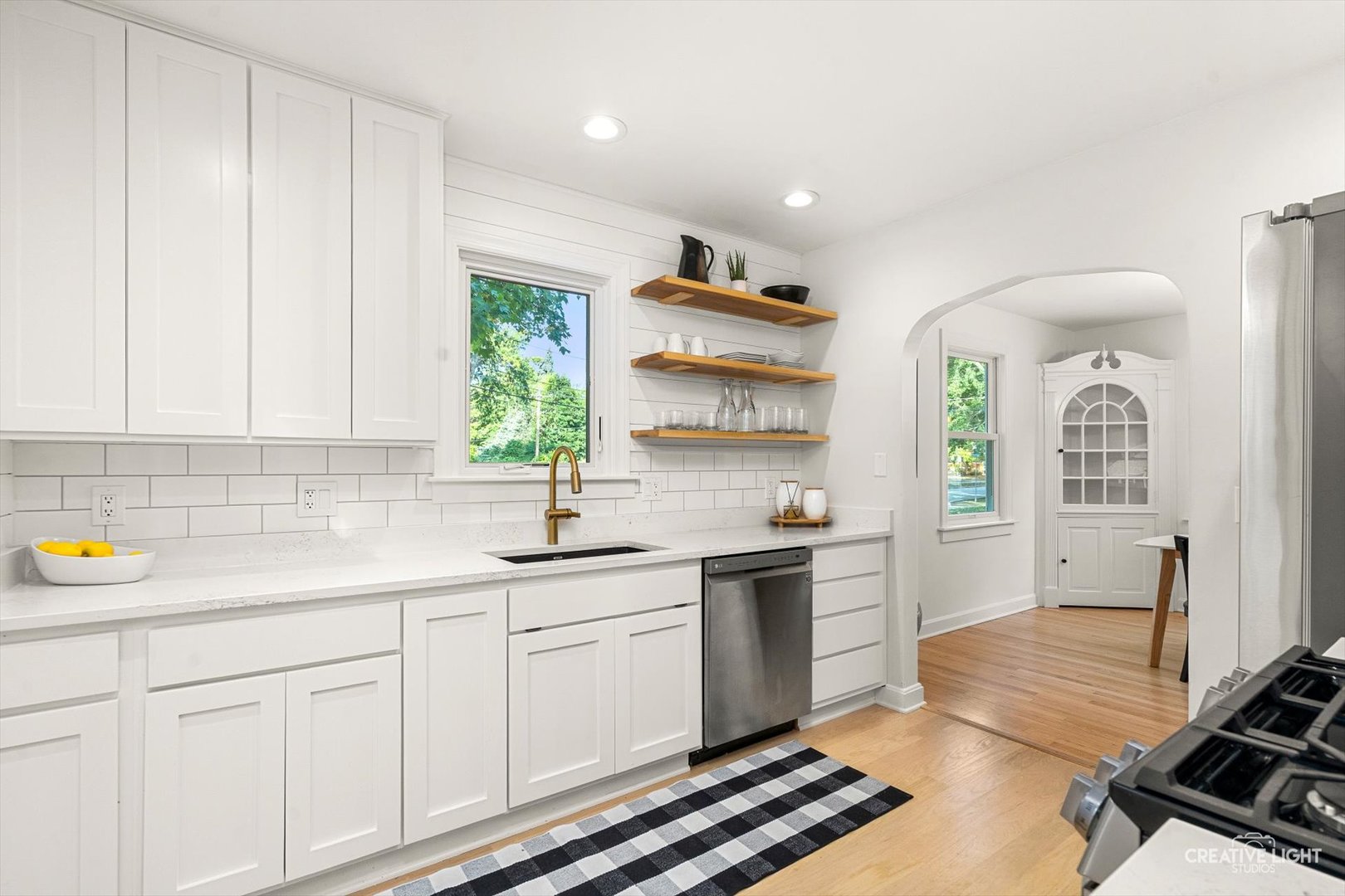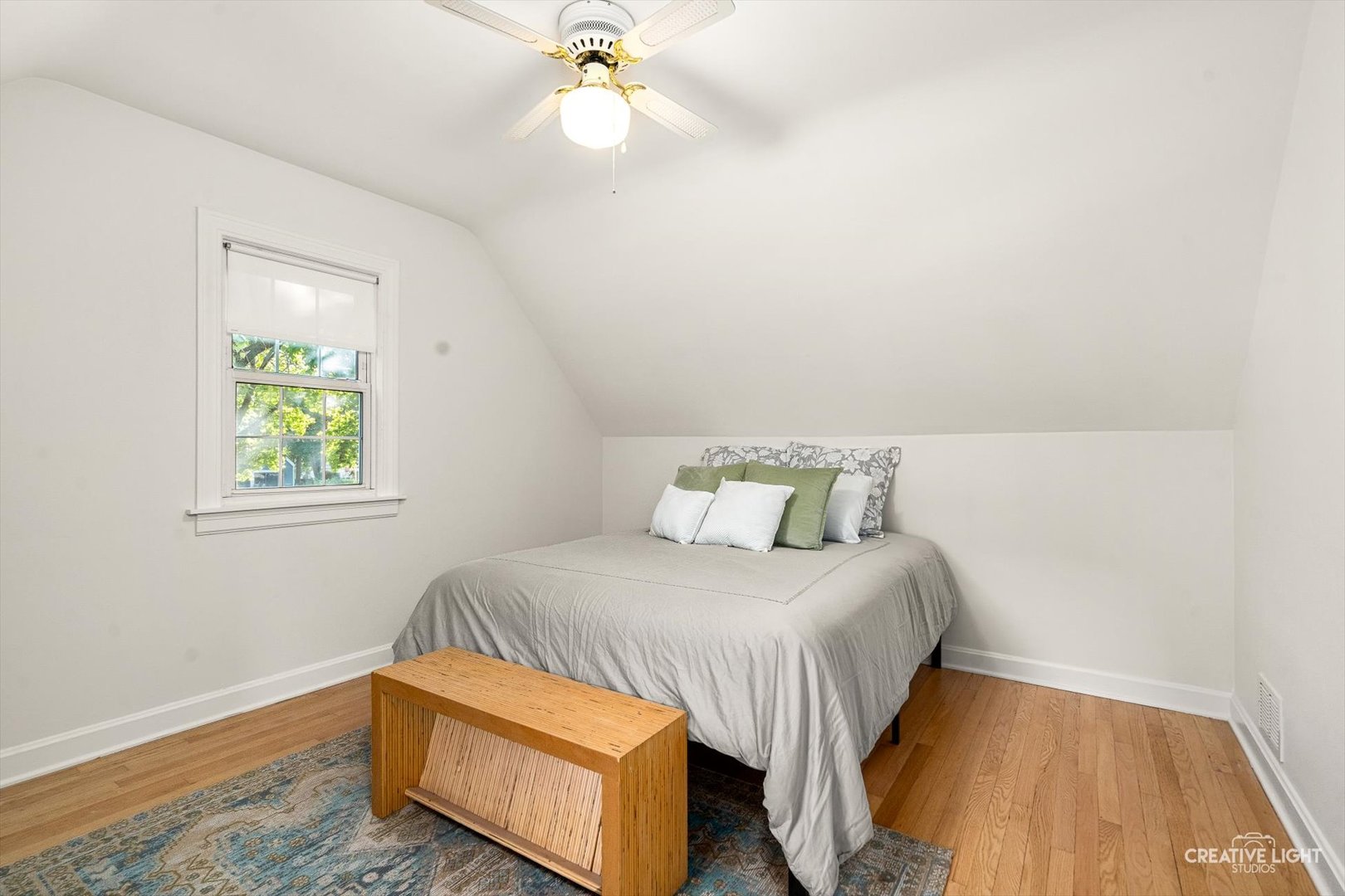 You will love the modern updates and timeless charm of this Cape Cod home! Curb appeal galore with this RARE oversized lot (.36 acres), surrounded by mature trees, expansive green space, NEW front porch, and Trex deck. Step inside to an open living room and dining room space with hardwood flooring, trendy paint color and original built-in cabinetry. NEW WINDOWS (2025) on the main floor provide a lot of natural sunlight. The updated kitchen (2022) with white cabinetry, quartz countertops, stainless steel appliances, sink/faucet and floating bamboo shelving is a show stopper. First floor bedroom with adjacent full bathroom provides the perfect main floor living space. The second floor includes two additional bedrooms. Large basement recreational space is perfect for movie or game day! Recent basement updates include: paint (floor-to-ceiling), remodeled full bathroom (2025) with walk-in shower, new vanity and faucet, toilet, and luxury vinyl flooring, spacious and updated laundry features a large folding area with storage and shiplap walls. Concrete driveway leads to the 3-car garage has plenty of space for home projects and storage. Close to town and across the street from Davis Elementary make this an ideal location! Welcome home!