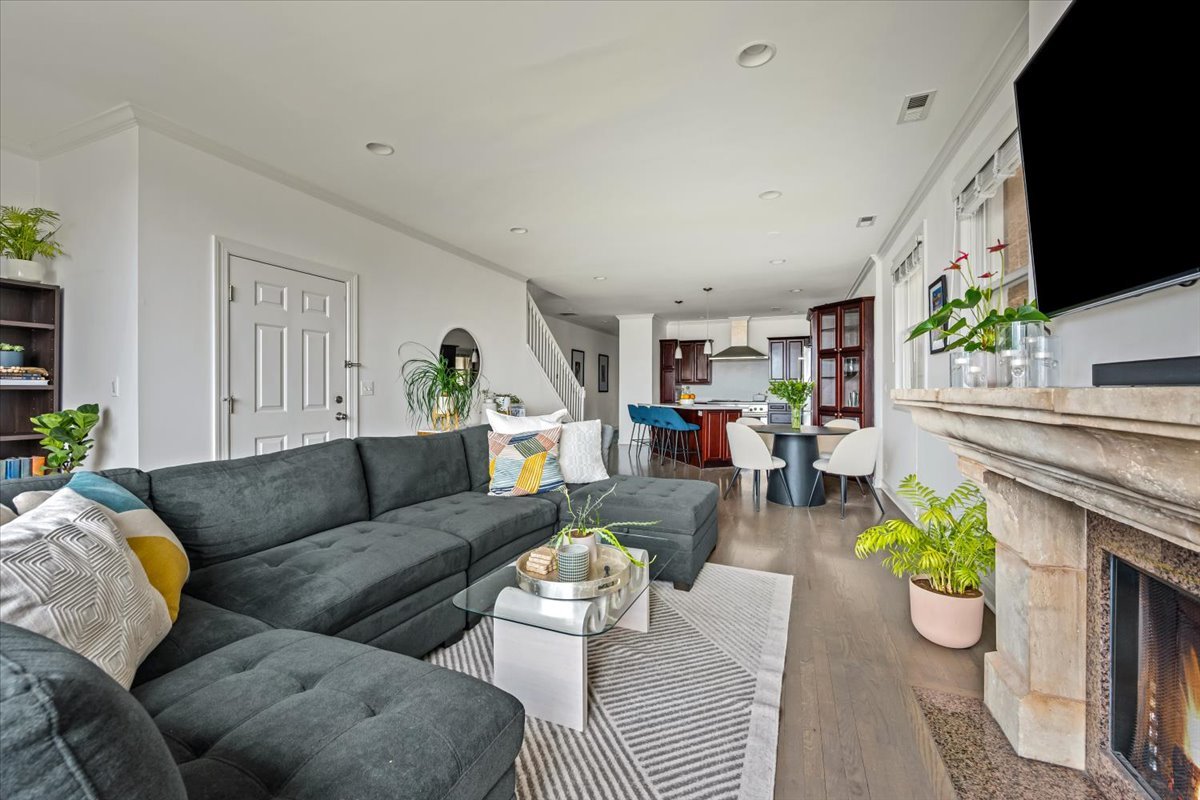 Central, commute-anywhere location, duplex up penthouse! Generous 2 bed, 2.5 bath PLUS family room that can be used as an additional office, guest room, or even a bedroom (put up some drywall and add a door)! This is a 3rd floor penthouse with a walk-out roof deck you’ll actually use! Skyline views roof deck is conveniently located off the second living room with an internal staircase that comes right up from the kitchen. Watch the city change with the seasons in this jaw dropping East facing unit. The main level is open concept featuring a cozy fireplace in the living room and an oversized and refreshed chef’s kitchen featuring a pro-grade Thermador oven, new countertops, backsplash, and reconfigured island! Split floor plan with two primary suites – both featuring professionally organized custom closets. Current owners use the entire second floor as their primary suite. Both ensuite bedrooms have private decks with plenty of space to relax. Includes secured garage parking. 5-10 minute walk to Fulton Market and Google offices, minutes to the highway, public transportation, bike lanes, and the city’s top restaurants.