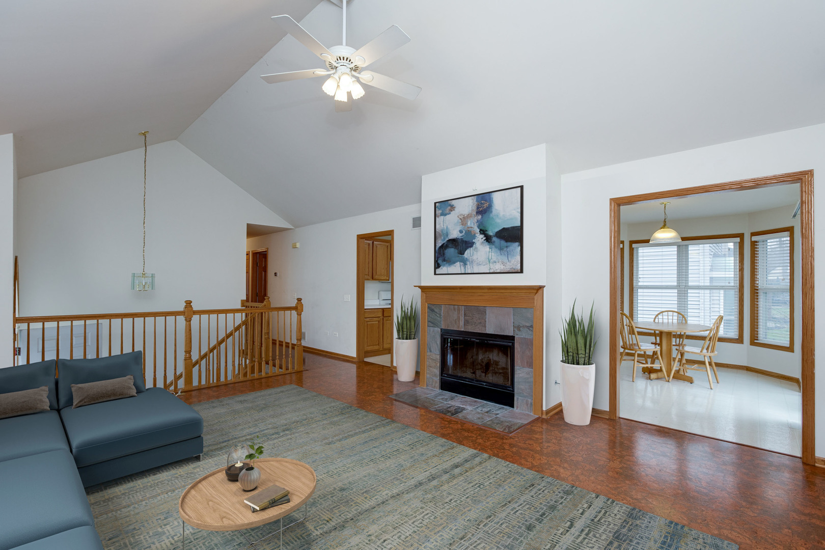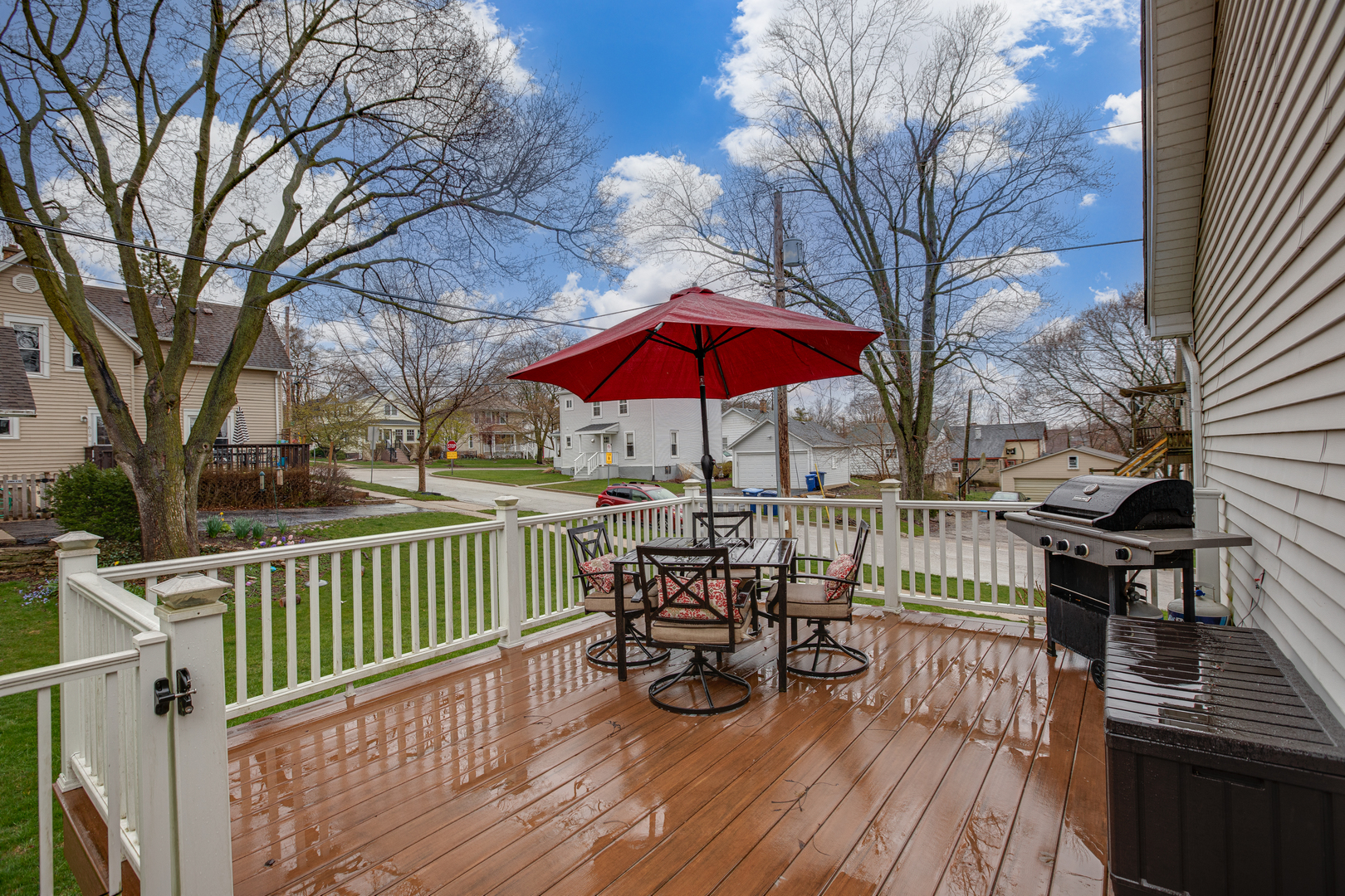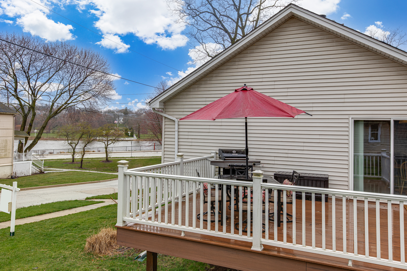 With over 2000 sq ft of finished living space this home is amazing and features a fabulous water view of The Fox River in the distance! Walk to downtown St.Charles, many restaurants, bars and shops! Hop on the bike path to nearby Geneva & Batavia, St Mary’s Park, Pottawatomie Park & Golf Course and the St.Charles Swanson Community Pool. The strong curb appeal offers a side load 2.5 car garage, a wide expanded driveway and mature landscaping. Inside features volume ceilings, bright windows, large spacious rooms, solid wood doors and neutral decor. Enter the open foyer which leads into the living room with a volume ceiling and enjoy the windows with a spectacular view of the river. The bright and airy kitchen has numerous cabinets, plenty of counter space and all appliances. The dining area has a bay window and a large door to the elevated deck for your summer BBQ’s. 3 spacious bedrooms, walk-in closets and 2 full baths await your personal decorating ideas. The lower level is finished with an inviting family room, another full bath and an office/4th bedroom. Improvement dates include: : Siding 2000, CAC-Furnace-H20 all 2013, 220 electricity added for electric car 2013, Architectural shingled roof 2015, elevated composite deck added 2017, expanded driveway 2018 and Moen faucets 2020. This is a beauty! Hurry by today.