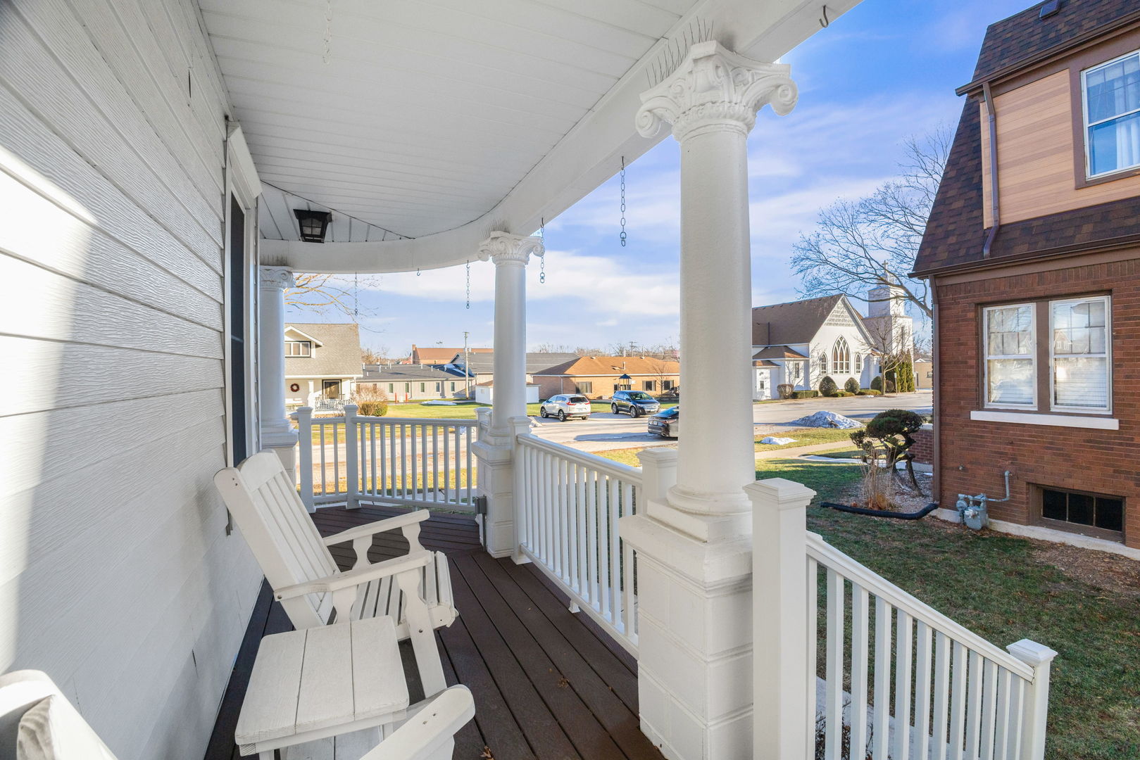 Perfect home in a great location. Pride of ownership shows with many of the updates that have been made. This is a one owner home since it was built in 1913. Updates include Extensive Interior Remodeling 2004-2005, Roof 2007, Basement Sump System 2012, Basement Windows 2012, Pella Windows 2014, Overhead Garage Door Opener 2016, Water Heater 2018, Microwave 2019, Air Conditioning System 2022, Dishwasher 2023, Composite Deck Front Porch 2023, Boiler for Heating System 2024. Located in the downtown area close to Restaurants, Post Office, Library, Firemen’s Park, and Schools. Home has 2 C/A systems, steel siding, large open foyer with beautiful open staircase, super large rooms with a lot of storage, large eat-in kitchen with tons of cabinet space, breezeway is off the kitchen as well, first floor laundry room with half bath, super large primary bedroom with two walk-in closest and full bath with tub and shower and two vanities, other two bedrooms are large as well, main bath with tub and shower. Full basement which is very clean and has sump pump with battery backup, ejector pump, water softener, utility sink, reverse osmosis, and water filter. Large detached garage is 23’x 27′ built in 1984 is perfect for extra shelving and storage. Come out and take a look! You won’t believe how nice this home is.