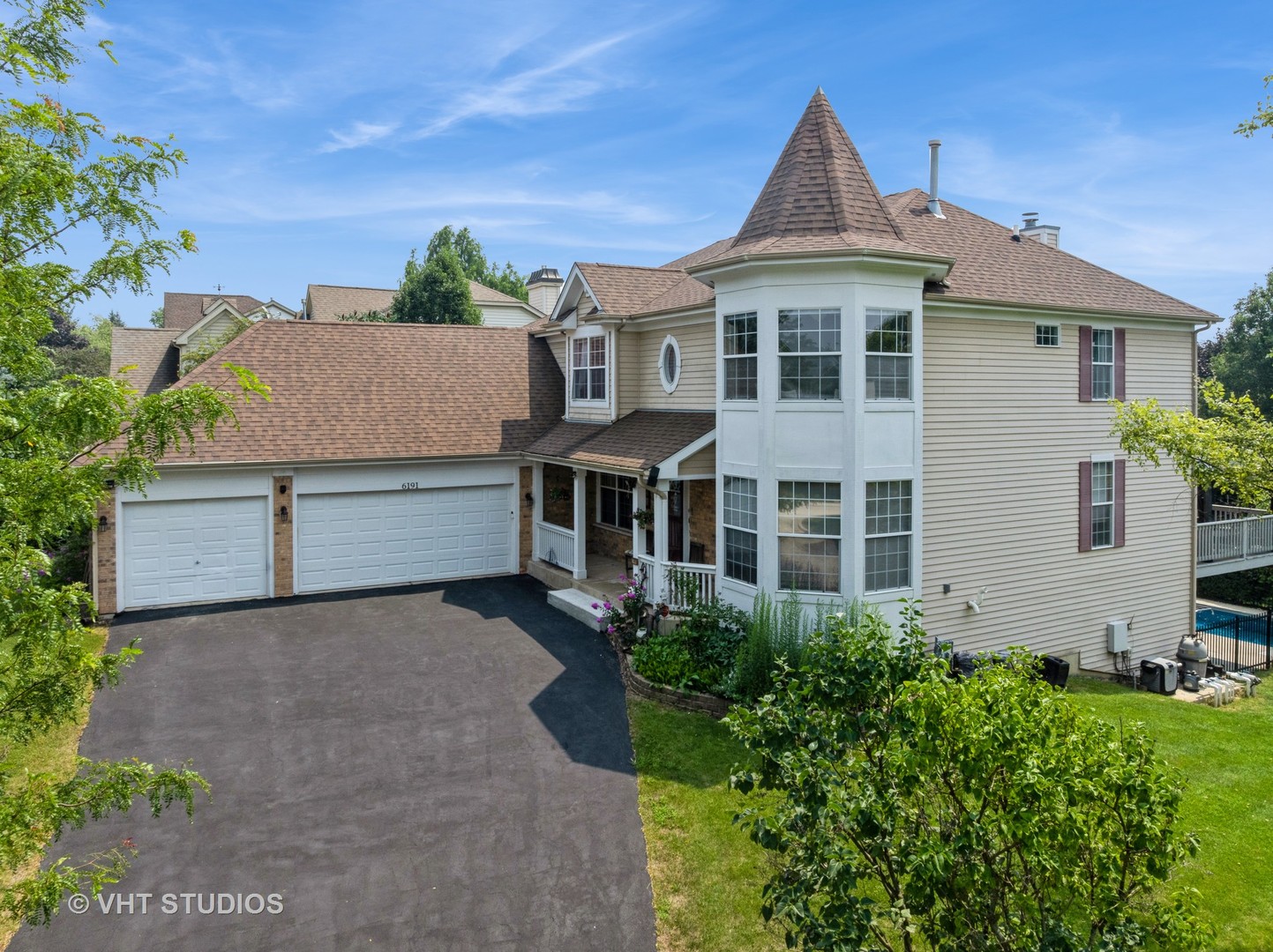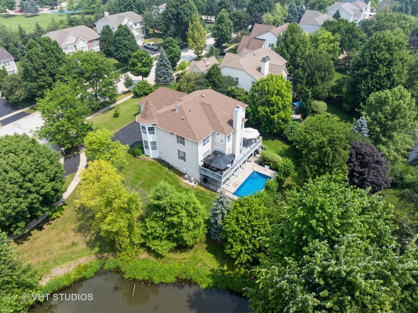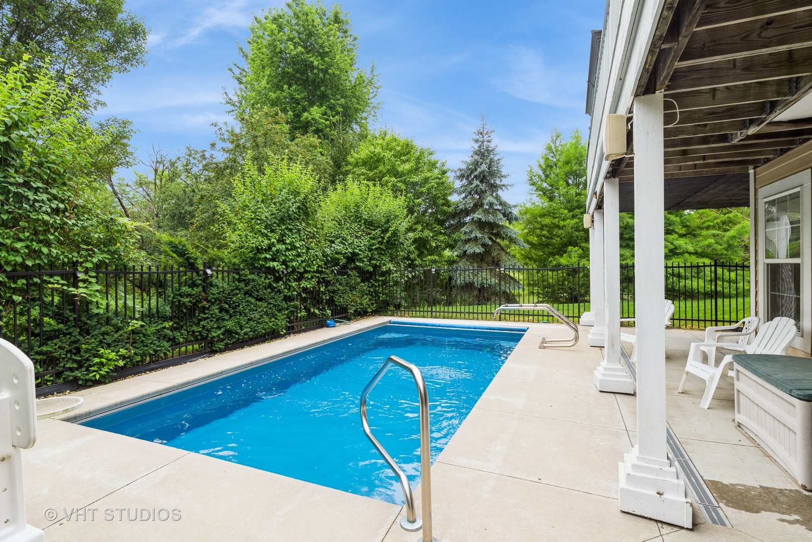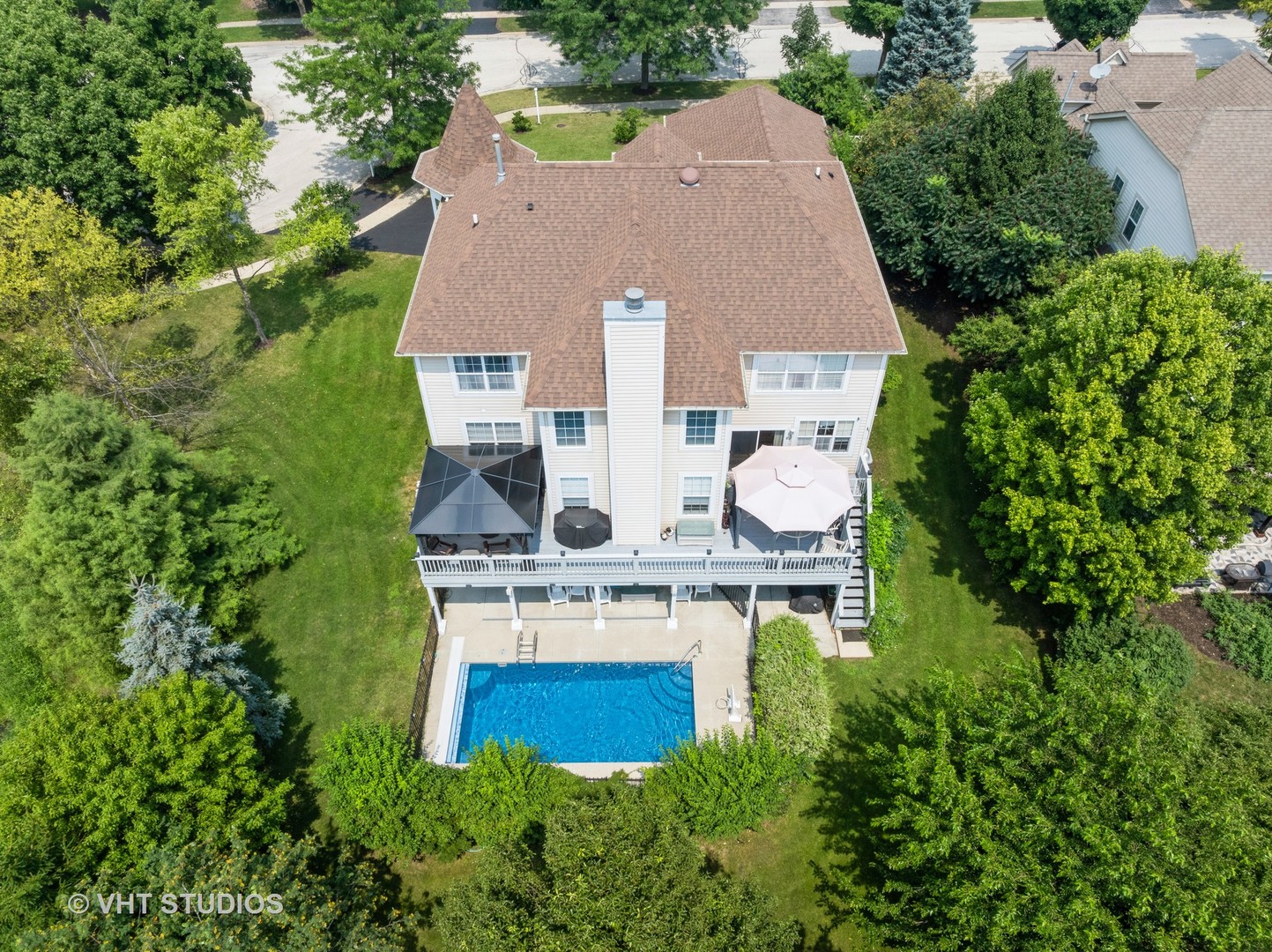 Welcome to your own private paradise! This beautifully maintained and updated 5 bedroom, 3.5 bath home with an in-ground heated swimming pool, offers over 3 finished levels of living space plus a 3 car garage. It is the perfect blend of elegance, comfort, and outdoor enjoyment. Set on a premium lot that backs to serene open land with mature trees and a tranquil pond, you’ll enjoy daily visits from gorgeous birds and have incredible views-with no backyard neighbors! Step onto the charming front porch and into a special home! The first floor features gleaming hardwood floors (just refinished to perfection), a convenient home office, a spacious laundry room, and a dramatic two-story family room perfect for entertaining or cozy movie nights. You’ll feel like royalty sitting in the living room shaped like a turret in a castle! Royal dinners can be served in the elegant dining room. The heart of the home is the updated island kitchen featuring trendy colors, newer stainless appliances, with a generous eating area and a breakfast bar for quick bites. Step outside to the deck complete with 2 gazebos-an amazing spot to relax, entertain or simply enjoy nature. Inside and upstairs, there are four roomy bedrooms, all with ceiling fans and large closets. The hall bathroom offers a dual-sink vanity, while the luxurious primary suite features a tray ceiling, a huge walk-in closet with custom built-ins, and a spa-like bathroom with a whirlpool tub, separate shower and dual vanities. Relax and enjoy! The finished walk-out basement is a dream! It includes a massive recreation room with built in cabinets, a sink and refrigerator, a 5th bedroom, a full bathroom with heated floors, and a craft/exercise room. Just outside the walk-out basement, the in-ground swimming pool is perfect for summer fun, and the peaceful setting with pond views makes this home a rare find!