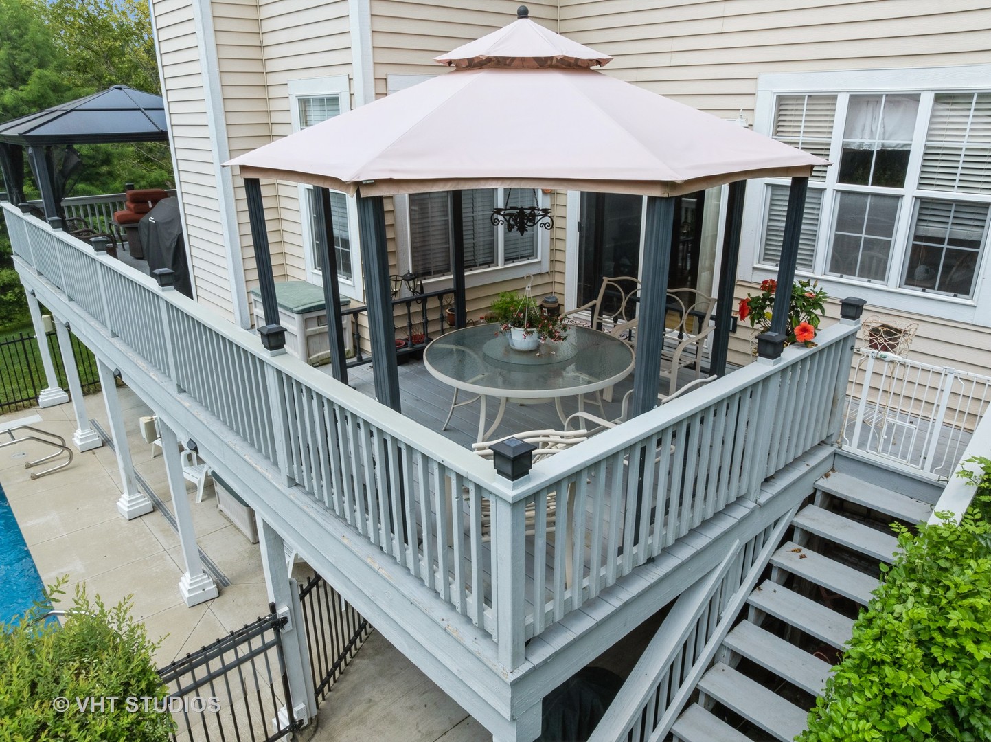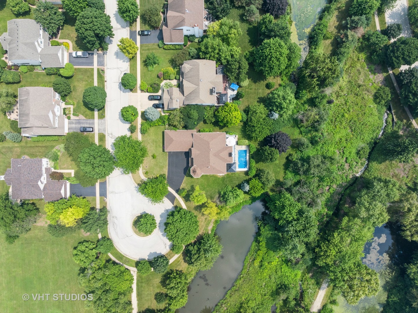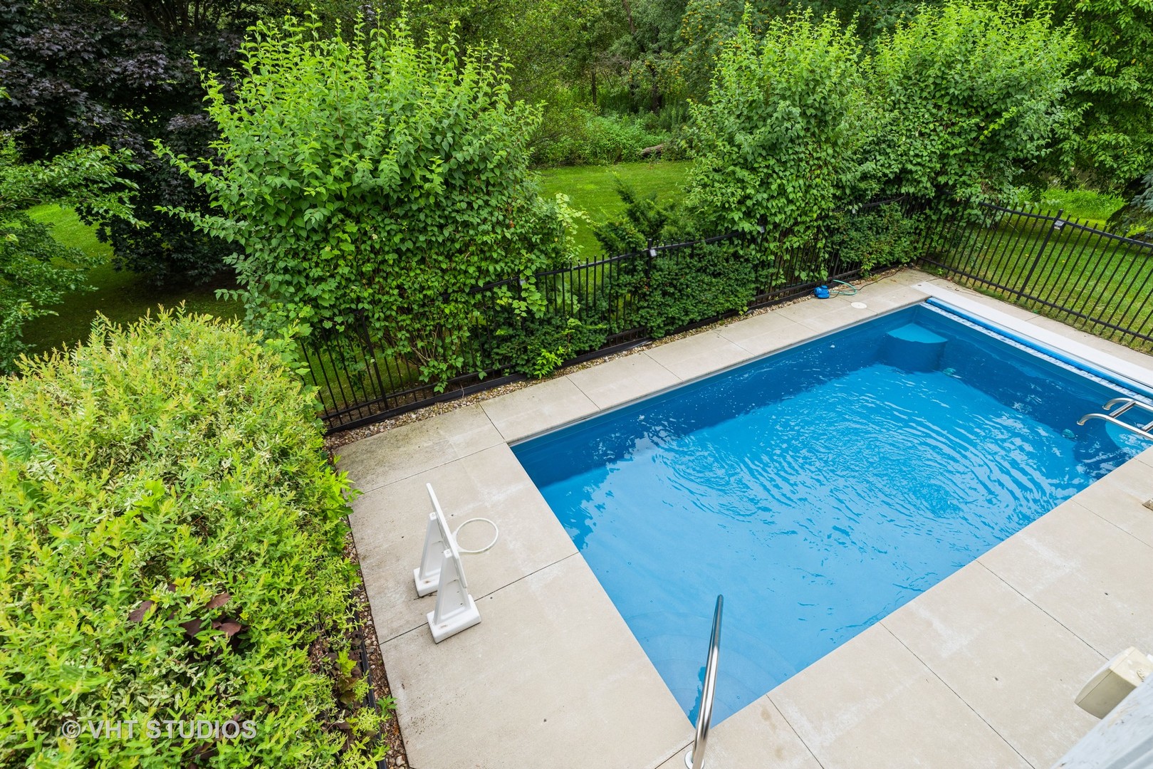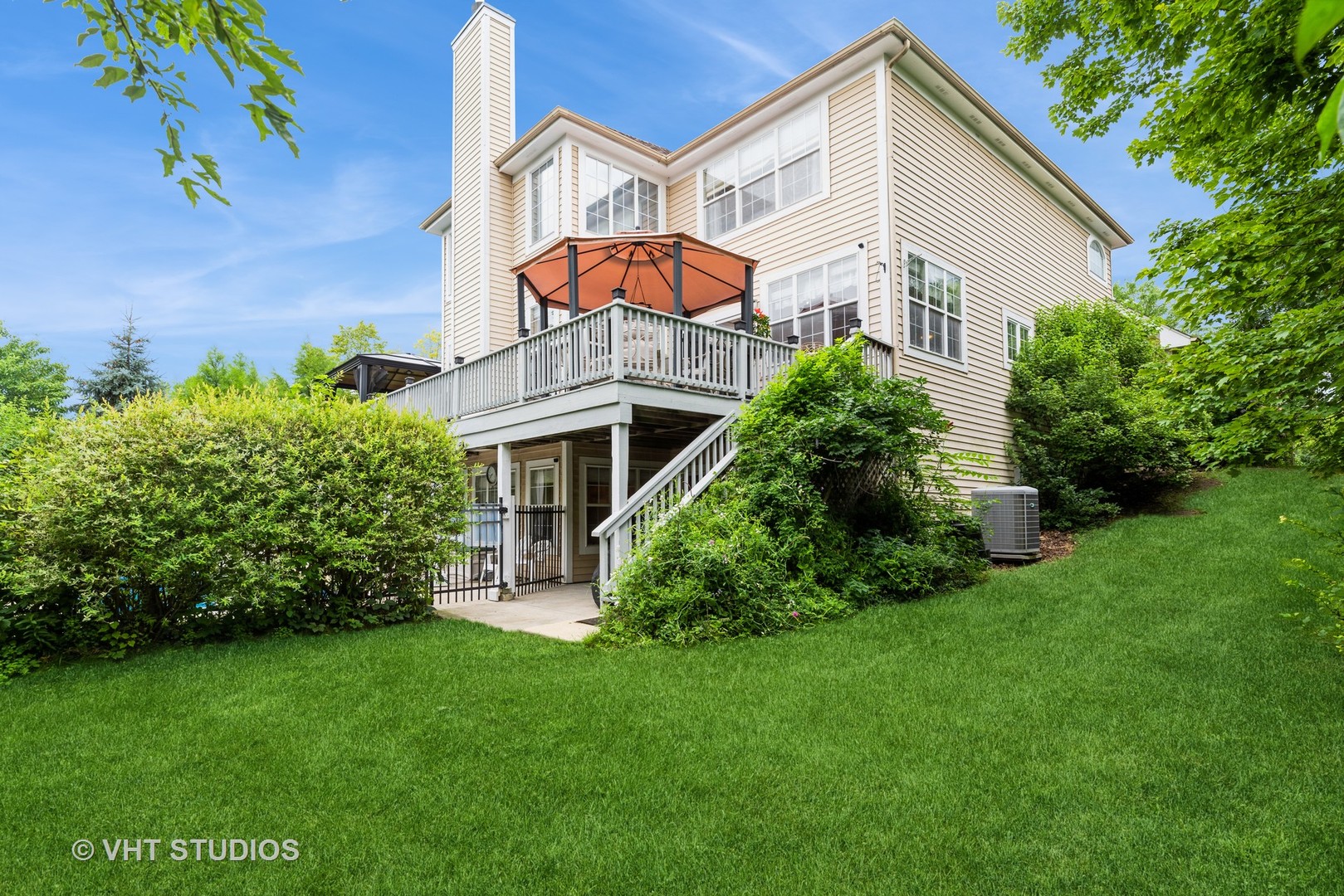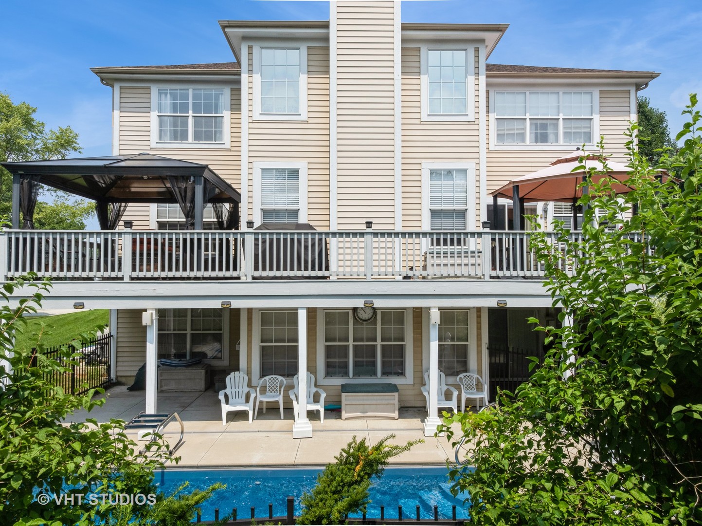 Welcome to your own private paradise! This beautifully maintained and updated 5 bedroom, 3.5 bath home with an in-ground heated swimming pool, offers over 3 finished levels of living space plus a 3 car garage. It is the perfect blend of elegance, comfort, and outdoor enjoyment. Set on a premium lot that backs to serene open land with mature trees and a tranquil pond, you’ll enjoy daily visits from gorgeous birds and have incredible views-with no backyard neighbors! Step onto the charming front porch and into a special home! The first floor features gleaming hardwood floors (just refinished to perfection), a convenient home office, a spacious laundry room, and a dramatic two-story family room perfect for entertaining or cozy movie nights. You’ll feel like royalty sitting in the living room shaped like a turret in a castle! Royal dinners can be served in the elegant dining room. The heart of the home is the updated island kitchen featuring trendy colors, newer stainless appliances, with a generous eating area and a breakfast bar for quick bites. Step outside to the deck complete with 2 gazebos-an amazing spot to relax, entertain or simply enjoy nature. Inside and upstairs, there are four roomy bedrooms, all with ceiling fans and large closets. The hall bathroom offers a dual-sink vanity, while the luxurious primary suite features a tray ceiling, a huge walk-in closet with custom built-ins, and a spa-like bathroom with a whirlpool tub, separate shower and dual vanities. Relax and enjoy! The finished walk-out basement is a dream! It includes a massive recreation room with built in cabinets, a sink and refrigerator, a 5th bedroom, a full bathroom with heated floors, and a craft/exercise room. Just outside the walk-out basement, the in-ground swimming pool is perfect for summer fun, and the peaceful setting with pond views makes this home a rare find!