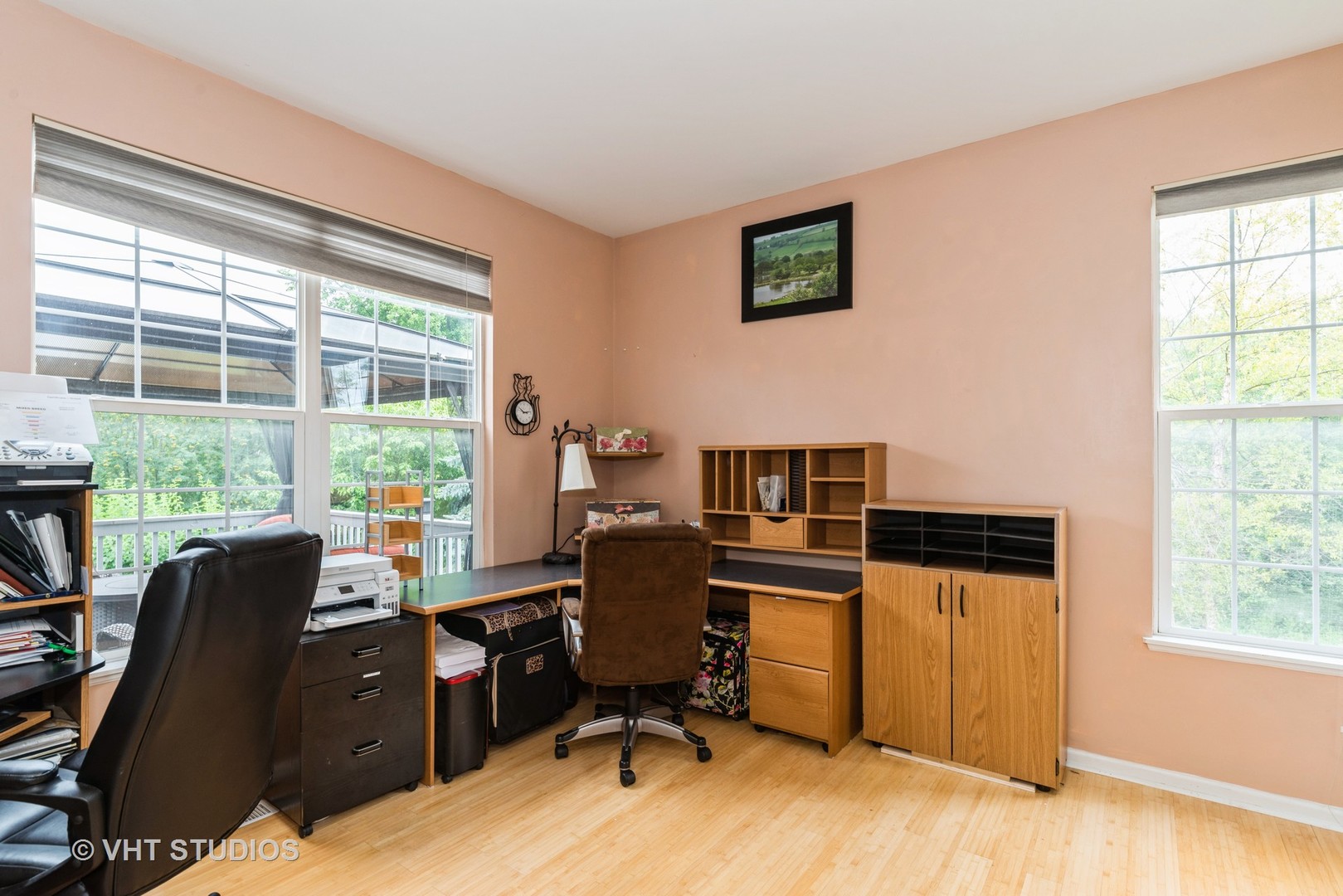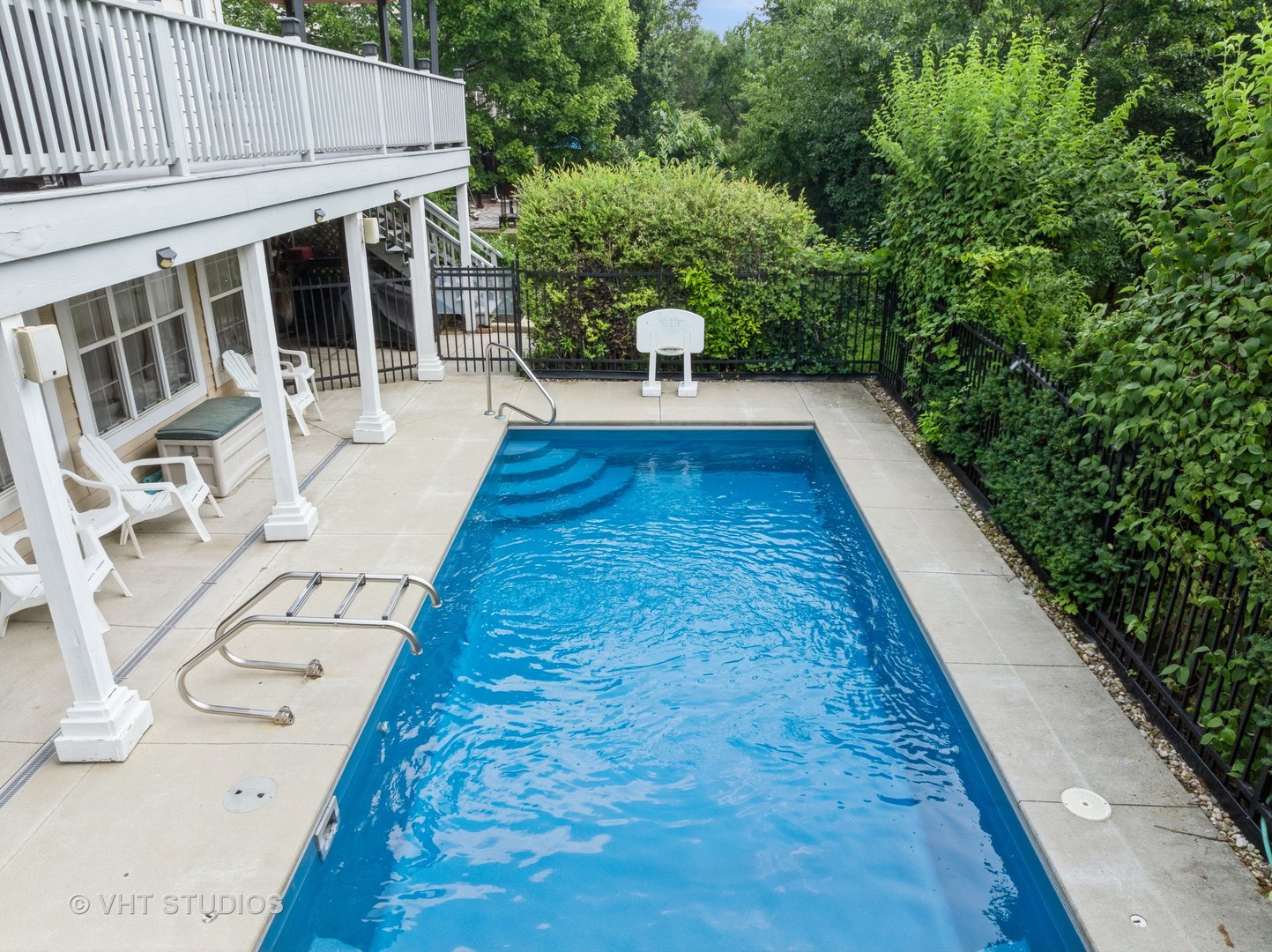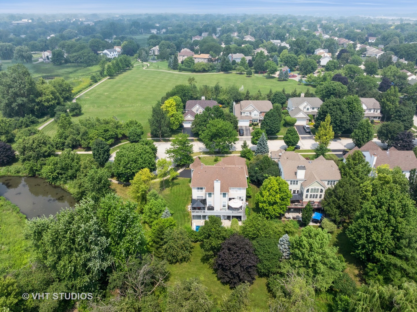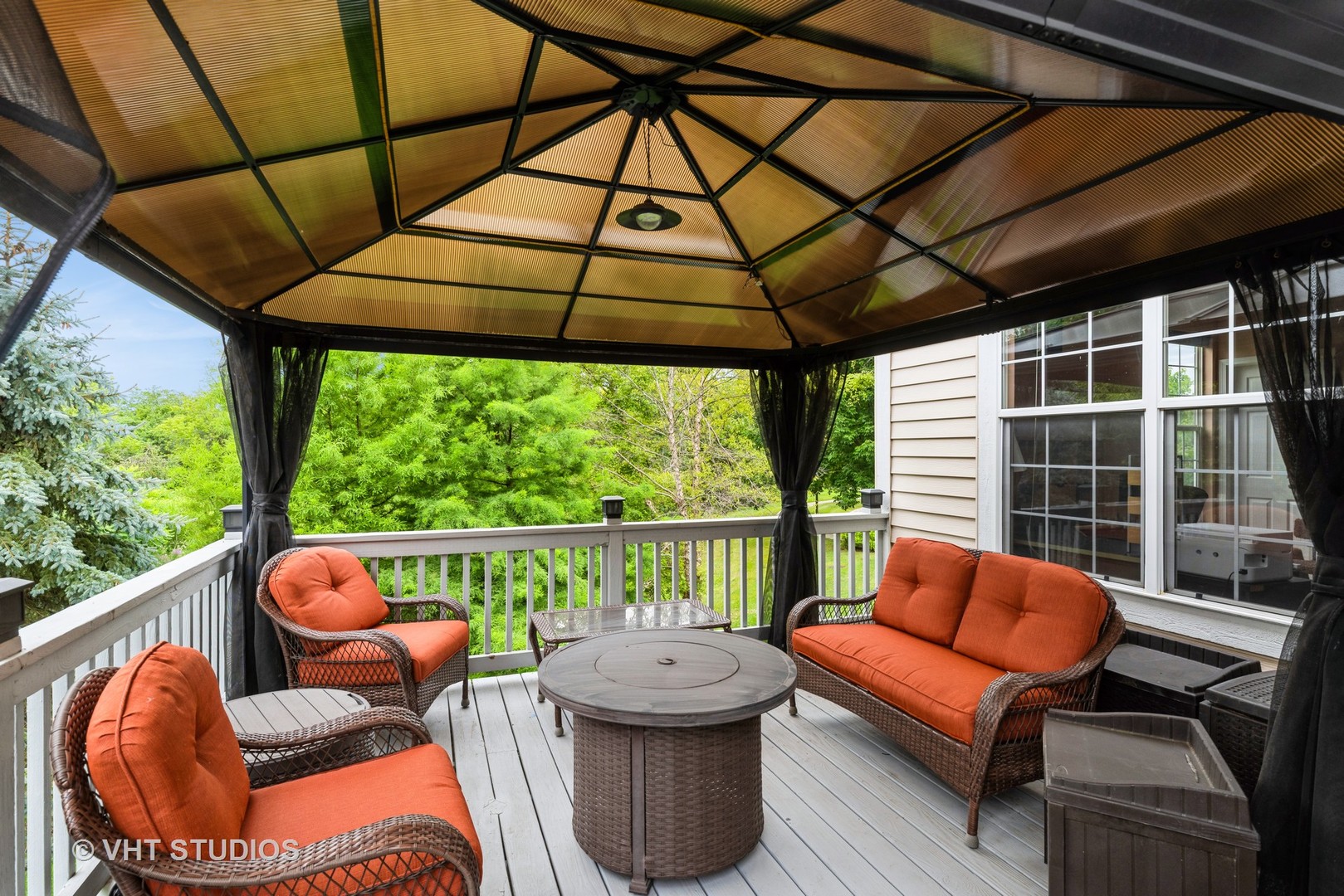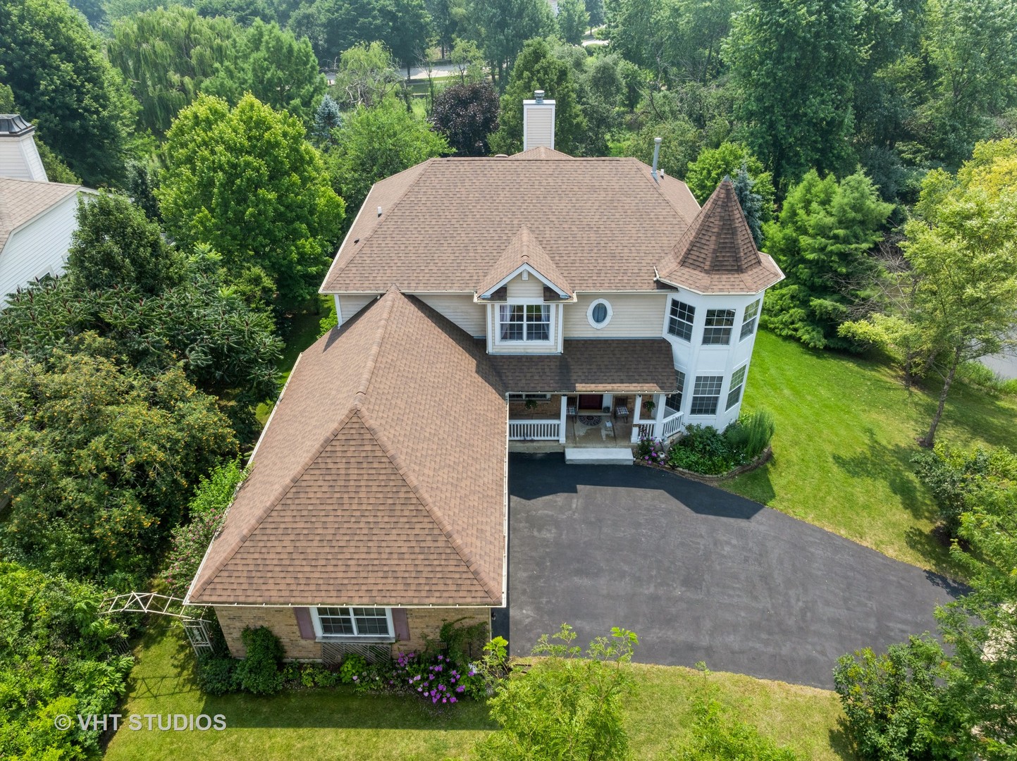 Welcome to your own private paradise! This beautifully maintained and updated 5 bedroom, 3.5 bath home with an in-ground heated swimming pool, offers over 3 finished levels of living space plus a 3 car garage. It is the perfect blend of elegance, comfort, and outdoor enjoyment. Set on a premium lot that backs to serene open land with mature trees and a tranquil pond, you’ll enjoy daily visits from gorgeous birds and have incredible views-with no backyard neighbors! Step onto the charming front porch and into a special home! The first floor features gleaming hardwood floors (just refinished to perfection), a convenient home office, a spacious laundry room, and a dramatic two-story family room perfect for entertaining or cozy movie nights. You’ll feel like royalty sitting in the living room shaped like a turret in a castle! Royal dinners can be served in the elegant dining room. The heart of the home is the updated island kitchen featuring trendy colors, newer stainless appliances, with a generous eating area and a breakfast bar for quick bites. Step outside to the deck complete with 2 gazebos-an amazing spot to relax, entertain or simply enjoy nature. Inside and upstairs, there are four roomy bedrooms, all with ceiling fans and large closets. The hall bathroom offers a dual-sink vanity, while the luxurious primary suite features a tray ceiling, a huge walk-in closet with custom built-ins, and a spa-like bathroom with a whirlpool tub, separate shower and dual vanities. Relax and enjoy! The finished walk-out basement is a dream! It includes a massive recreation room with built in cabinets, a sink and refrigerator, a 5th bedroom, a full bathroom with heated floors, and a craft/exercise room. Just outside the walk-out basement, the in-ground swimming pool is perfect for summer fun, and the peaceful setting with pond views makes this home a rare find!