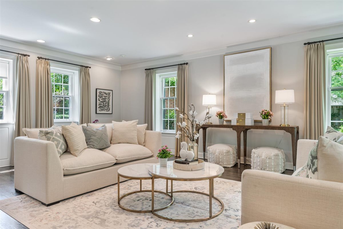 Gracefully tucked away on 1.55 acres of lush manicured grounds, 62 Woodley Road is a true Southern-inspired masterpiece reimagined for today’s living. From the moment you approach the iconic black lacquered screen door with its Chippendale detail, you’re drawn into a world of classic sophistication. Step inside to a grand foyer entrance where timeless black and white checkered marble floors meet a dramatic double atrium staircase wrapped in elegant wrought iron setting the tone for the architectural beauty that unfolds throughout. Gracious comfort exudes throughout this 13 room estate with that desirable southern exposure that allows natural sunlight to flood through the endless windows outlining the incredible backyard. Step down to a beautiful formal living room with a stone Parisian FP & custom French doors that open up to the cozy sunroom with picturesque windows overlooking the backyard. Finely appointed dining room with Visual Comfort light fixture layered with de Gournay wallpaper, antique marble fireplace and another set of French doors open out to the bluestone patio and deep backyard. Finely crafted white Chef’s kitchen by O’Brien Harris with Villa Blanca marble, Clark & Barlow hardware, antique mirrored backslash and Holly Hunt pendents. Seamless transition to family rm ideal for cooking and entertaining at the same time. Command center mudroom, 2 powder rooms, and brand new laundry room also on this level. Two staircases lead the way up to large 2nd floor with intimate “Ralph Lauren” inspired den richly finished in restored paneled chestnut walls & handsome built ins w/ dark marble FP. Large primary suite with room for even more expansion over porch is completed with Ann Sacks white bath and gracious marble FP with custom built ins accented by built in window bench. 3 additional bedrooms with one being a large family bedroom w/ en-suite bath. The other 2 beds share pretty all white redone bathroom. Up to the oversized fully finished 3rd floor with 2nd family room and 2 beds ideal for in-law quarters or nanny. Lower level with mechanicals and ample storage space. The vibe of this home is effortlessly inviting-warm, layered, and livable across all 3 finished levels, seamlessly blending indoor & outdoor living. And with ample space to add a pool, the vision of true Southern comfort could be fully realized, elevating this already timeless retreat into a personal resort unlike any other.