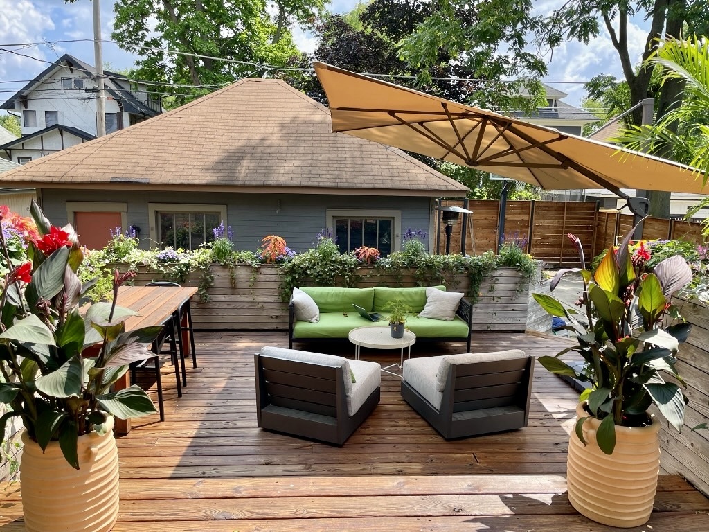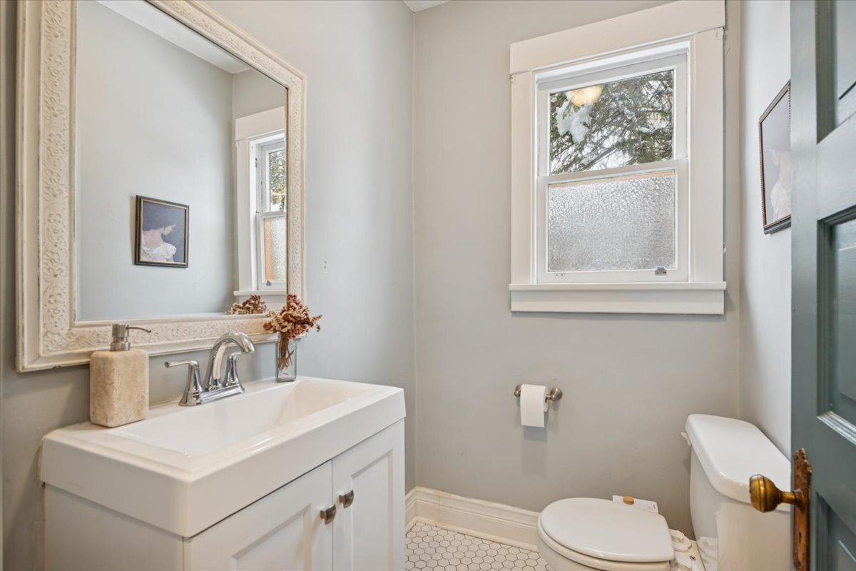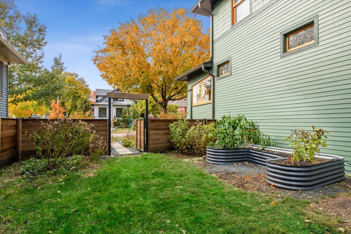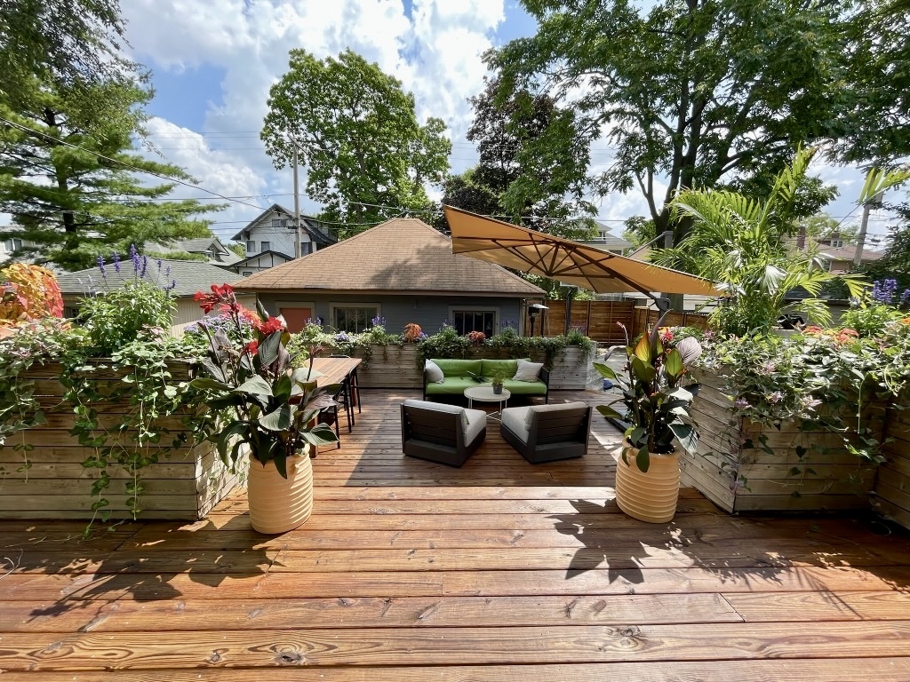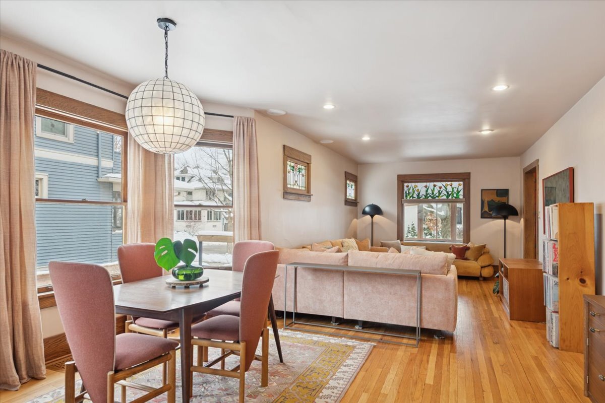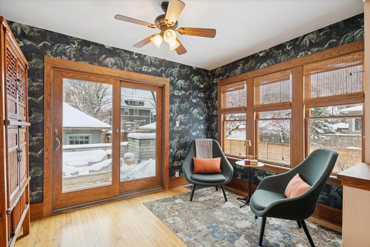 Welcome to this charming four-square home on an extra-wide lot, perfectly situated on one of Oak Park’s most desirable tree-lined blocks-just minutes from the best shops, parks, and restaurants the village has to offer, plus easy access to the Blue Line, Green Line, and the Metra. Beautifully maintained, this home blends timeless character with thoughtful updates throughout. A screened-in front porch invites you inside, where a glass-paneled front door and art-glass windows fill the foyer with light, along with a gracious staircase that showcases the vintage craftsmanship throughout this beautiful home. The front foyer features House of Hackney wallpaper, creating a bold and memorable first impression. Refinished hardwood floors (2020) flow through the main level, where sun-filled living and dining areas enjoy southern exposure. The dining area is anchored by a Restoration Hardware Capiz Shell pendant, adding a warm, stylish focal point for everyday meals and entertaining. The kitchen is bright and inviting, featuring white Corian countertops, stainless steel appliances, a custom matching pedestal table, expansive windows, and a view overlooking the private, fenced yard. A charming maple-floored sunroom sits at the back of the home and features additional House of Hackney wallpaper, tying the design story together and offering a chic transition to the outdoors. This sunroom leads directly out to the multi-level deck, creating an ideal flow for indoor/outdoor living. A convenient half bath completes the main level. Upstairs, you’ll find four comfortable bedrooms with hardwood floors and a classic cream-tiled bath. The spacious primary bedroom features two closets, including a generous 6′ x 10′ walk-in. The partially finished basement adds versatile living space with a large 28′ x 12′ recreation room and plenty of storage, offering room to grow or customize. A brand-new Electrolux 700 Series front-load washer (2025) adds everyday convenience. Out back, enjoy an incredible multi-level deck (13′ x 23′ and 7′ x 23′), resurfaced in 2021 and complete with built-in planters and a drip irrigation system-perfect for entertaining or quiet evenings at home. The expansive fenced yard includes a cedar privacy fence (2022), professional landscaping and hardscaping (2023), a corrugated metal veggie bed, raised garden beds, and even a basketball court. Recent improvements include James Hardie fiber cement siding and insulation, restored windows (2024), new gutters and soffits, new basement windows, and freshly painted stucco. Additional highlights include a 2 1/2-car garage, central air and forced heat, outdoor speakers, and lush perennial gardens. With its inviting layout, incredible yard, and prime Oak Park location, this just might be the one you’ve been waiting for!