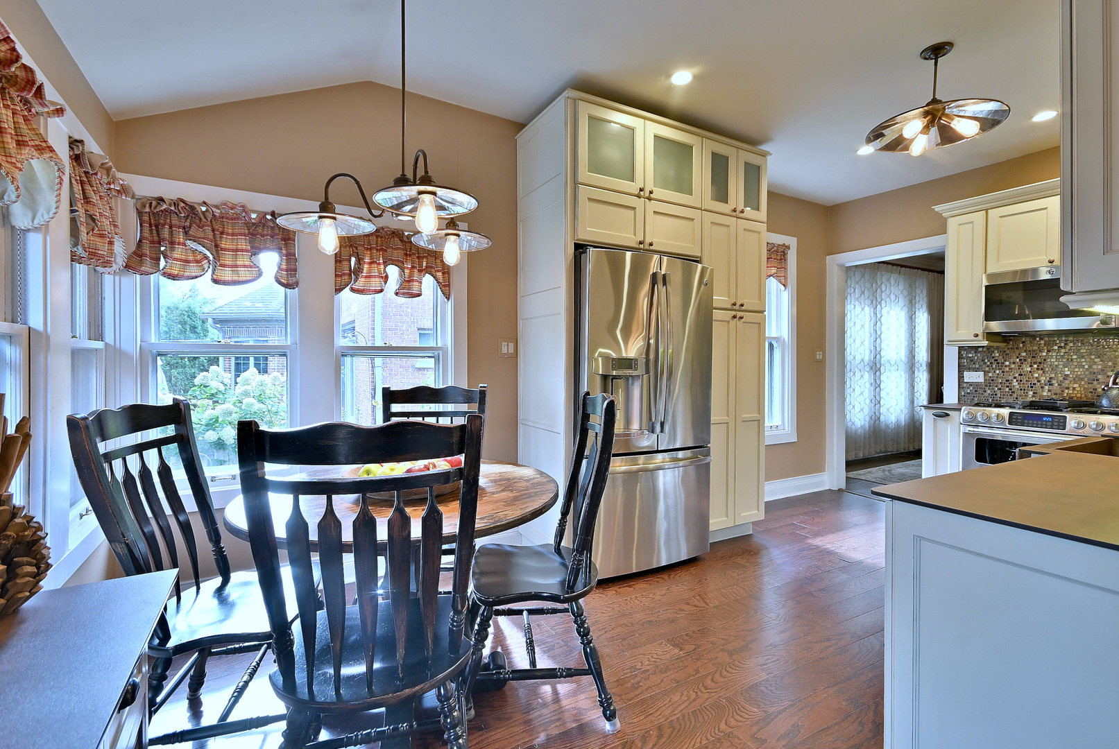 Charming bungalow in a prime Park Ridge location, set on an impressive 50×173 lot! This home perfectly blends classic charm with modern updates. A distinctive covered side front porch welcomes you into the main level, featuring an entrance foyer that splits a sun-filled living room with a cozy wood burning fireplace and a separate formal dining room. The first floor also includes a full bath, two bedrooms, and an updated eat-in kitchen showcasing beautiful cabinetry, a farmhouse sink, and a walk-in pantry. Upstairs, you’ll find two generously sized bedrooms, a central sitting area, a full bath, and additional hallway storage. The finished basement offers even more living space with a recreation room, office, laundry area, two storage rooms, and a full bathroom. Enjoy outdoor living on the large deck overlooking a tree-shaded backyard. The property includes alley access to a two-car garage plus a side parking pad with 2 parking spaces for extra convenience. Major updates include roof 2010 & HVAC 2019.Fantastic location near Uptown Park Ridge, the South Park business district, Centennial Aquatic & Fitness Centers, and neighborhood schools – truly the perfect combination of timeless character and thoughtful updates.