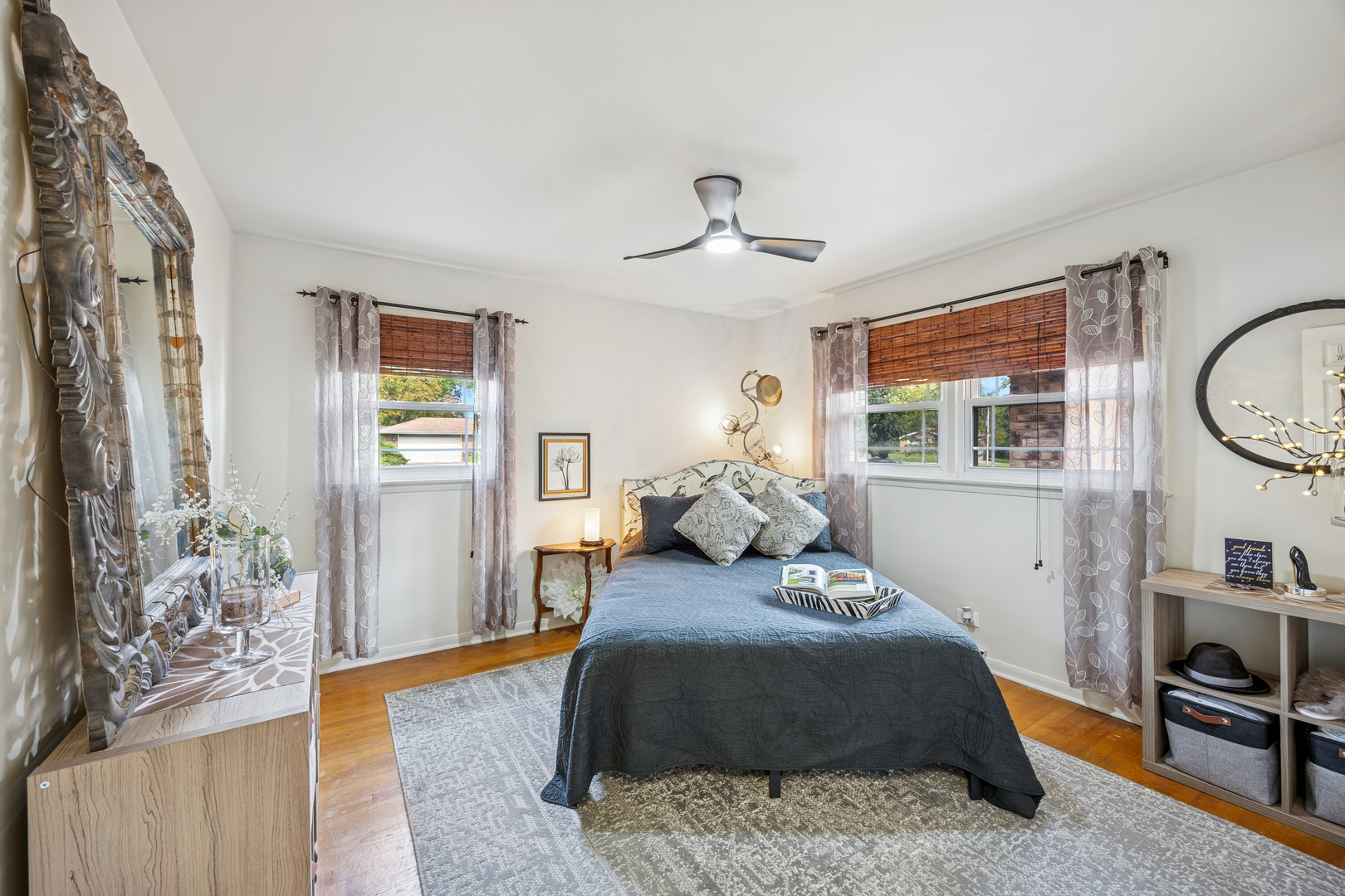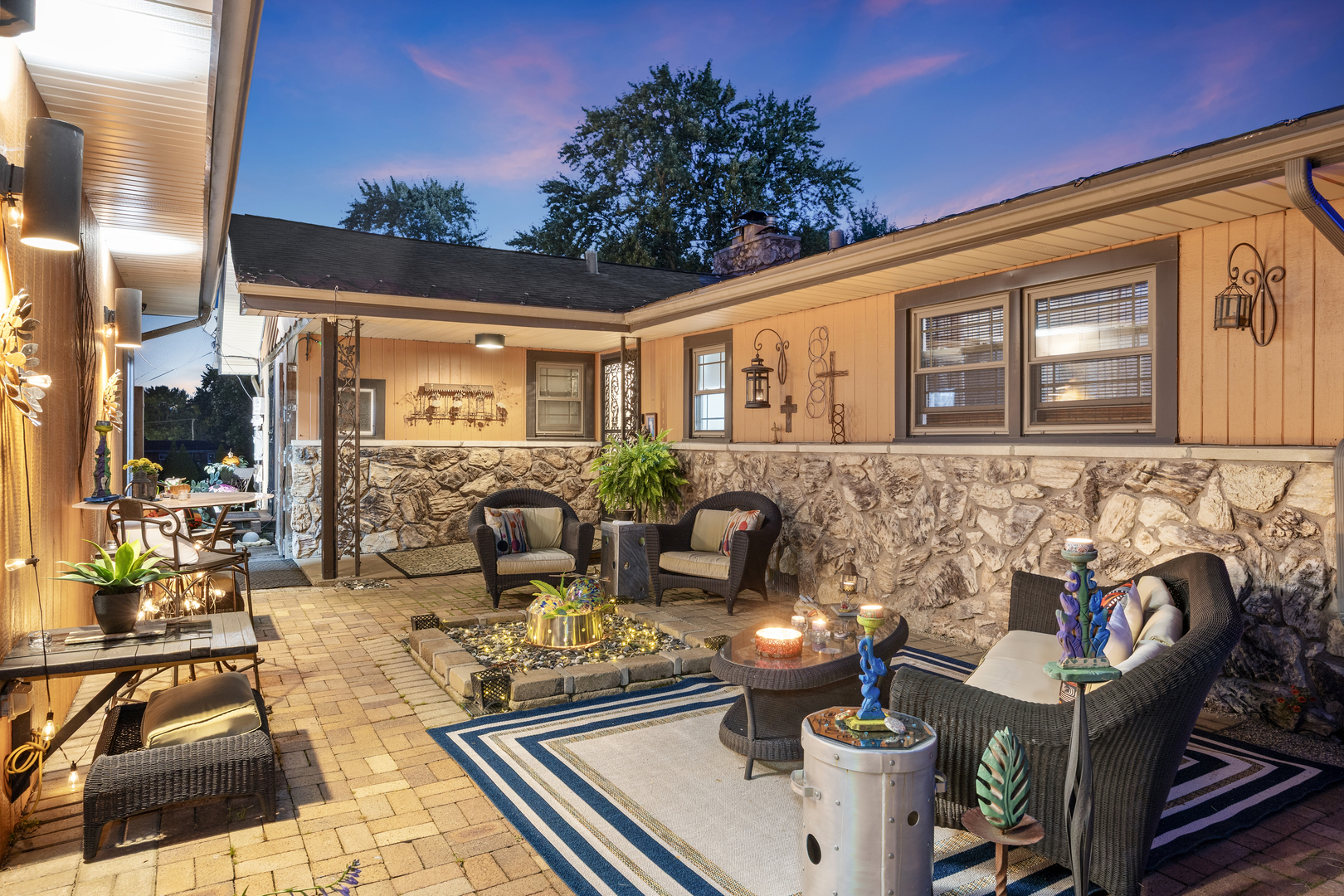 This one-of-a-kind, cozy home offers 3 beautifully sized bedrooms on a sprawling half-acre lot. Step inside and discover a space full of character, thoughtfully designed with an artisan touch throughout. The spacious custom kitchen with stainless steel appliances is artfully crafted, seamlessly blending creativity with function. A warm and welcoming family room is filled with natural light, anchored by a charming wood-burning fireplace, perfect for relaxing evenings or gathering with friends. The main bath is sharply updated and features a stunning walk-in shower. The lower level offers a bright, open and very usable space with another wood-burning fireplace, workout area, and laundry/prep area, ready to finish to your liking. A newly encapsulated crawlspace provides peace of mind and extra storage. The garage is a true highlight, built for more than just parking, with 10 ft. garage doors, French doors that open to an inviting entertaining patio, and plenty of extras for hosting and game-day fun. Surround sound and lighting extend through the garage and outdoor areas, creating a seamless flow for entertaining. The whimsical front patio sets the tone, charming, comfortable, and welcoming. Every detail in this home reflects thoughtful design and creativity, with so many wonderful touches you won’t find anywhere else. All of this in a fantastic Tinley Park location, just minutes from the updated and progressive Downtown Tinley with its amazing restaurants, concerts and events, plus convenient Metra access for easy commuting. The installed solar panels provide an excellent way to add long term value and sustainability to the property. This home is truly something special, ready to inspire its next owner. Be sure to ask about all the included features and extras!