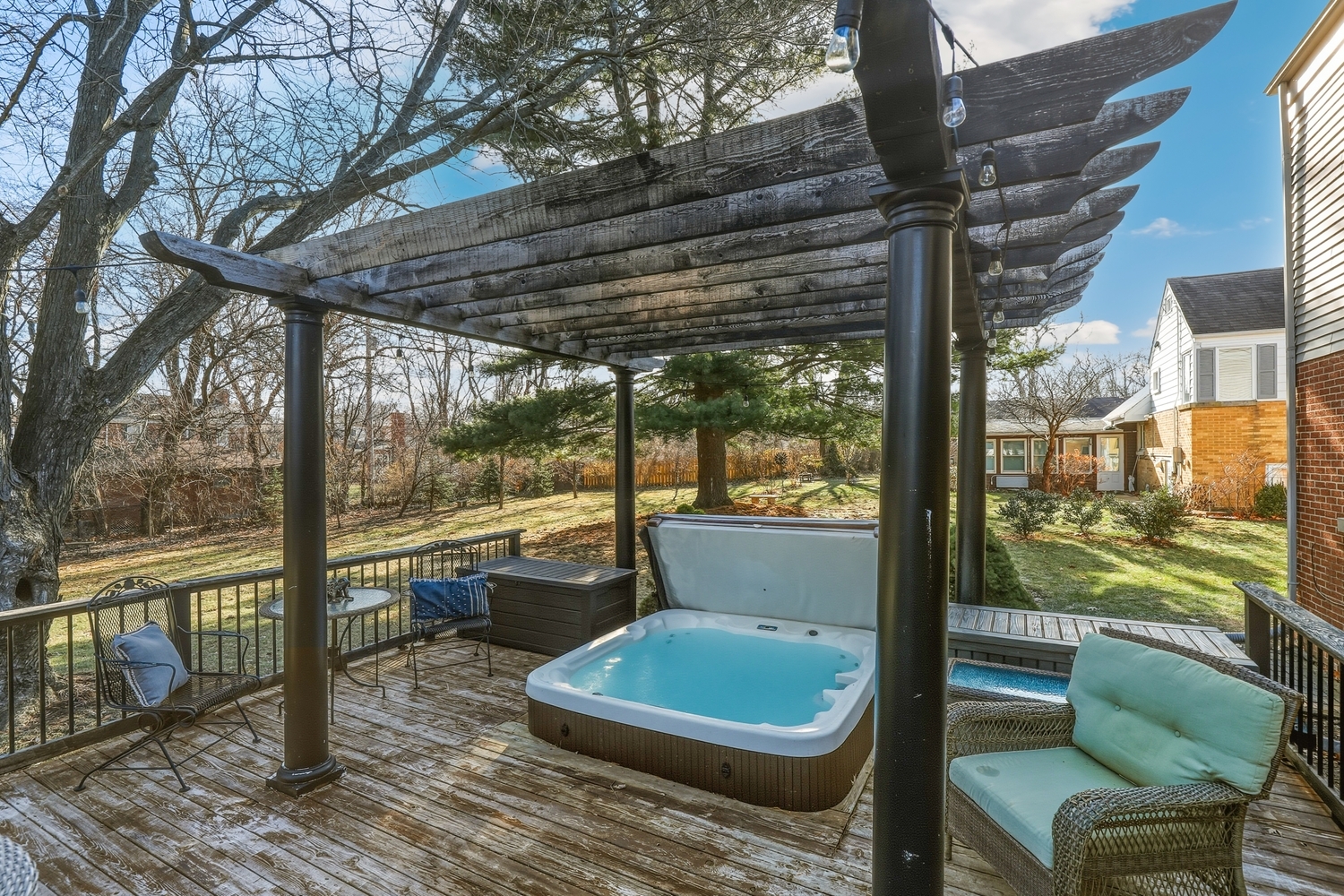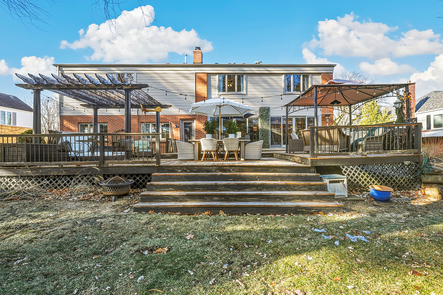 Absolutely stunning custom home in Flossmoor with a warm, cozy lodge vibe! Built in 1953, this beautifully maintained residence blends an updated exterior with original charm and timeless character. Situated on a large lot on a quiet street, the home offers exceptional curb appeal, highlighted by a huge welcoming front porch. This 4-bedroom, 3.5-bath home features a fully finished basement and thoughtfully designed living spaces throughout. The main and upper levels boast hardwood floors, while the family room features durable LVP flooring. A 2006 addition includes a spacious primary suite, a fourth bedroom, and major updates such as Anderson windows, roof, siding, gutters, and electrical. The remodeled kitchen showcases maple cabinetry, granite countertops, stainless steel appliances, and a highly coveted double oven. Sliding glass doors lead to an expansive 20′ x 30′ deck, complete with two gazebos and a 6-person jacuzzi, overlooking a huge backyard-ideal for entertaining and relaxing. The second floor offers a massive laundry room, plus an additional washer/dryer hookup in the basement. All bedrooms feature large closets and generous storage throughout the home. The primary suite is truly exceptional, featuring a dry bar, a beautiful en-suite bath, an oversized walk-in closet, and French doors that open to a cozy covered patio. Three additional generously sized bedrooms share a full hall bath on the upper level. The full basement provides ample space for entertaining, recreation, storage, and includes another large full bathroom. Roof & windows (2006), furnaces (2006 & 2024), AC’s (2017 & 2020), appliances (2006) dishwasher (2025) and the water heater is approx. 10 years old. Conveniently located near public transportation, shopping, and entertainment, and within the highly desirable Homewood-Flossmoor High School district, this home offers comfort, space, and an unbeatable location. Schedule your showing today; this one won’t last long!!