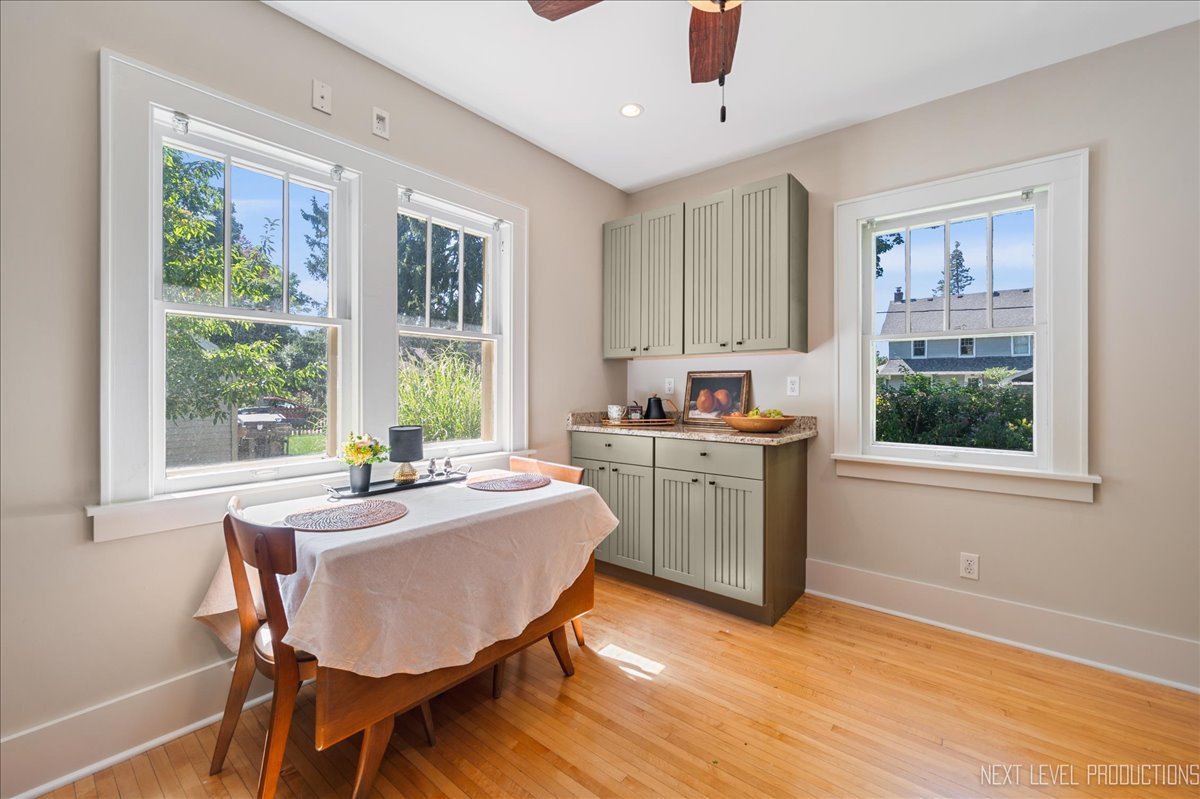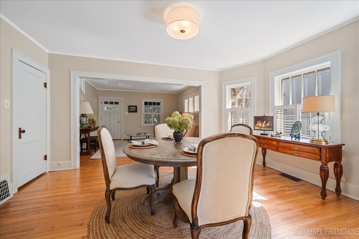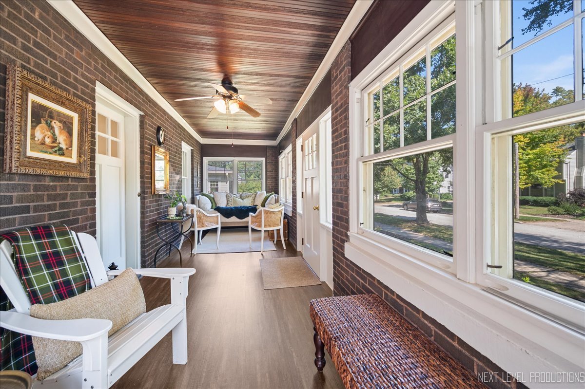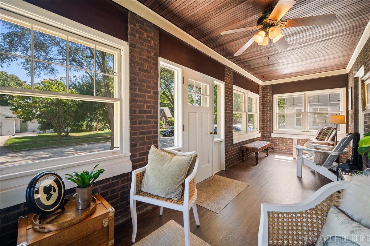 This is the one you’ve been waiting for – stellar location, tasteful updates and character throughout. Gorgeous, in-town all brick bungalow located in highly sought after Davis school neighborhood. The gorgeous, enclosed front porch makes a great first impression as you enter the home. This beautiful, light-filled space, with its brick walls, shiplap ceiling and plank flooring, sets a tranquil tone and offers a relaxing retreat. At the center of the home, the bright, open living and dining spaces flow perfectly together and are ideal for both entertaining and day to day living. The smartly designed, renovated kitchen (craftsman style cabinetry/granite/stainless appliances) offers great storage and ample room for an eat-in table. The two main floor bedrooms are perfectly positioned adjacent to the bathroom. The craftsman style windows with oversized casings/sills as well as newly restored/refinished narrow plank hardwood floors add architectural interest and character throughout the first floor. The second floor offers a large bedroom with walk-in closet, tons of storage plus versatile loft space with many potential uses: home office, playroom, second living room, so many options for this amazing space! The large, unfinished basement opens a world of opportunity for expansion. The professionally landscaped yard and patio space provide a peaceful outdoor sanctuary. The location of this gem cannot be beat – tree lined streets, surrounded by parks, walk to schools, close to both downtown St. Charles (walking distance) and Geneva (short bike ride), shopping, restaurants and so much more! Updates just completed (Aug/Sept 2025) include: tear off roof, LVP porch flooring, hardwood floors restored/refinished, bath/kitchen fixtures replaced, thermostat upgraded, first floor painted (walls/trim/closets). Kitchen renovation (2016), AC replacement (2021) and new hot water heater (2021) were completed by previous owner. With many new construction and million plus homes in the vicinity, a discerning buyer will clearly see the incredible value this wonderful house offers.