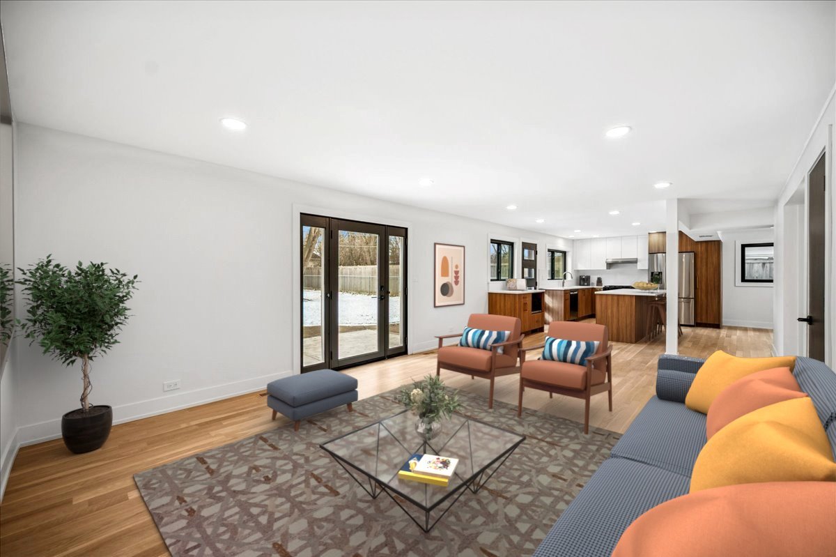 Located in West Highland Park and in highly regarded District 112 / Sherwood Elementary and Edgewood Middle School,and choice of Highland Park or Deeerfield High School, this bright 4-bedroom, 2.5-bath split-level home offers fresh, modern living with white oak hardwood floors throughout. The main level features a spacious layout and an updated kitchen with quartz countertops, a large center island, modern cabinetry, and newer appliances, including a 2025 Samsung range and Bosch dishwasher. The kitchen opens directly to the dining and family room areas and powder room for an easy, functional flow. Upstairs you’ll find four bedrooms, including a spacious primary suite. Bathrooms are updated with vanities, modern lighting, and crisp tilework, plus a convenient hall bath with tub. Outside, enjoy a large backyard and concrete patio. A two-car garage is attached. Move-in ready with the big-ticket updates already done. Provia black windows, and James Hardie Siding. You don’t want to miss this wonderful home!