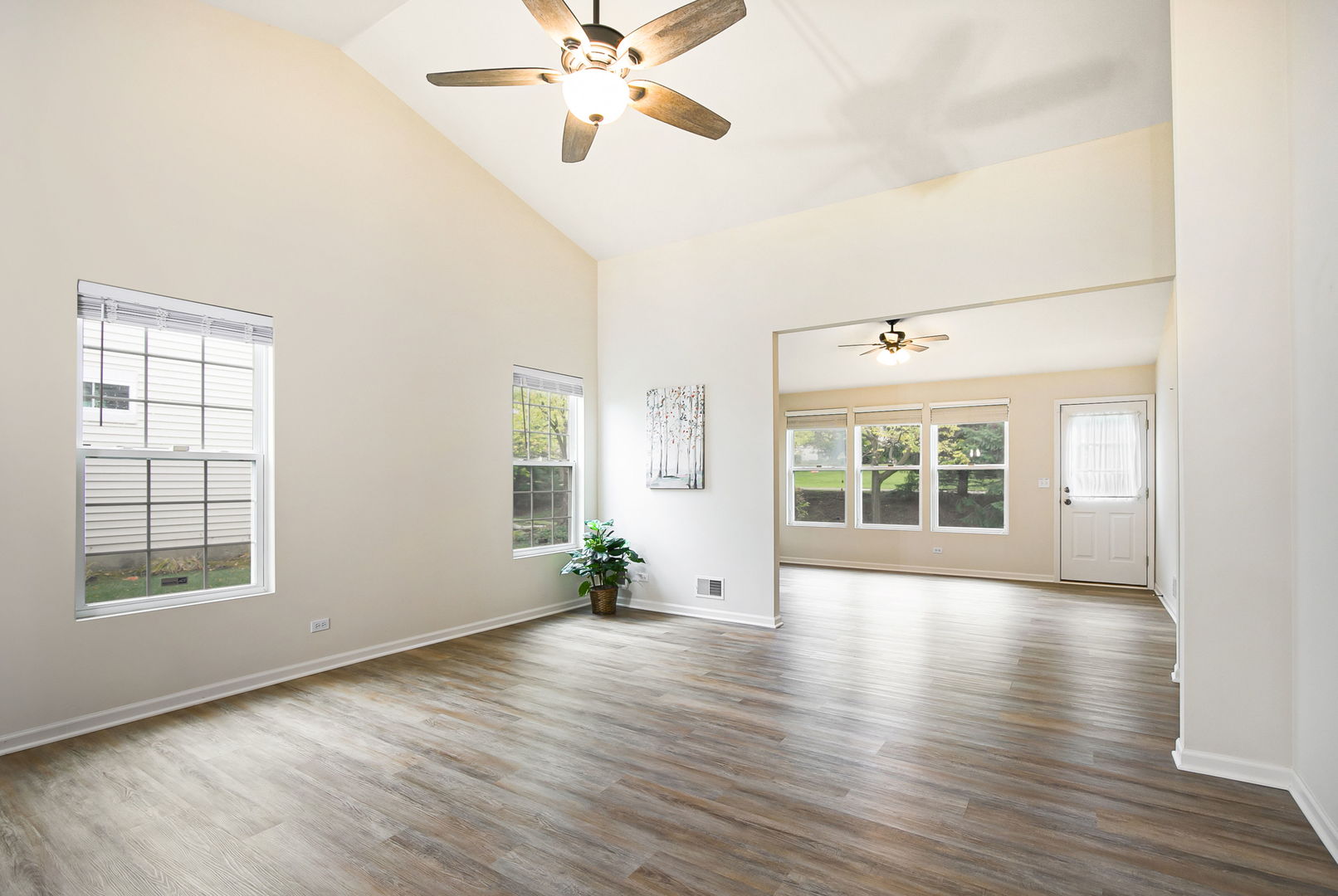 Beautiful End-Unit Ranch Home in the 55+ Community of Bradford Place! This move-in ready home features fresh, modern updates throughout. The spacious open-concept layout boasts vaulted ceilings in the living room, dining area, and a separate family room-perfect for relaxation or entertaining. Enjoy a freshly painted interior complemented by new luxury vinyl plank flooring that flows seamlessly through the home. The generously sized primary suite includes a private bath with a full-sized shower, and a walk-in closet that’s larger than many bedrooms! The eat-in kitchen offers all new stainless appliances, maple cabinetry, space for a table or island, and two oversized pantries for abundant storage. A separate laundry room includes a newer washer and dryer, plus a new hot water heater. The attached garage is extended for all your storage needs. Step outside to your private patio, surrounded by mature trees and professionally maintained landscaping-offering a peaceful and scenic retreat with walking path, gazebo and pond nearby.