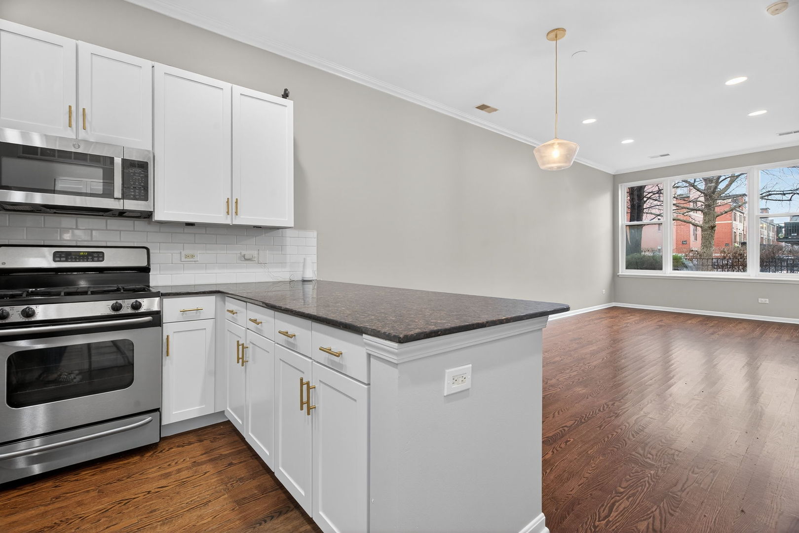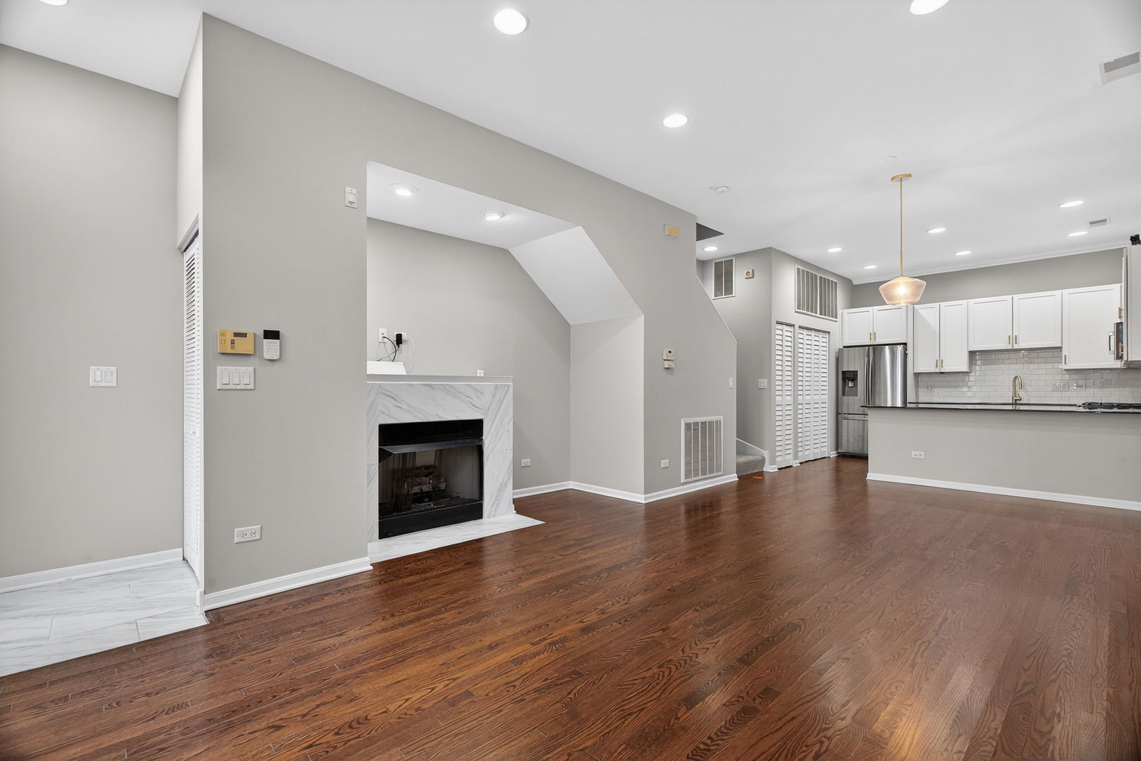 Rarely Available! 2 bed 2 bath with large private rooftop. Beautifully designed kitchen with stainless steel appliances. Spacious living room. Upstairs features two bedrooms and two bathrooms. The primary bedroom has two closets and a remodeled ensuite bathroom with walk in shower. The second bedroom has soaring ceilings along with additional storage space above the closets. Updates throughout. Property includes one heated garage parking spot. This home offers an unmatched location in the heart of the city.