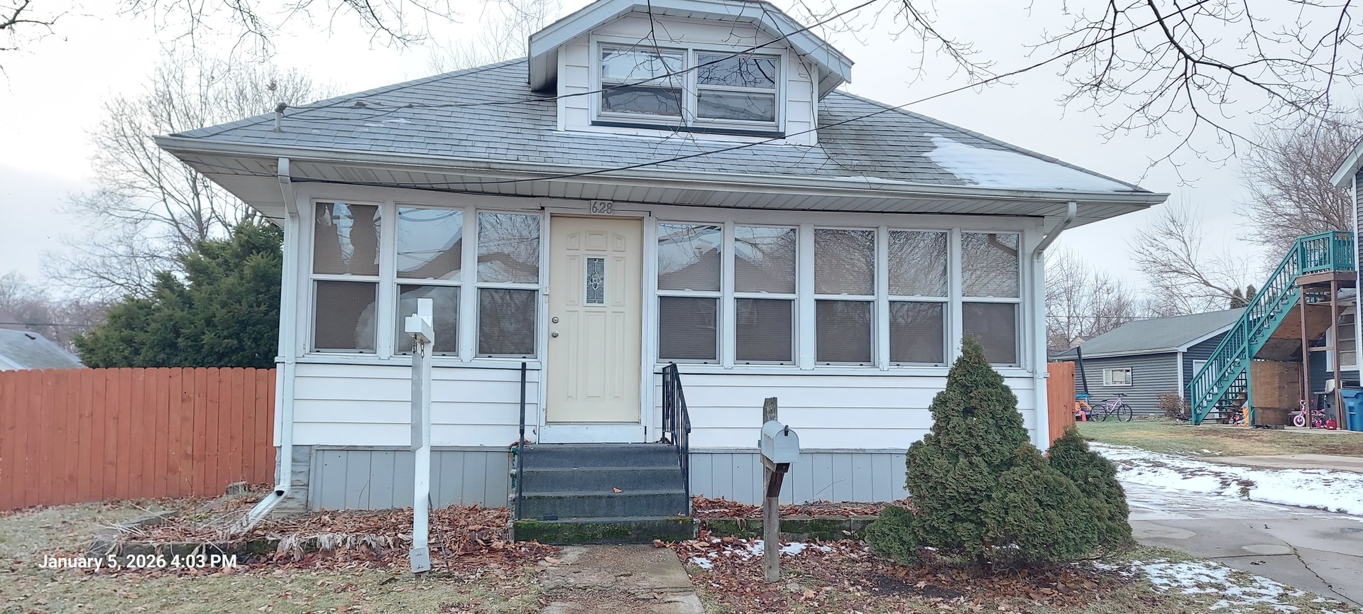 Pigeon Hill Bargain – Estate Sale!. This cozy bungalow offers great potential and is being sold as-is. Features include a large enclosed front porch with pull-down attic stairs, a spacious living and dining room combination, and two bedrooms. The updated kitchen includes a walk-in pantry.The home offers a full unfinished basement, a first-floor full bath, and an additional basement bathroom that requires remodeling and has not been used for some time. Updates within the past 10 years (approx.) include siding, roof, furnace, water heater, and central air conditioning. Electrical service features circuit breakers.The yard is exceptionally large, fully fenced, and includes a generously sized patio-perfect for outdoor enjoyment. The property also boasts a three-car garage, with a tandem two-car garage on the right and a single-car garage on the left. Please note: Flooring replacement in the main living and dining area is approximately 50% complete. Remaining materials to finish the flooring will stay with the home. Some uneven flooring is present-enter with caution and at your own risk. A flashlight is recommended for all showings. A great opportunity for investors or buyers looking to add value-schedule your showing today!