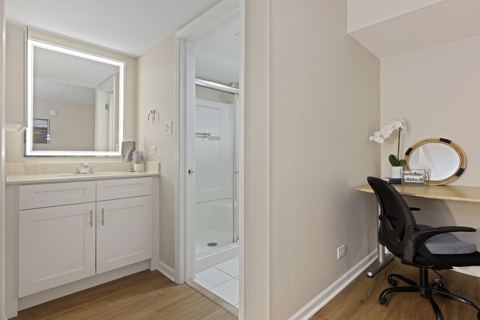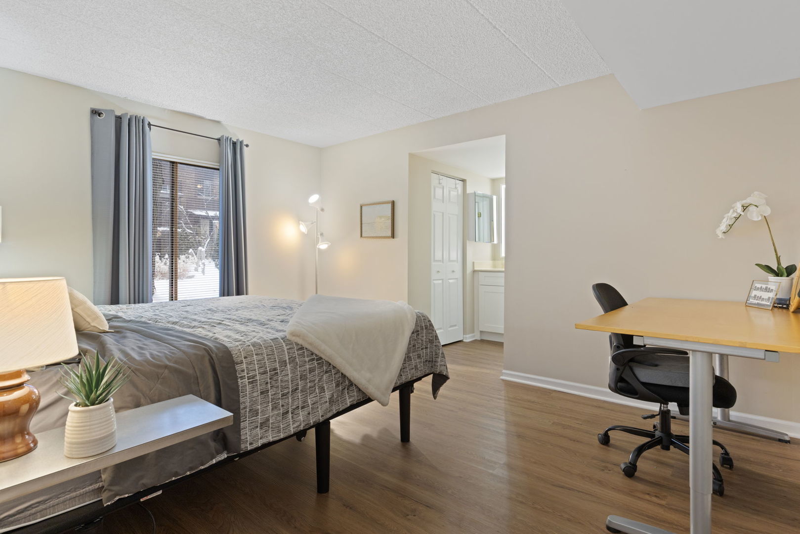 Multiple Offers Received. HIGHEST AND BEST OFFERS DUE SUNDAY. This amazing 2BR/2BA, first floor, end-unit condo feels like a home with it’s bright and open floor plan, beautifully updated kitchen and bathrooms, primary ensuite, large patio, private garage, and resort style amenities. You will fall in love with this home and the community! The large dining area flows into a generous living room, perfect for entertaining. The modern white kitchen boasts stainless steel appliances and plenty of cabinet space with smart design features. The primary bedroom includes a walk-in closet and a private full bath. A second full bath is conveniently located off the hallway and second bedroom. Enjoy the beautiful and durable wood laminate flooring throughout. You’ll appreciate the in-unit full-size washer and dryer for added convenience. Enjoy your summer on the large, beautiful patio with an extra storage room. The unit also includes a 1-car garage. Community amenities include a pool and clubhouse, ideal for relaxation or hosting guests. Prime location close to shopping, restaurants, and public transportation.