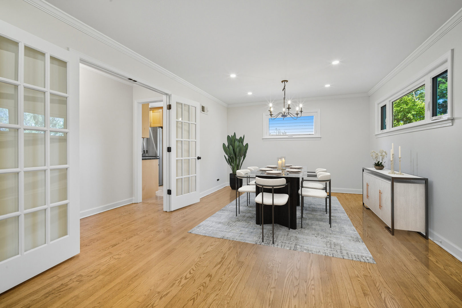 Charming Cape Cod Home Located in the Award-Winning Deerfield High School District in DESIRABLE Poet’s Corner. Welcome to this beautifully maintained Cape Cod home featuring 4 spacious bedrooms and 2 nicely updated full bathrooms. The homes front entry is highlighted by an elegant brick paver walkway and matching stoop. The front entrance leads to the inviting living room with a cozy wood-burning fireplace, ideal for gathering with family and friends. Chefs will appreciate the updated eat-in kitchen with elegant granite countertops, stainless steel appliances and steps from the dining room providing the perfect space for memorable meals. Recently refinished hardwood floors extend from the living/dining area to the first-floor bedroom creating warmth and continuity. The convenient first-floor bedroom offers flexible living options: office space, or guest/multi-generational family bedroom. The luxurious first-floor bathroom showcases exquisite marble tile and a whirlpool tub designed to maintain water warm for the ultimate spa-like retreat. The upper level offers three bedrooms with a shared updated bathroom. All bedrooms have hardwood floors. A versatile built-in nook with glass shelving offers both storage and style. The finished basement, with brand new LVP flooring, has a mini kitchen offering the perfect recreational area for game and movie nights (wired for 4 speakers for a superior sound experience). There’s space for a home office and an exercise room plus additional storage space. Laundry room with stackable washer and dryer. Discover the wonderful deck, steps from the kitchen, adorned with decorative lights, creating the perfect ambiance for dining al fresco or quiet relaxation. The fenced in yard is professionally landscaped with beautiful plantings. Enjoy the convenient irrigation system that keeps your outdoor space lush and beautiful with minimal effort. This thoughtfully designed home maximizes both comfort and functionality, inside and out. Close proximity to Kipling Elementary School, Kipling Park, Deerfield Public library, shops, dining, and the Metra for seamless commuting. This Cape Cod gem combines timeless architectural charm with modern updates, all in a highly desirable neighborhood that offers the perfect blend of suburban tranquility and urban convenience. Don’t miss this opportunity to make this exceptional property your new home. Updates: freshly painted interior, refinished first floor hardwood floors, new LVP flooring in finished basement, refinished wood stairs to second floor and to basement, and new fixtures. Enjoy the smart lights in the living, dining and front porch, and smart thermostat.